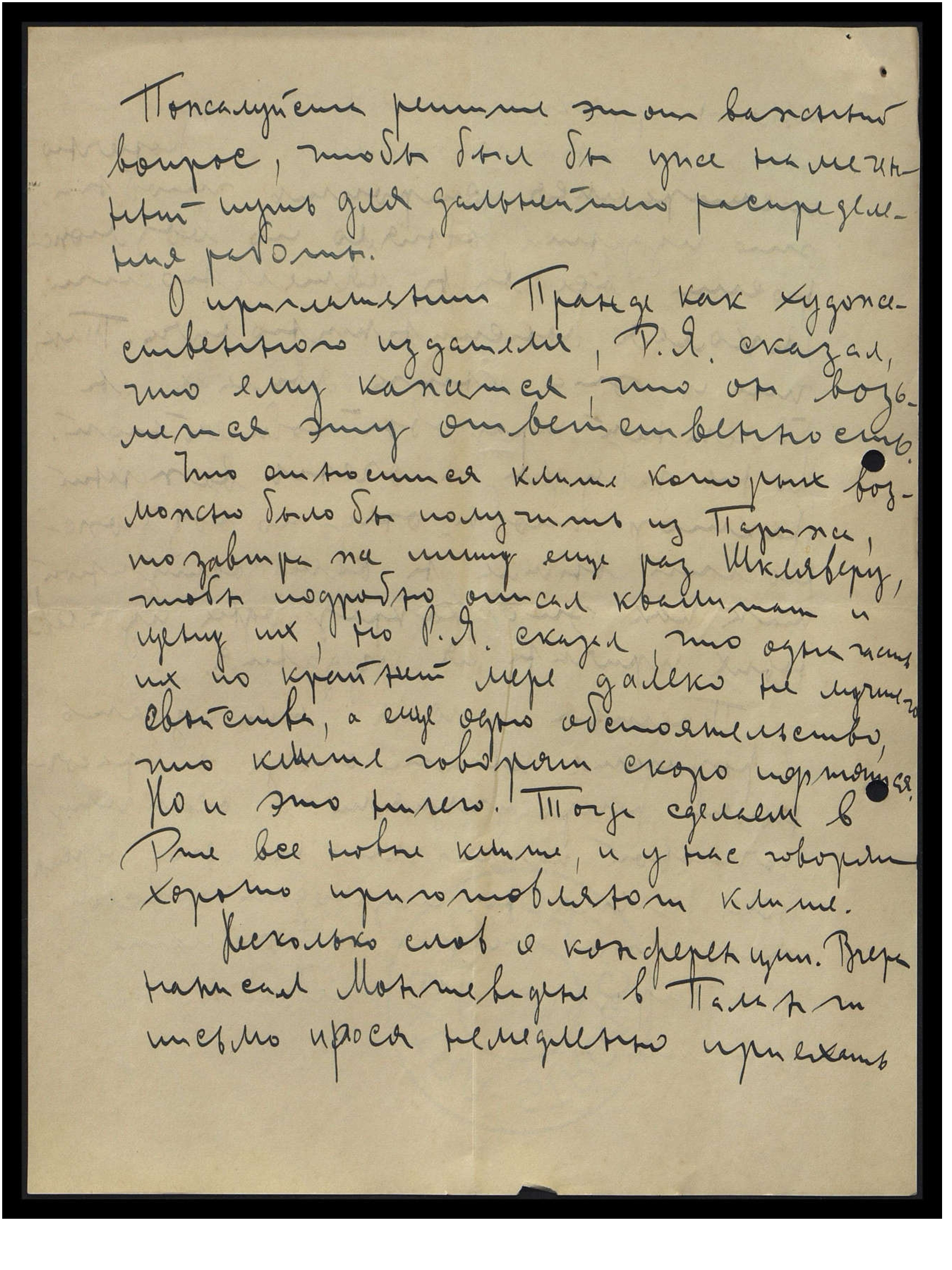 О приглашении Пранде как художественного издателя, Р[ихард] Я[ковлевич] сказал, что ему кажется, что он возьмётся [за] эту ответственность.