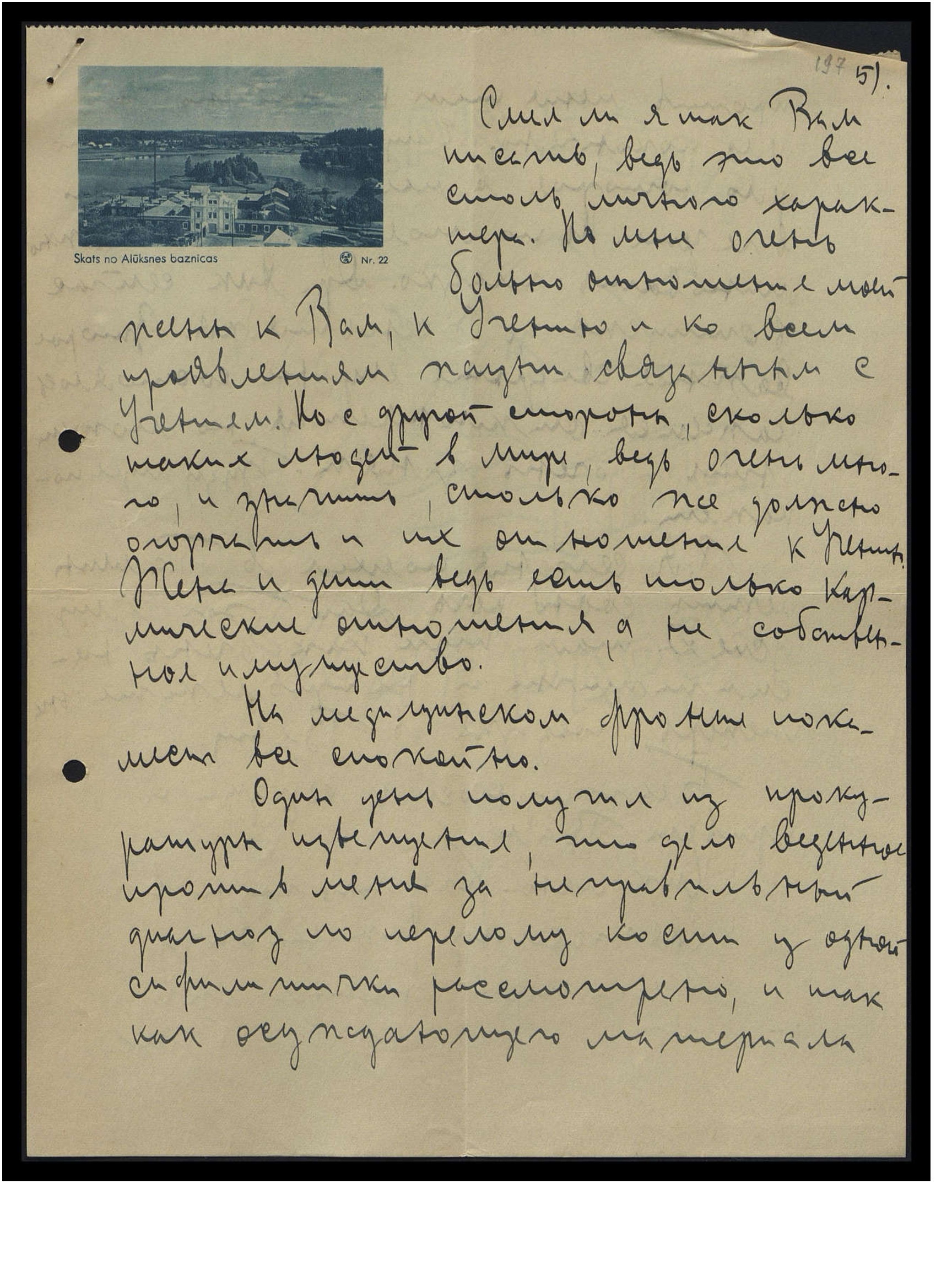 [В левом верхнем углу фотопечать пейзажа с надписью "Skats no Aluknes baznicas Nr.22"]