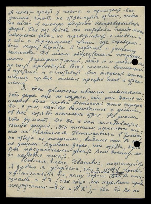 Извините, дорогая Елена Ивановна, теперь уже за слишком длинное письмо, но такие письма я могу писать только Вам.