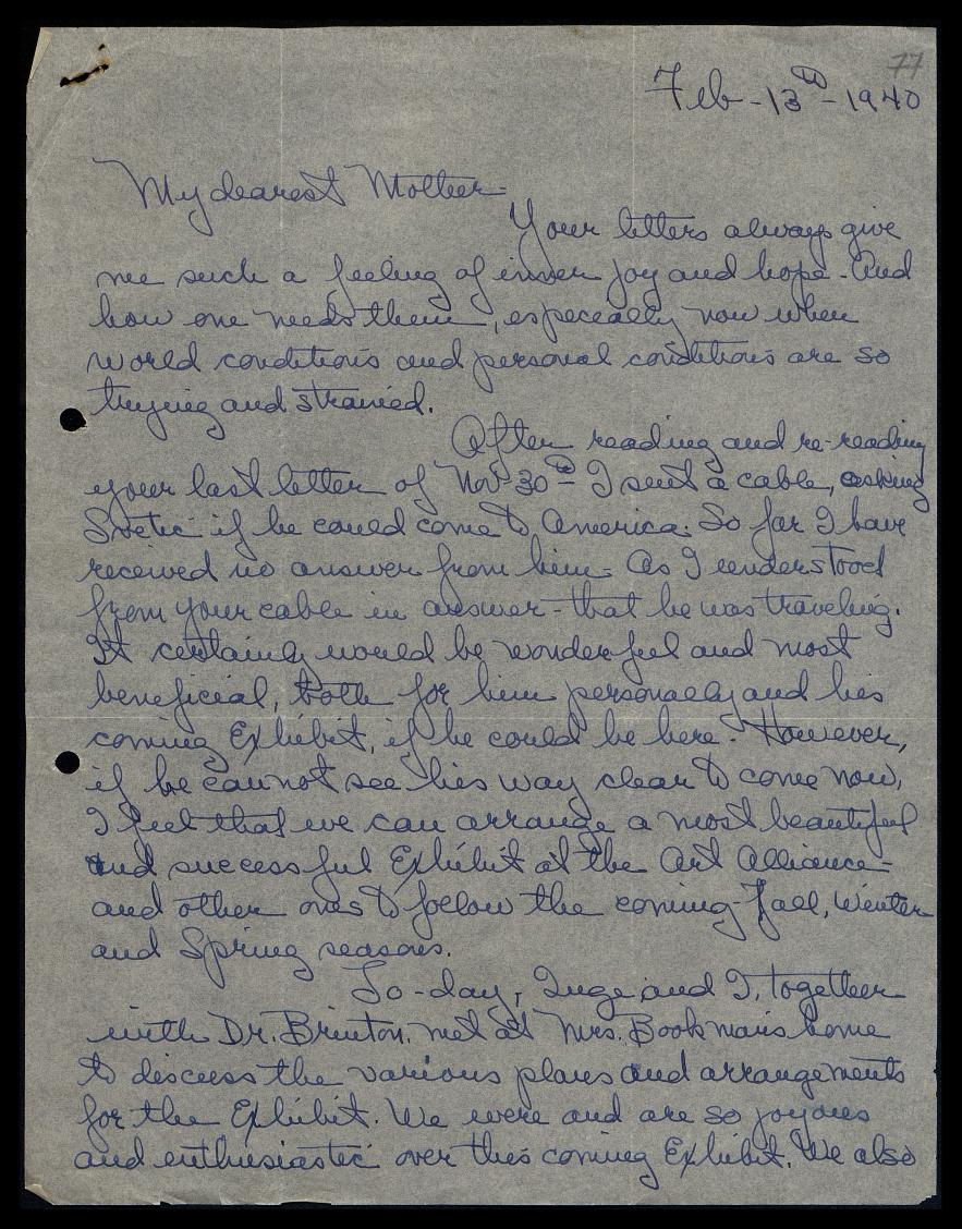 Today, Inge and I, together with Dr. [Christian] Brinton, met at Mrs. Bookman’s home to discuss the various plans and arrangements for the exhibit. We were and are so joyous and enthusiastic over this coming exhibit. We also