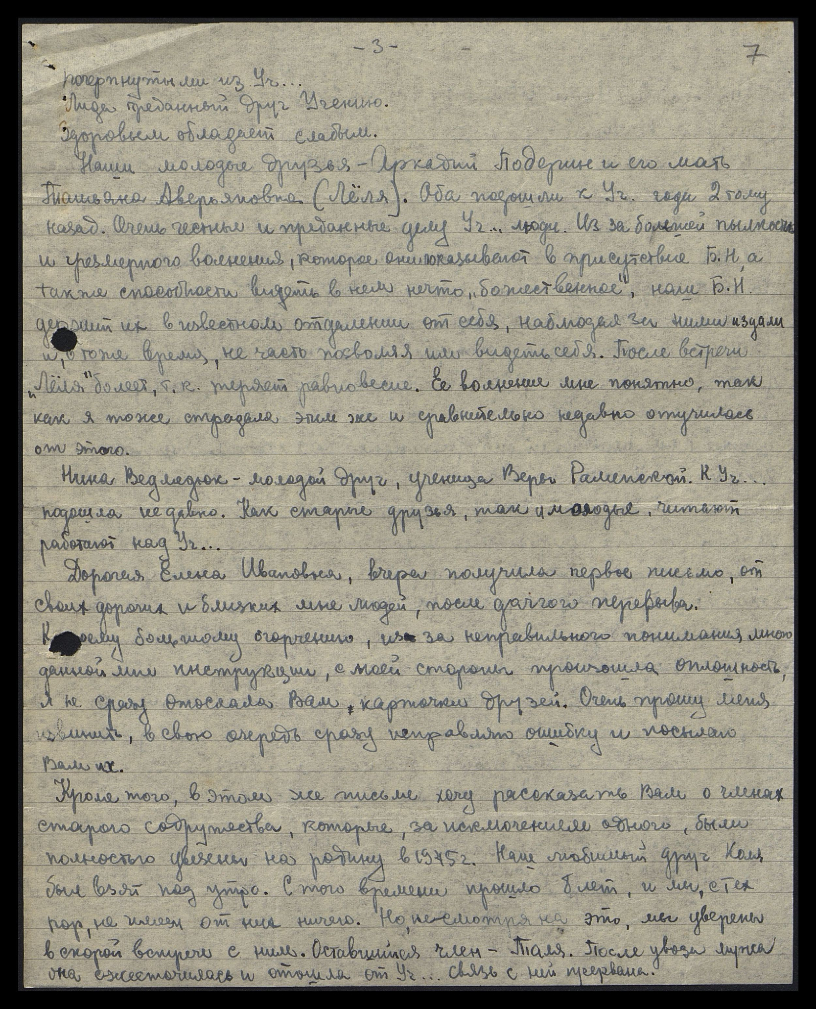 P.S. В этом письме прилагаю карточки Лиды Зубчинской, Дмитрия Шипова, Аркадия и Т.А. Подёриных и свою, а также Нины Ведмедюк.