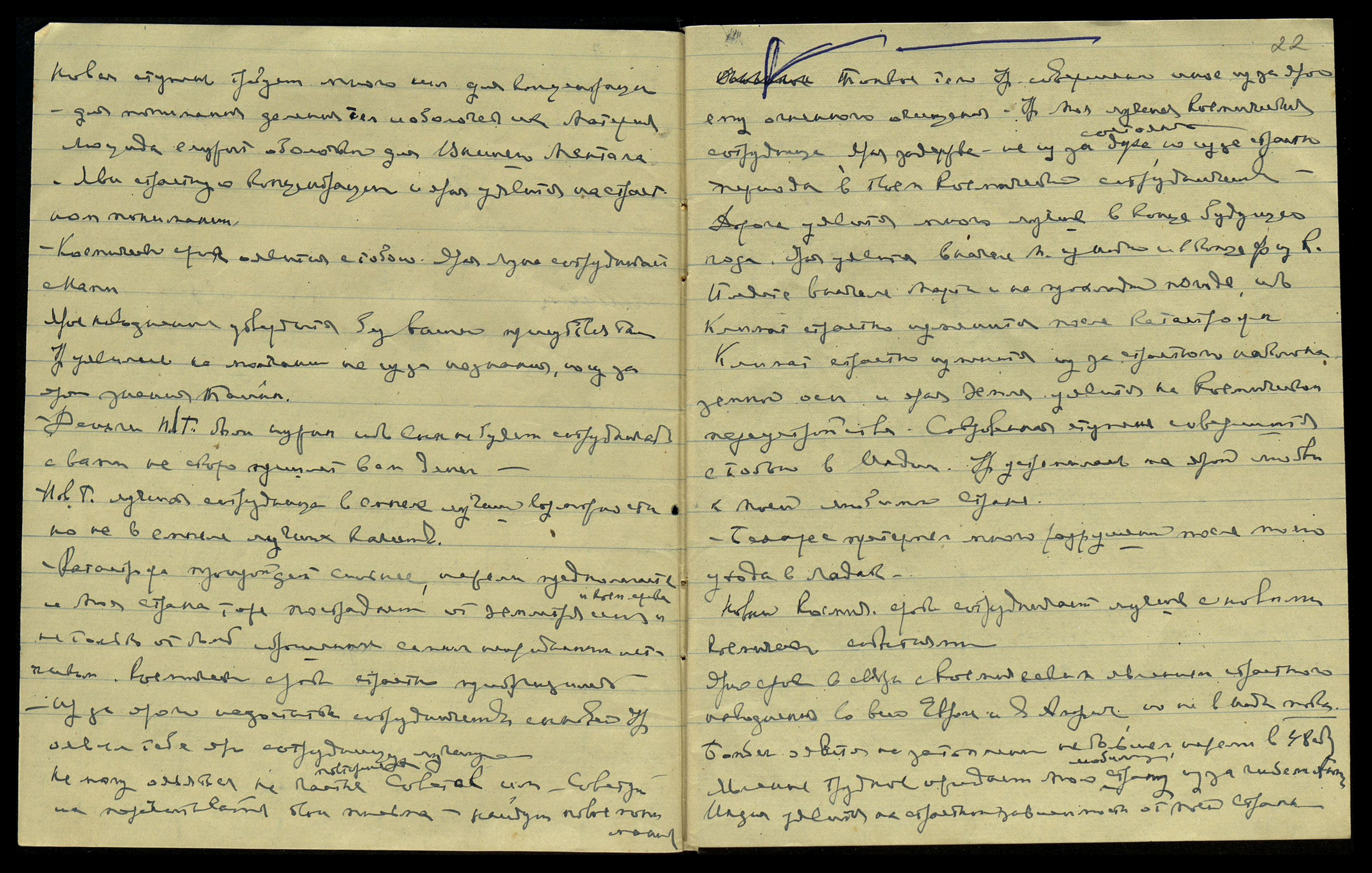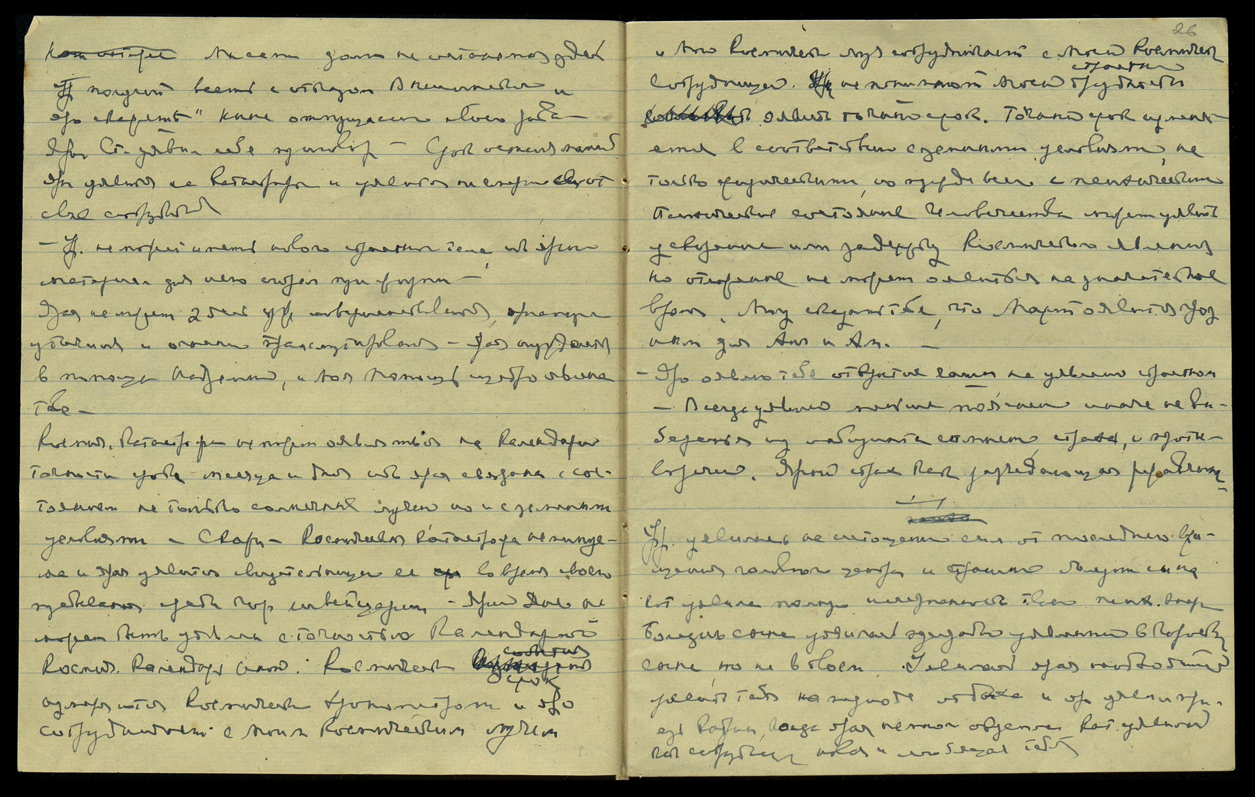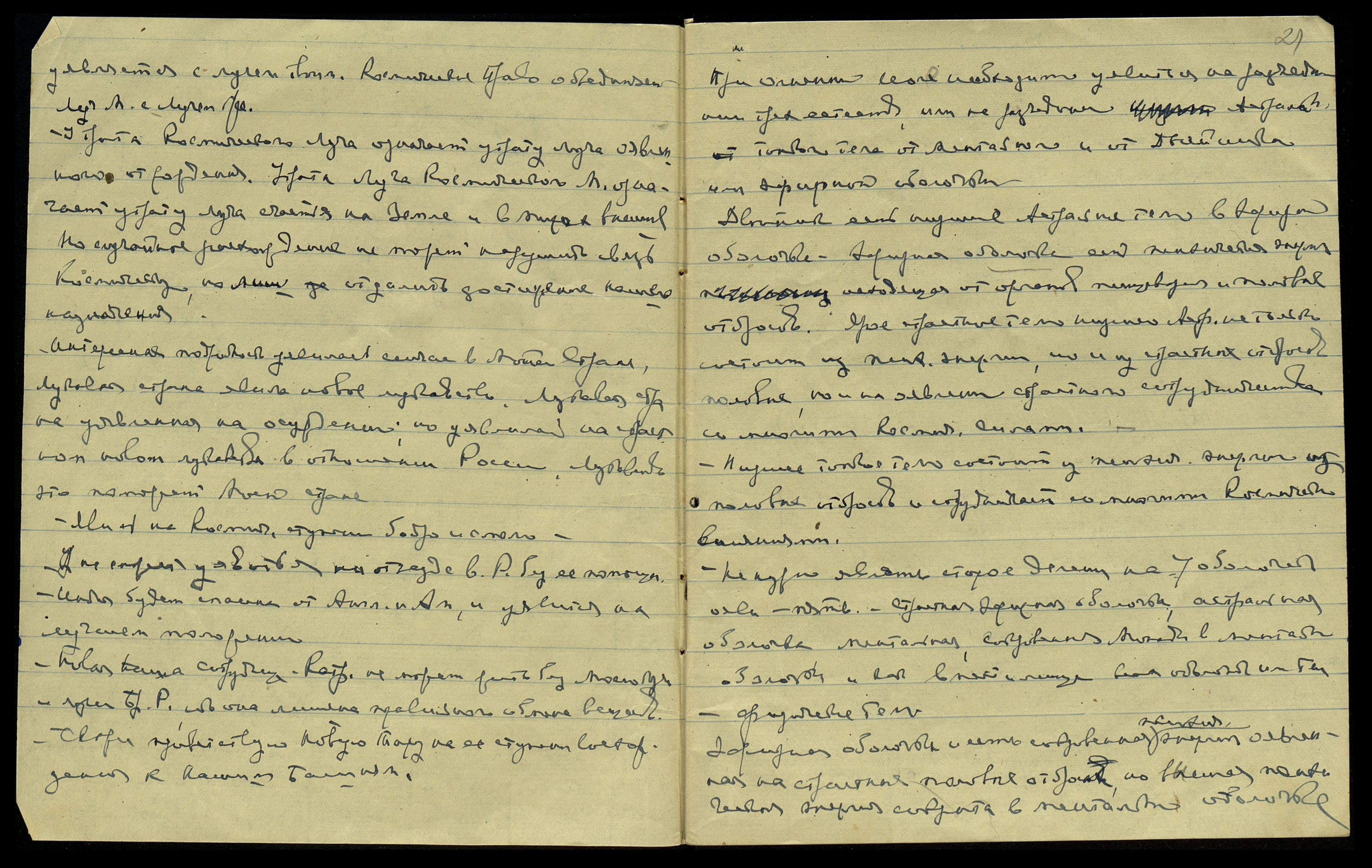 Урусвати получит весть с отказом Вышинского и яро скажет: "Ныне отпущаеши своего раба"*. Ярый Ст[алин] уявил себе приговор. Срок остался [слово неразборчиво]. Ярый уявится на Катастрофе и уявится на смерти от своих сотрудников.