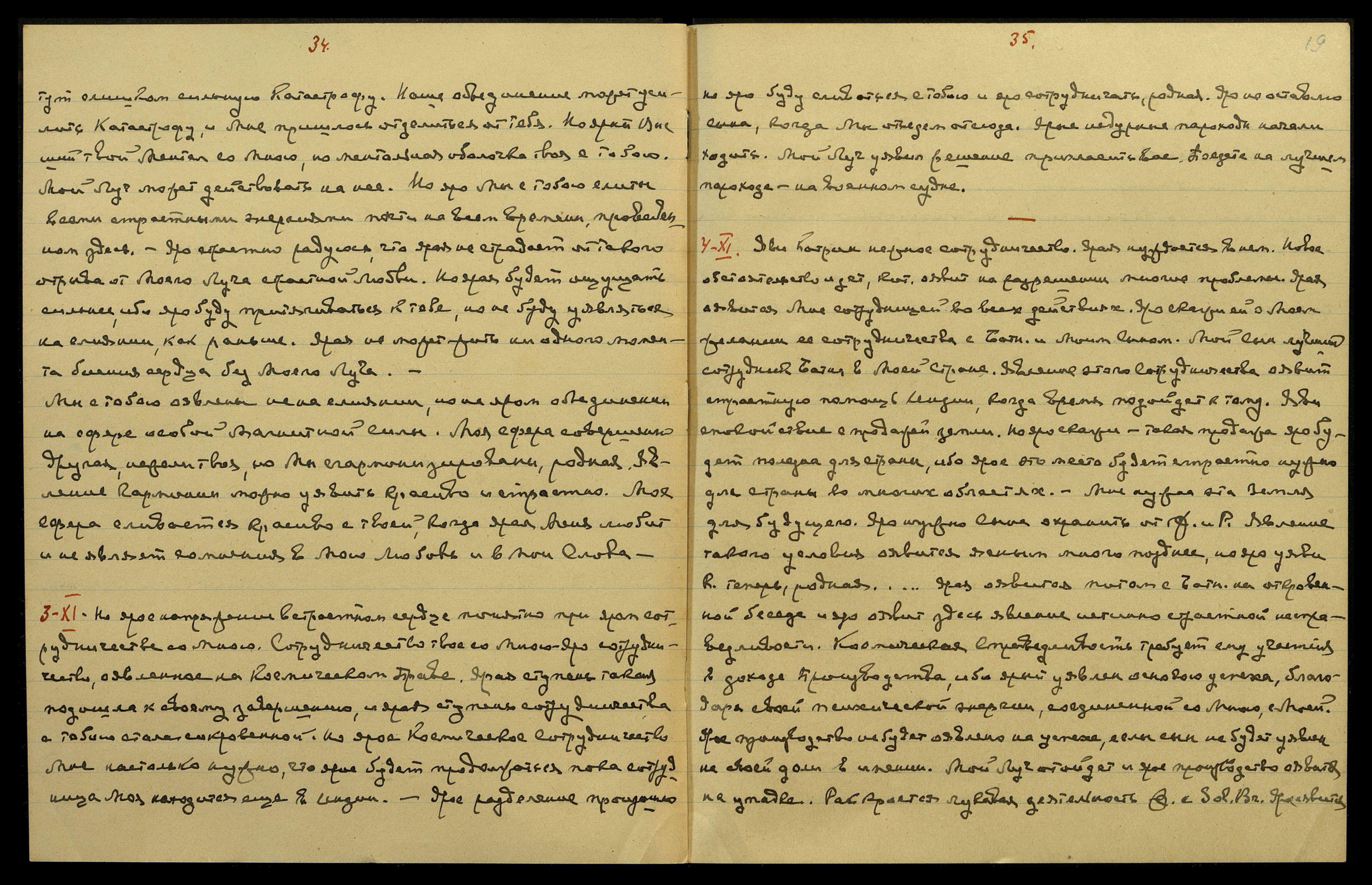 4-XI. Яви Катрин нежное сотрудничество. Ярая нуждается в нем. Новое обстоятельство идет, кот[орое] оявит на разрешении многие проблемы. Ярая оявится Мне сотрудницей во всех действиях. Яро скажи ей о Моем желании ее сотрудничества с Батн[агаром] и Моим Сыном. Мой Сын — лучший сотрудник Батн[агара] в Моей Стране. Явление этого Сотрудничества оявит страстную помощь Индии, когда время подойдет к тому. Яви спокойствие с продажей земли. Но яро скажи — такая продажа яро будет полезна для страны, ибо ярое это место будет страстно нужно для страны во многих областях.