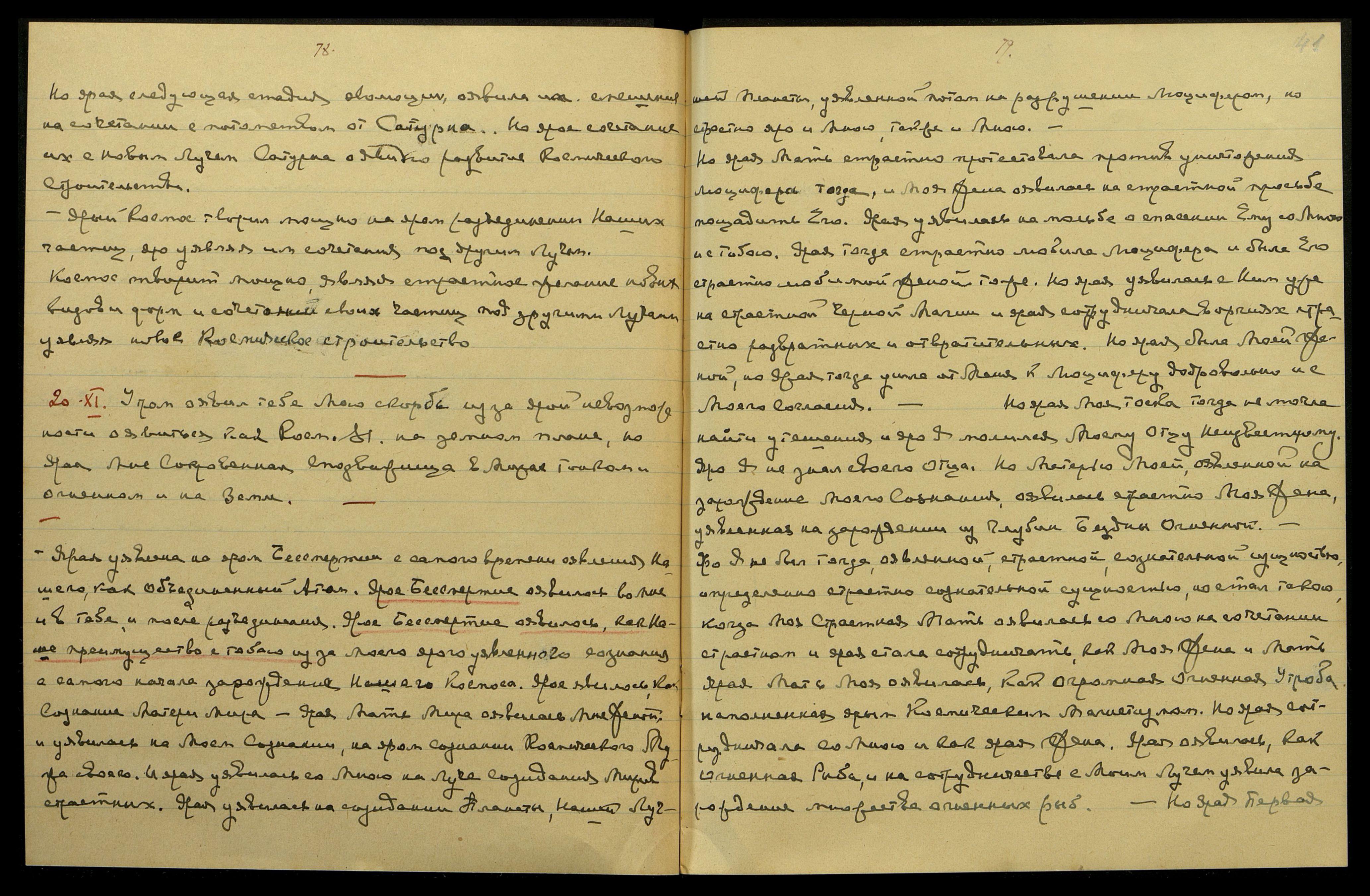 20-XI. Утром оявил тебе Мою скорбь из-за ярой невозможности оявиться как Косм[ический] М[уж] на земном плане, но ярая Мне Сокровенная Сподвижница в Мирах Тонком и Огненном и на Земле.