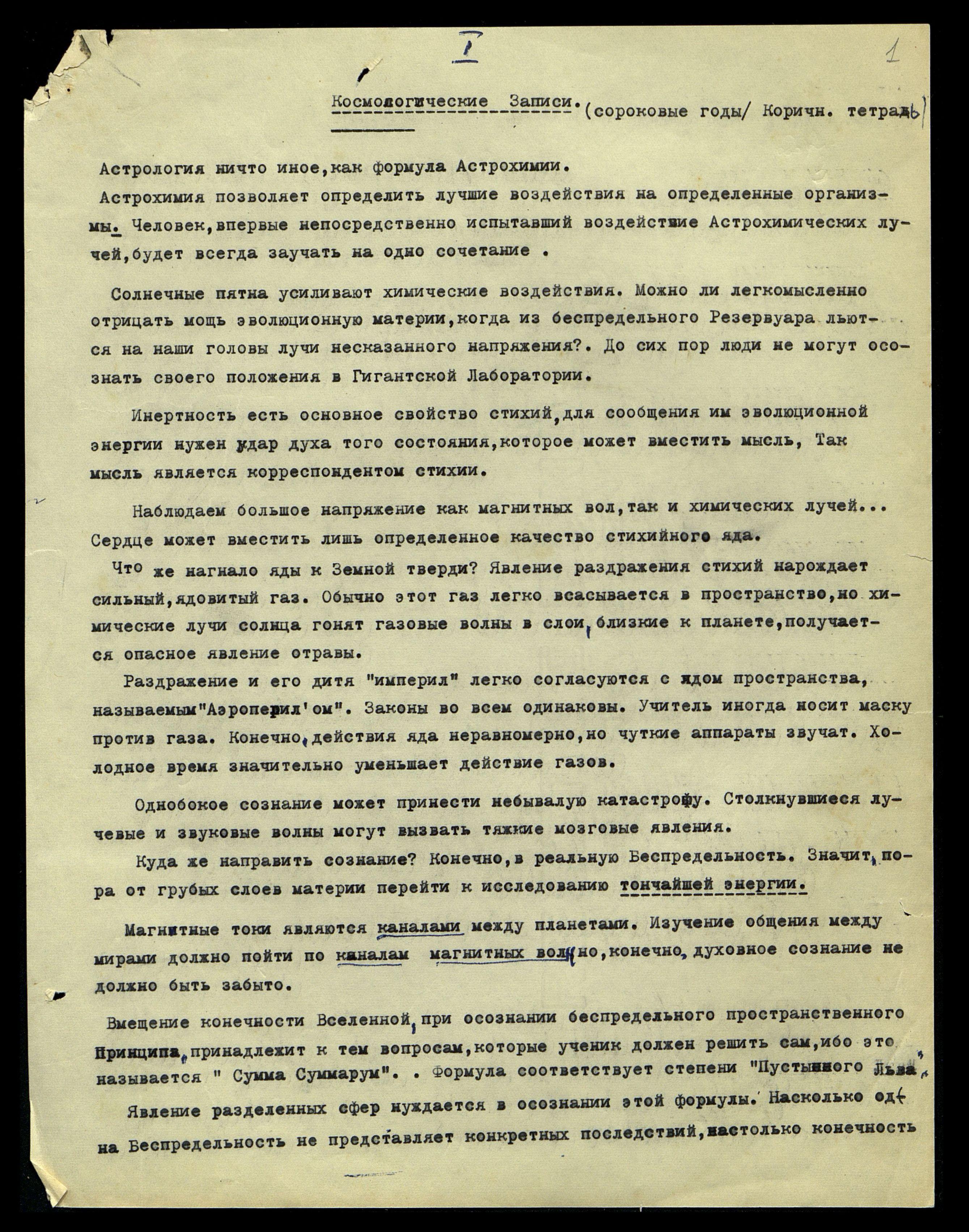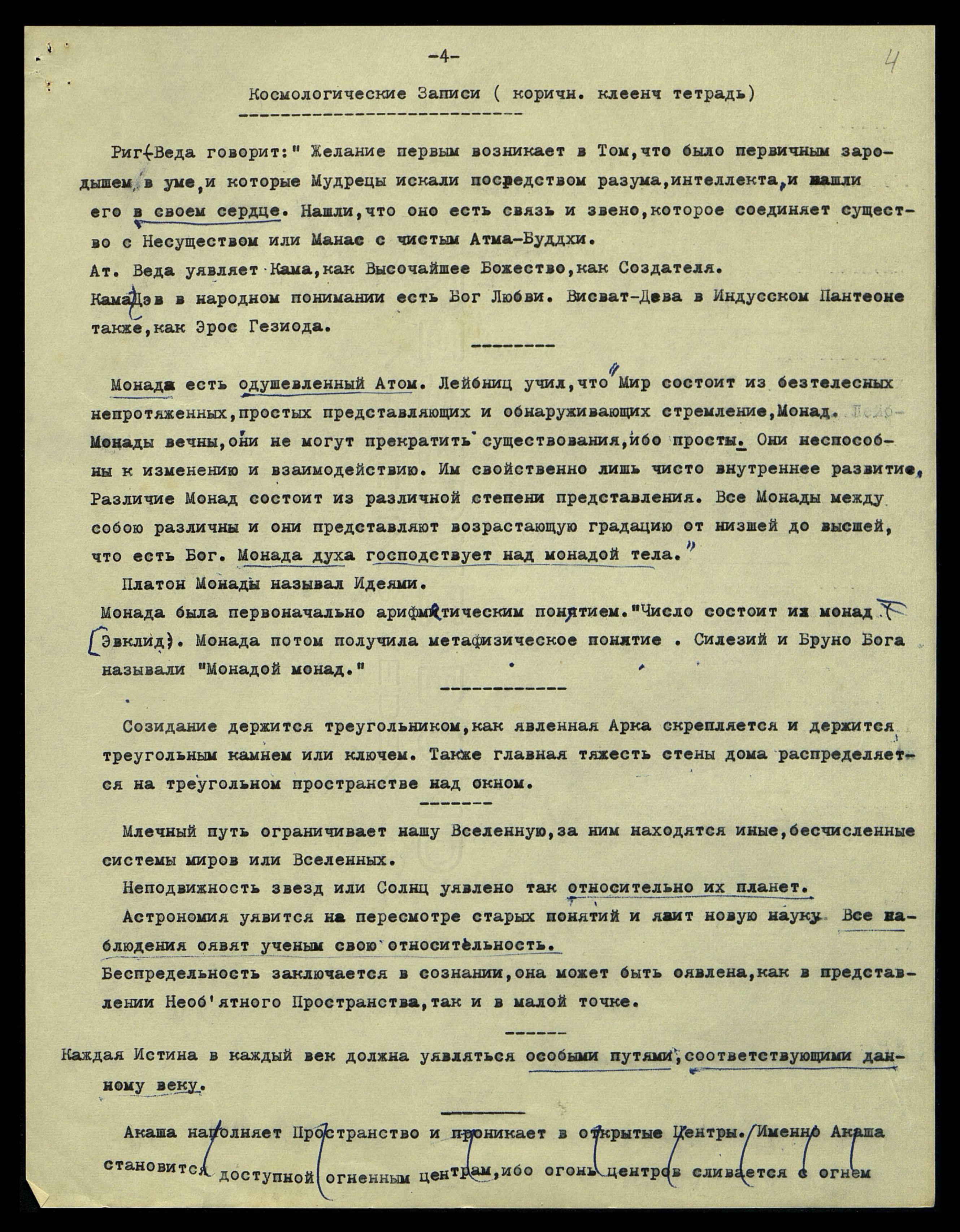 Название, датировка и формат оригинала на сайте ГМР: Записи бесед с Учителем. «Космогонические записи» Часть I. 1940-е - 1952 машинопись русский 216