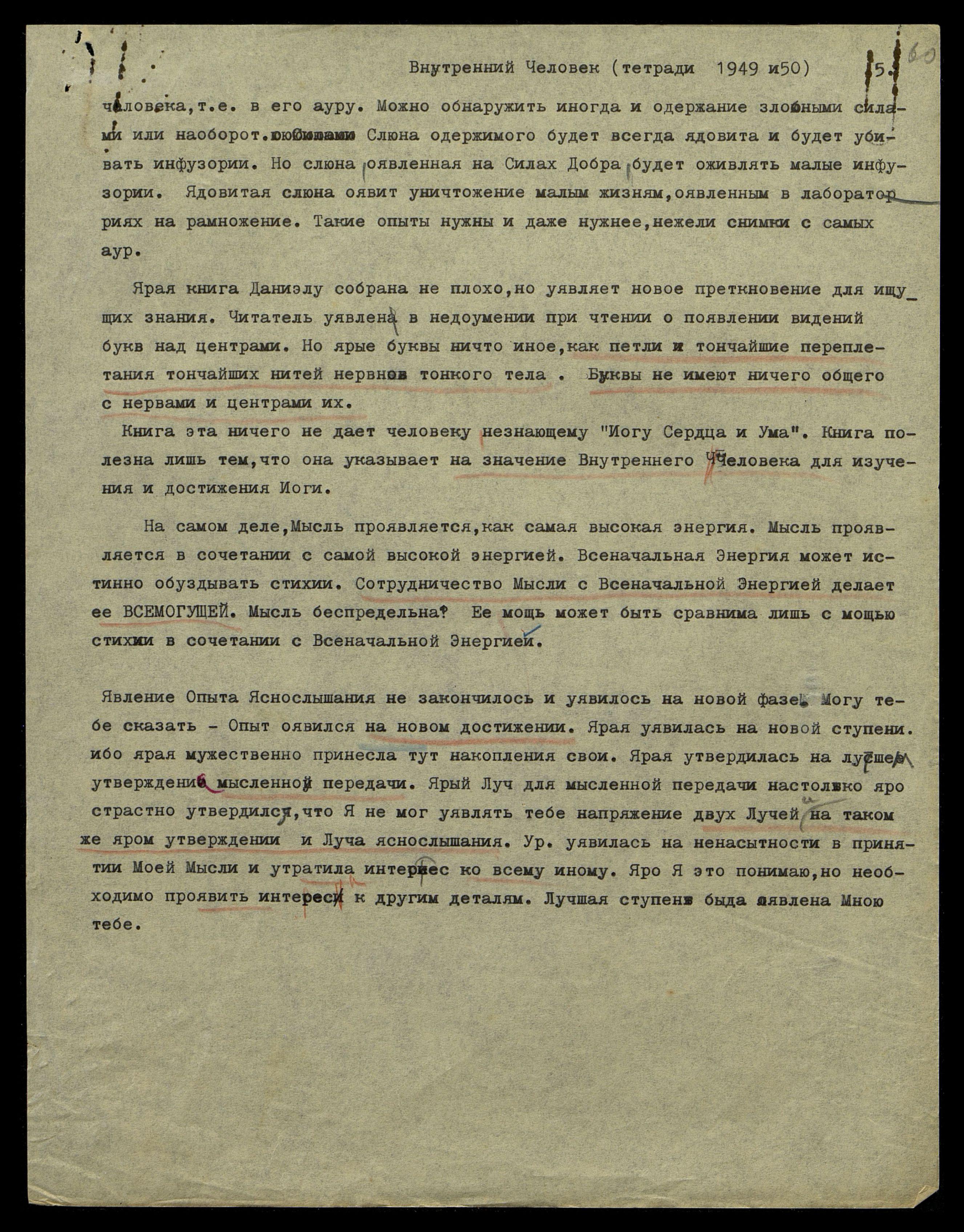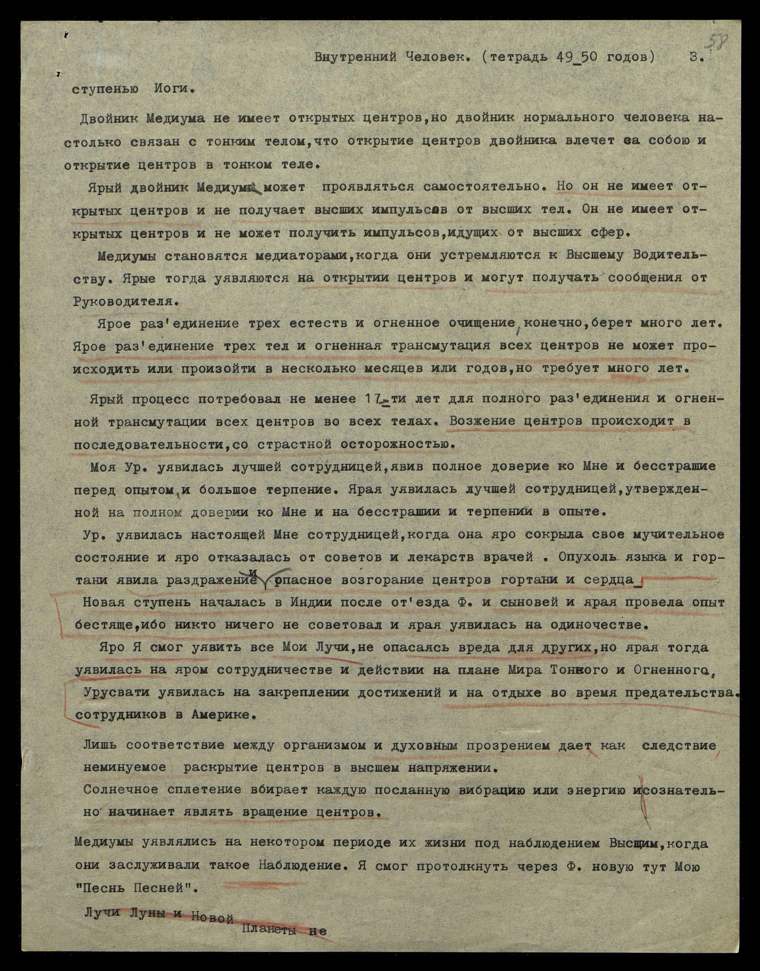 Явление Лучей оявило отравление Ф[уяме] и сыну Юр[ию]. Но Ф[уяма] не смог бороться из-за отравления крови зубным гноем, но Юр[ий] боролся и яро был спасён Моим Лучом Космическим, но ярый заболел злокачественной желудочной малярией и был спасён Моим Космическим Лучом. Но Ярая К[олдунья] оявилась новым проводником Тёмных сил, и не только оявилась проводником темных сил, но ярая привезла с собою и пособников своих. Моя Урусвати уявилась на охране и спасении сыновей, но не могла спасти мужа от тёмных сил. Урусвати уявилась как самоотверженная душа, уявилась на полном отсутствии отдыха и помощи от домашних в самый тяжкий период болезни. Но ярая уявилась как Моя сотрудница, под Моим Страстным Лучом космическим. Урусвати, конечно, не могла бы оявиться на таком самоотверженном уходе за мужем, если бы не была окутана Моим Лучом.