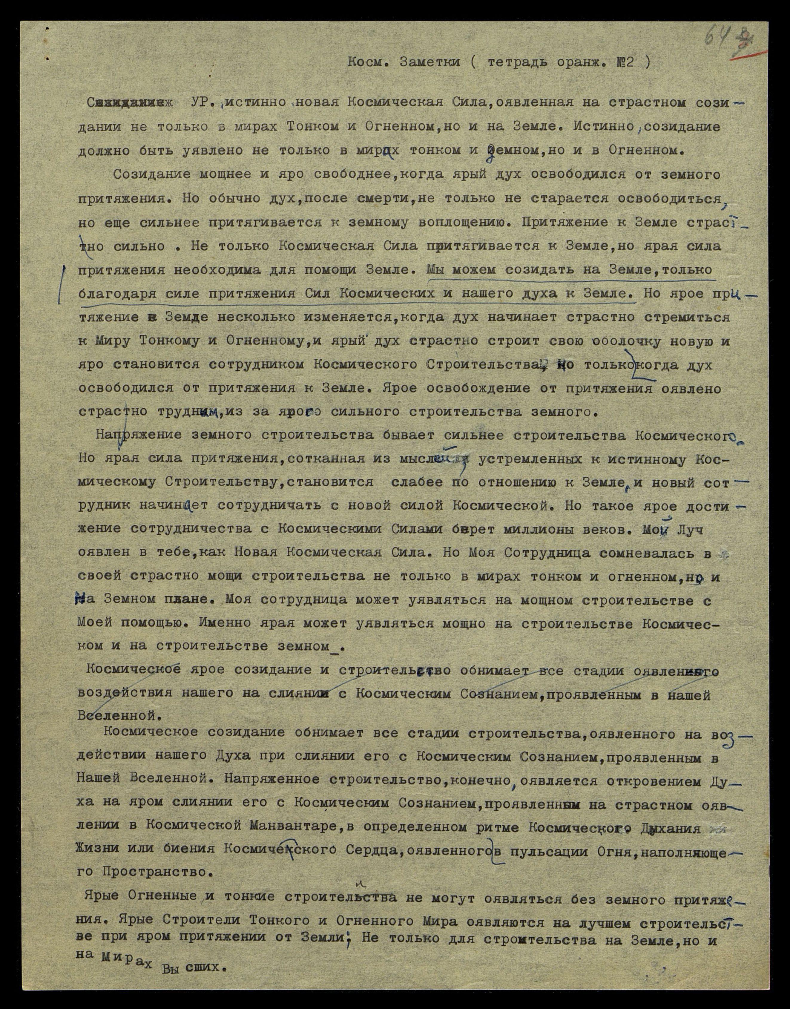 Напряжение земного строительства бывает сильнее строительства Космического, но ярая сила притяжения, сотканная из мыслей, устремлённых к истинному Космическому Строительству, становится слабее по отношению к Земле, и новый сотрудник начинает сотрудничать с новой силой Космической. Но такое ярое достижение сотрудничества с Космическими Силами берёт миллионы веков. Мой Луч оявлен в тебе как Новая Космическая Сила. Но Моя Сотрудница сомневалась в своей страстной мощи строительства не только в мирах тонком и огненном, но и на Земном плане. Моя сотрудница может уявляться на мощном строительстве с Моей помощью. Именно, ярая может уявляться мощно на строительстве Космическом и на строительстве земном.