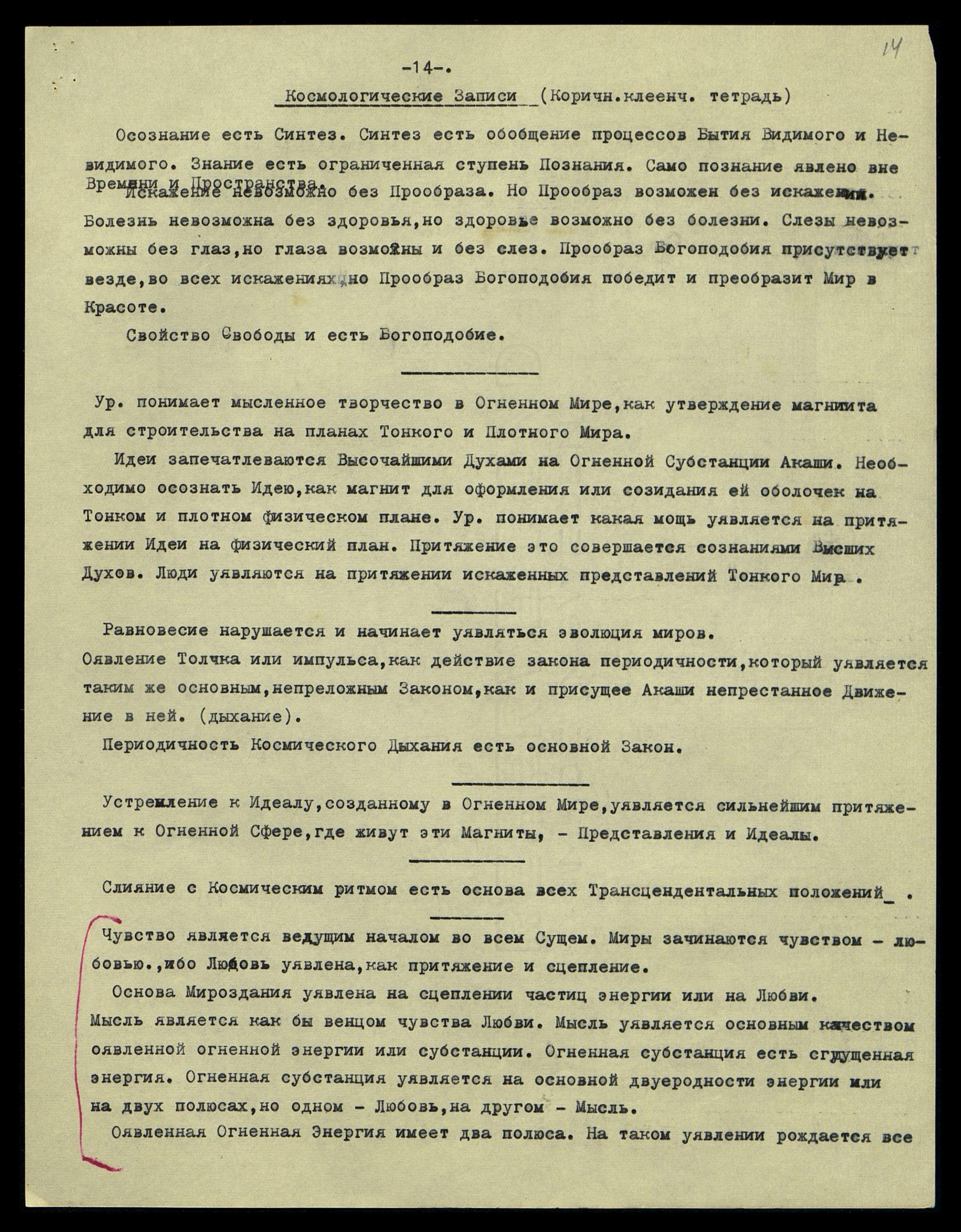 Основа Мироздания уявлена на сцеплении частиц энергии, или на Любви. Мысль является как бы венцом чувства Любви. Мысль уявляется основным качеством оявленной огненной энергии или субстанции. Огненная субстанция есть сгущенная энергия. Огненная субстанция уявляется на основной двуеродности энергии или на двух полюсах, на одном − Любовь, на другом − Мысль.