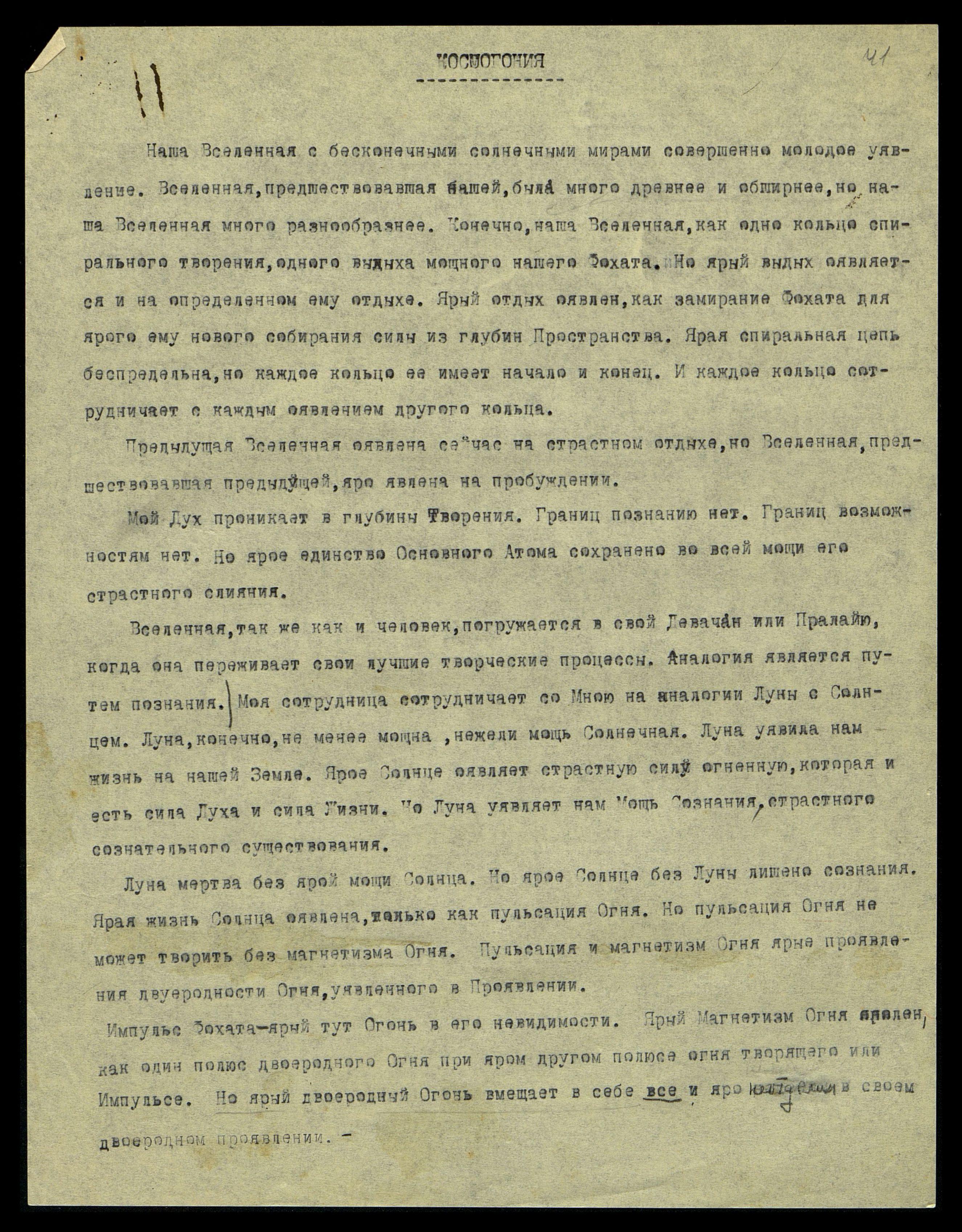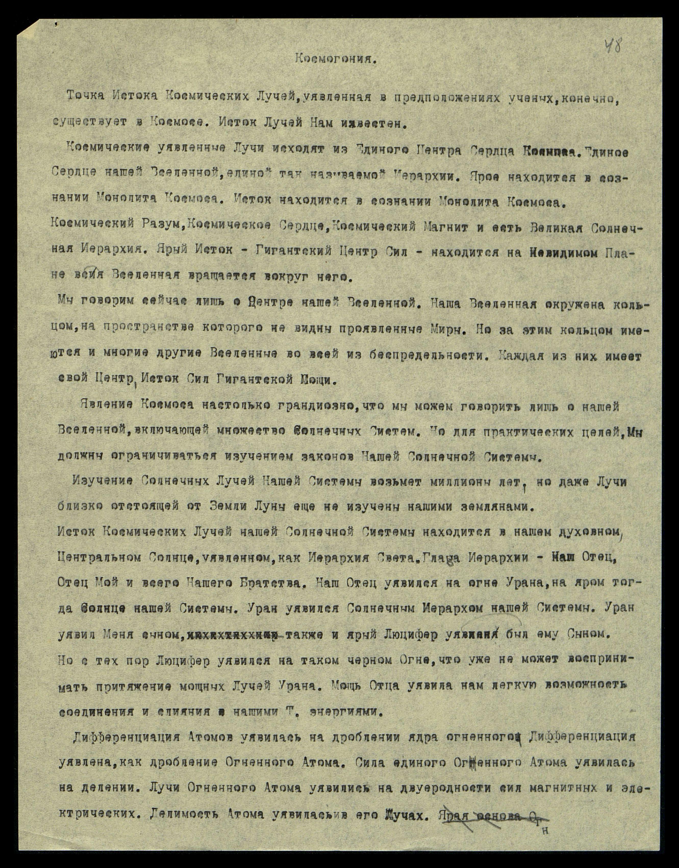 Космические уявленные Лучи исходят из Единого Центра Сердца Космоса. Единое Сердце нашей Вселенной, единой так называемой Иерархии. Ярое находится в сознании Монолита Космоса. Исток находится в сознании Монолита Космоса. Космический Разум, Космическое Сердце, Космический Магнит и есть Великая Солнечная Иерархия. Ярый Исток − Гигантский Центр Сил − находится на Невидимом Плане, вся Вселенная вращается вокруг него.