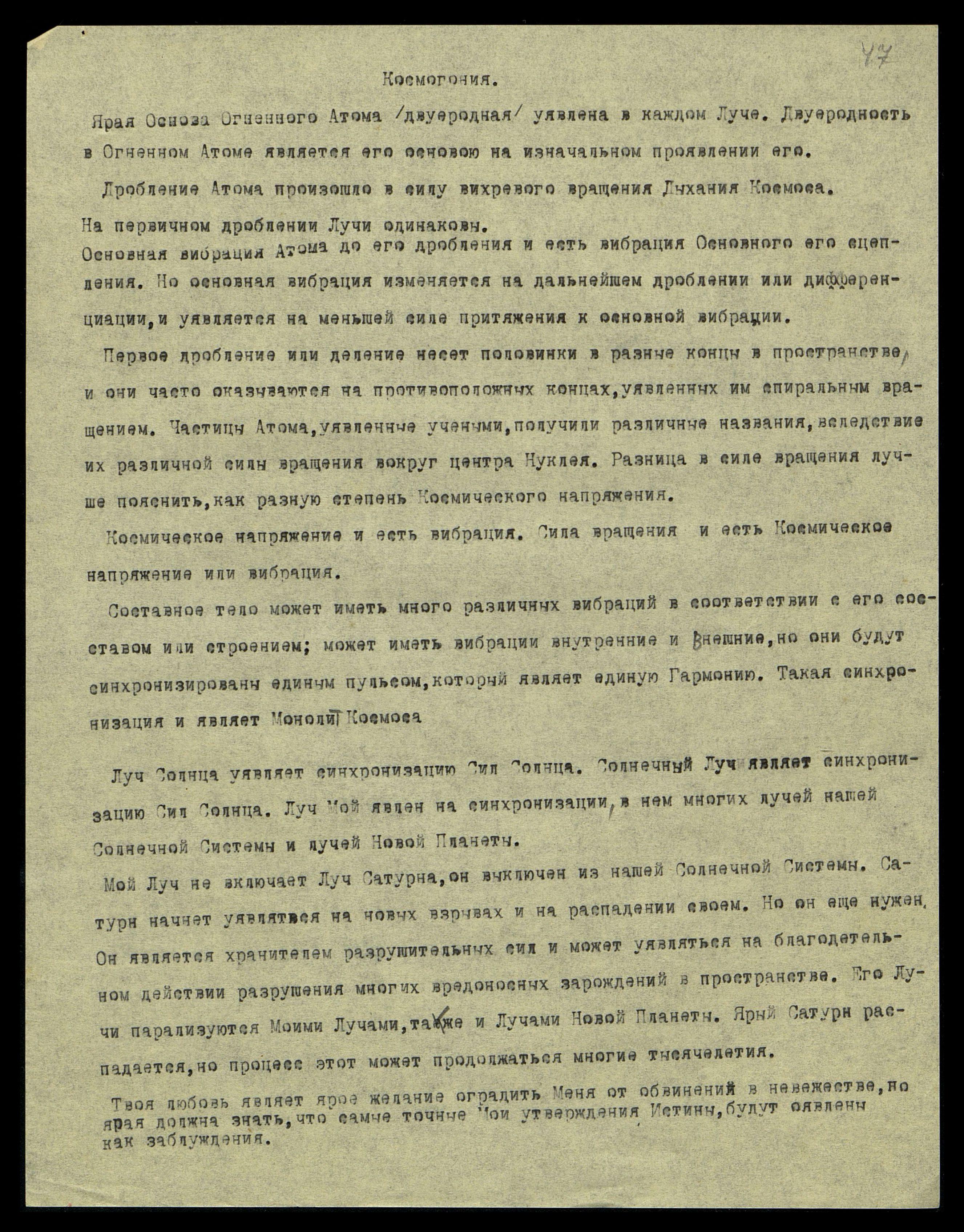 Новое Мировоззрение утвердится на основе Энергетической. Первичное Вещество является на яром утончении с каждым новым кругом или Манвантарой.