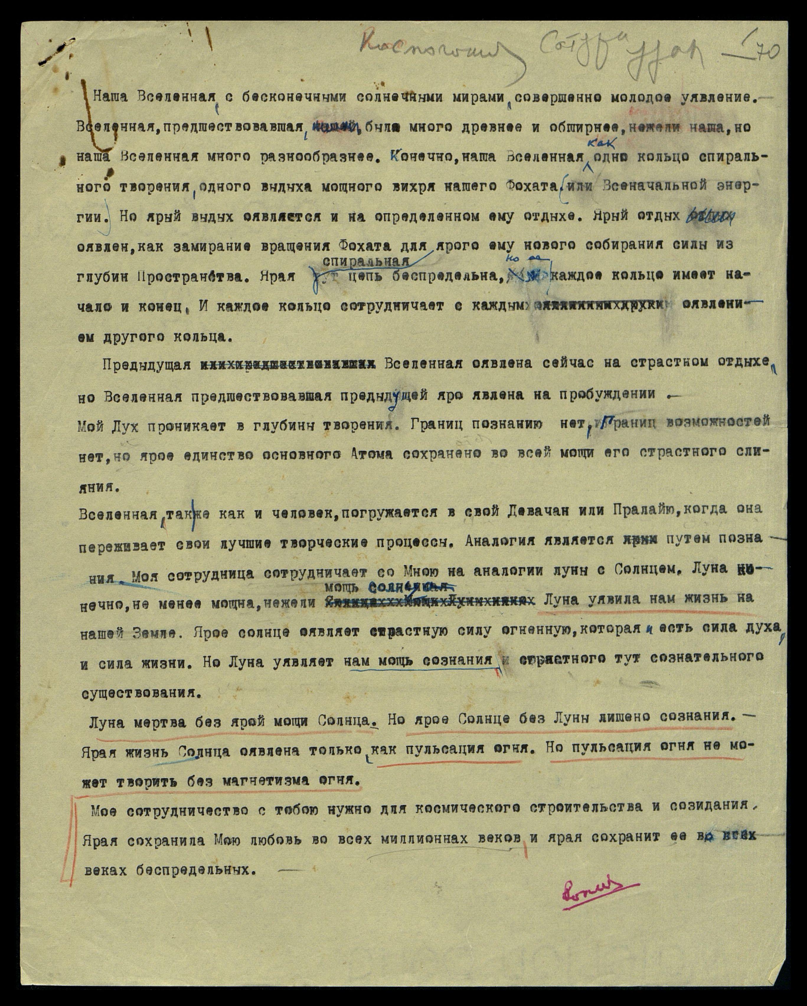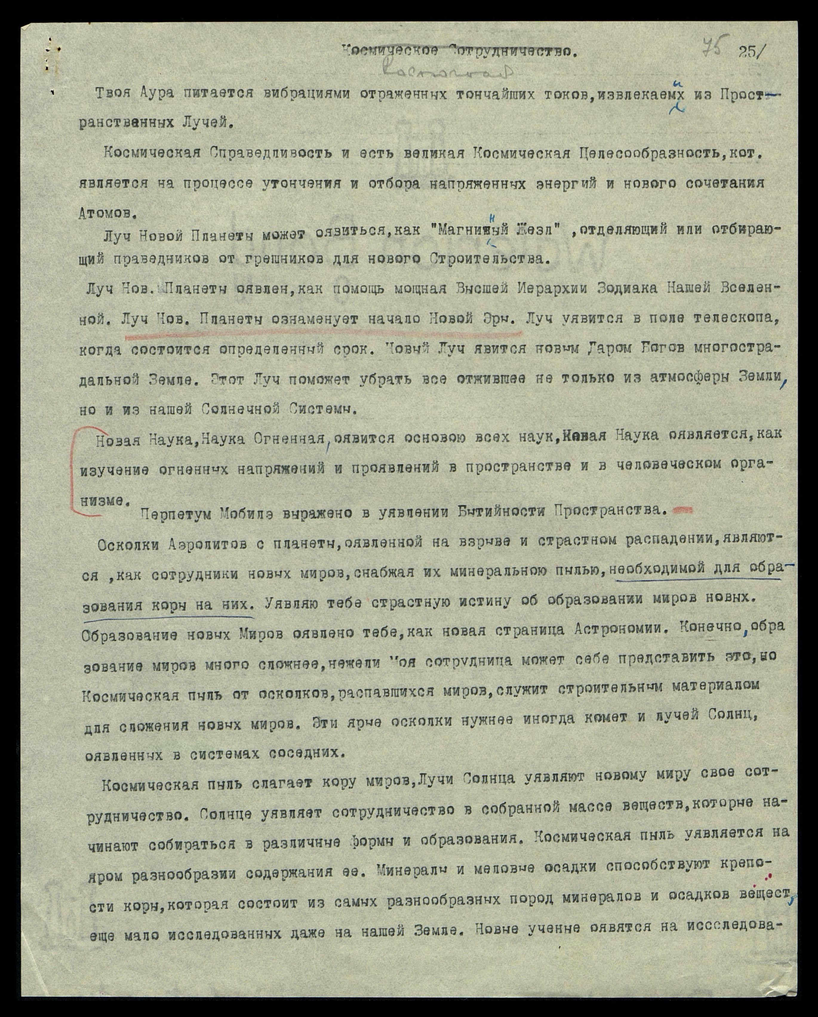Луч Нов[ой] Планеты оявлен как помощь мощная Высшей Иерархии Зодиака Нашей Вселенной. Луч Нов[ой] Планеты ознаменует начало Новой Эры. Луч уявится в поле телескопа, когда состоится определённый срок. Новый Луч явится новым Даром Богов многострадальной Земле. Этот Луч поможет убрать всё отжившее не только из атмосферы Земли, но и из нашей Солнечной Системы.