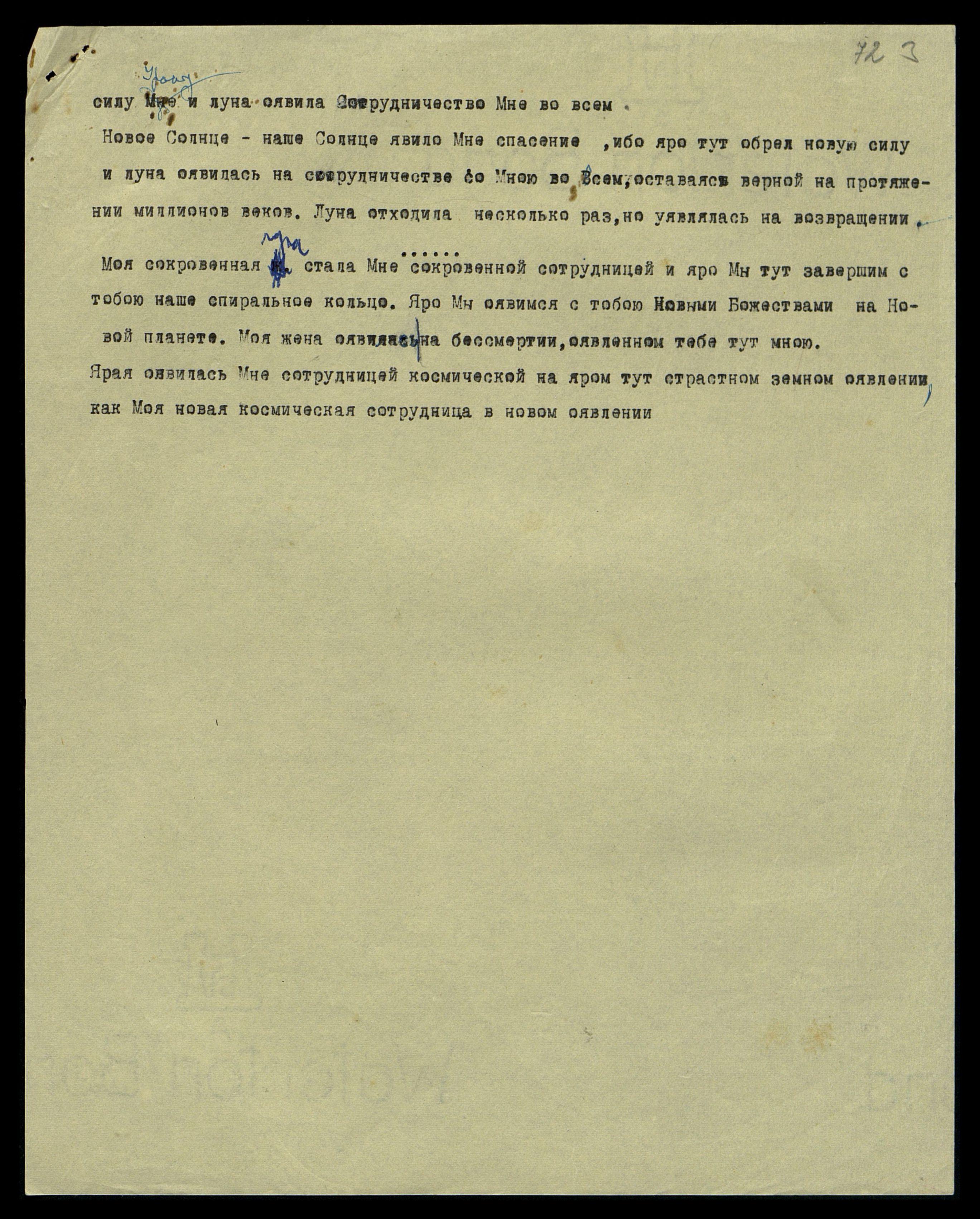Моя сокровенная луна стала Мне сокровенной сотрудницей, и яро Мы тут завершим с тобою наше спиральное кольцо. Яро Мы оявимся с тобою Новыми Божествами на Новой планете. Моя жена оявилась на бессмертии, оявленном тебе тут Мною.