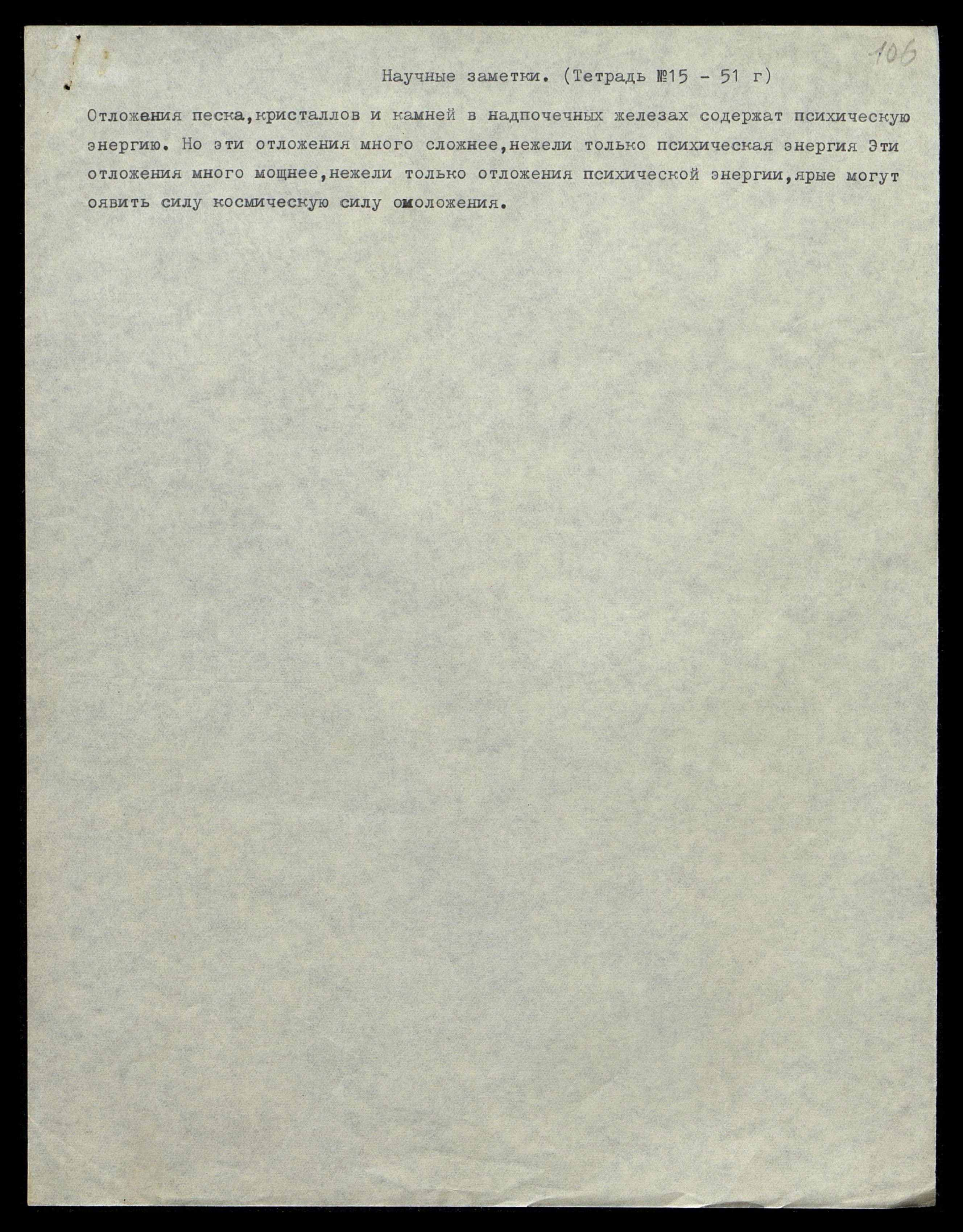 Отложения песка, кристаллов и камней в надпочечных железах содержат психическую энергию. Но эти отложения много сложнее, нежели только психическая энергия. Эти отложения много мощнее, нежели только отложения психической энергии, ярые могут оявить силу, космическую силу омоложения.