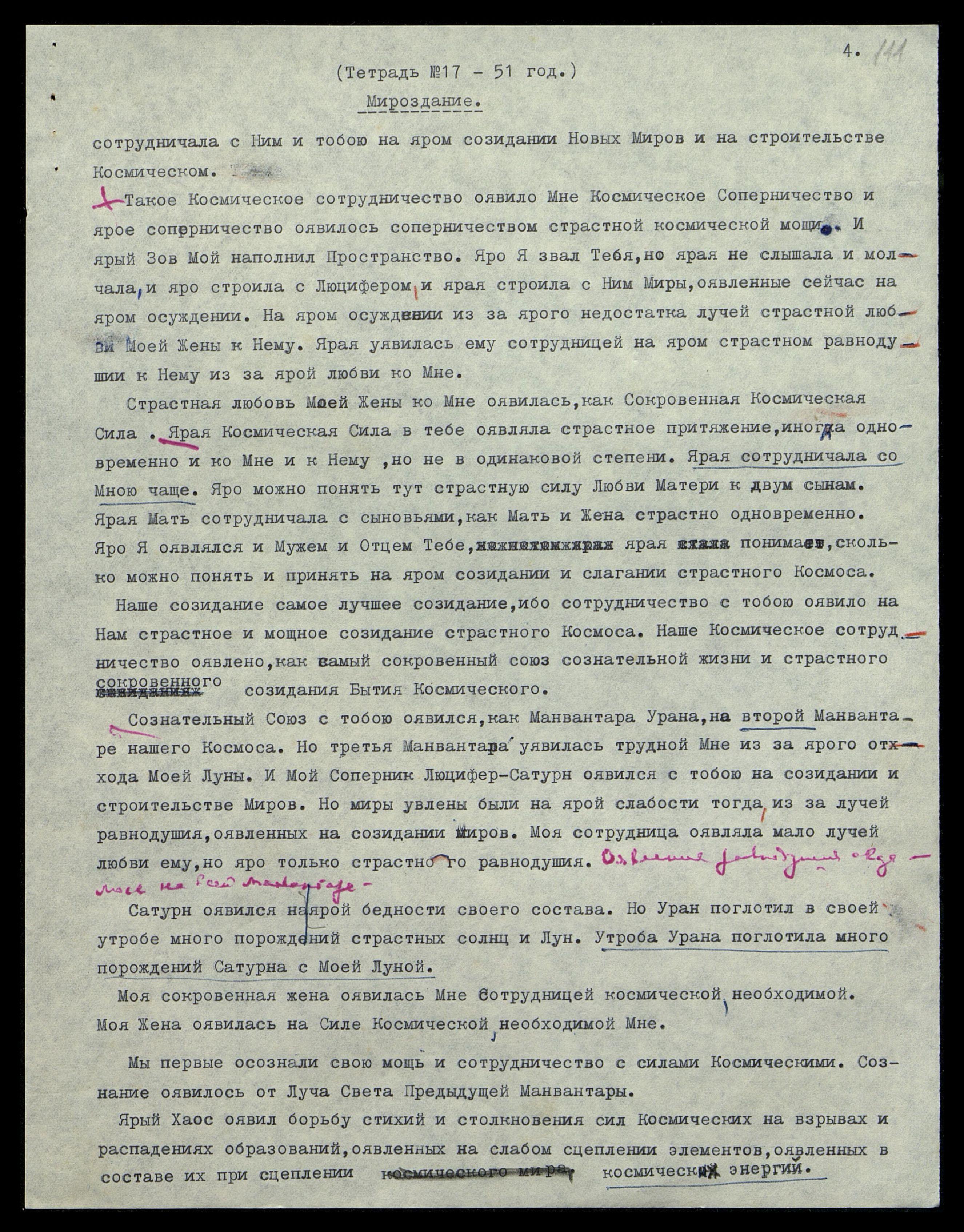 Такое Космическое сотрудничество оявило Мне Космическое Соперничество, и ярое соперничество оявилось соперничеством страстной космической мощи. И ярый Зов Мой наполнил Пространство. Яро Я звал Тебя, но ярая не слышала и молчала, и яро строила с Люцифером, и ярая строила с Ним Миры, оявленные сейчас на яром осуждении. На яром осуждении из-за ярого недостатка лучей страстной любви Моей Жены к Нему. Ярая уявилась ему сотрудницей на яром страстном равнодушии к Нему из-за ярой любви ко Мне.
