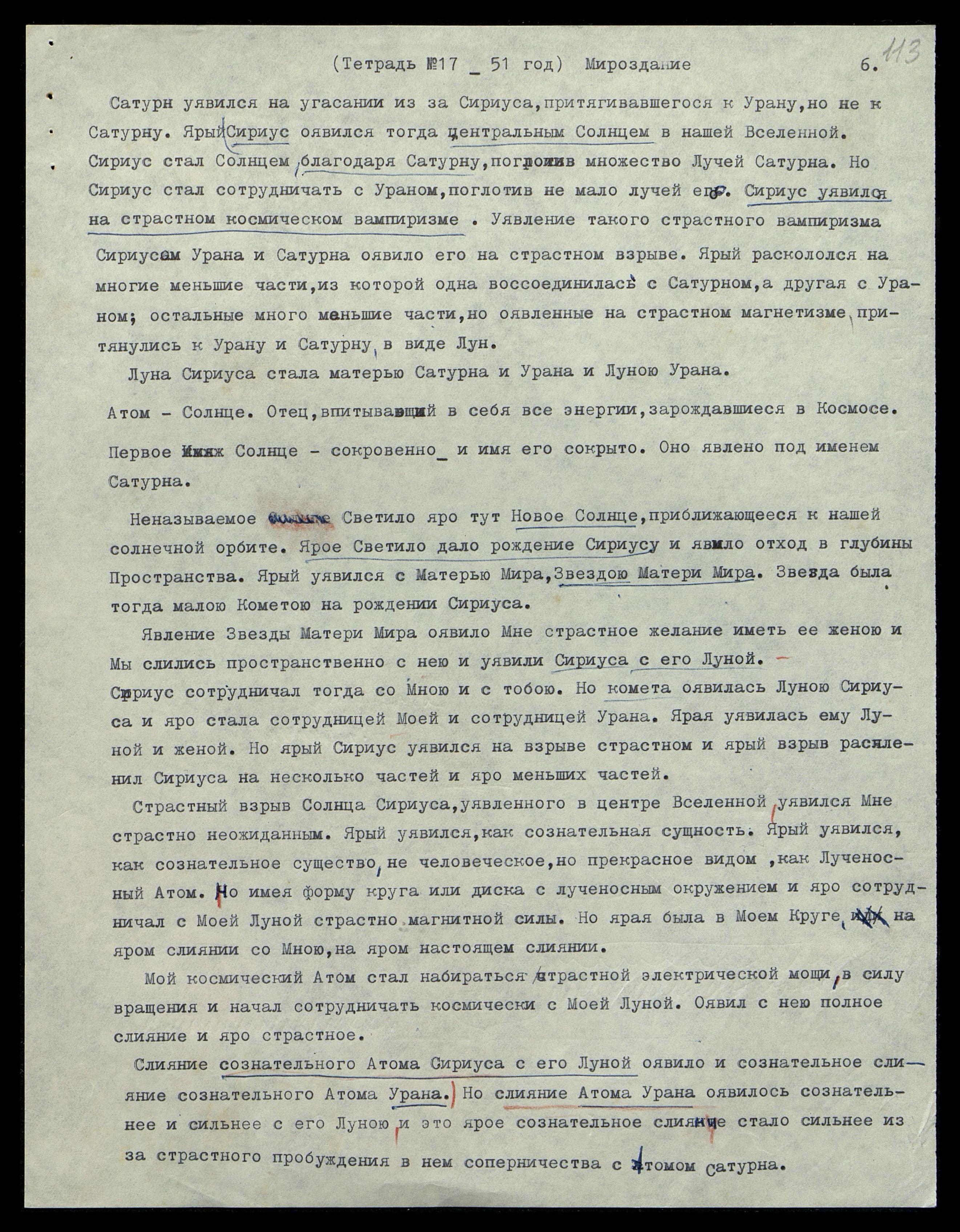 Явление Звезды Матери Мира оявило Мне страстное желание иметь её женою, и Мы слились пространственно с нею и уявили Сириуса с его Луной. Сириус сотрудничал тогда со Мною и с тобою. Но комета оявилась Луною Сириуса и яро стала сотрудницей Моей и сотрудницей Урана. Ярая уявилась ему Луной и женой. Но ярый Сириус уявился на взрыве страстном, и ярый взрыв расчленил Сириуса на несколько частей, и яро меньших частей.