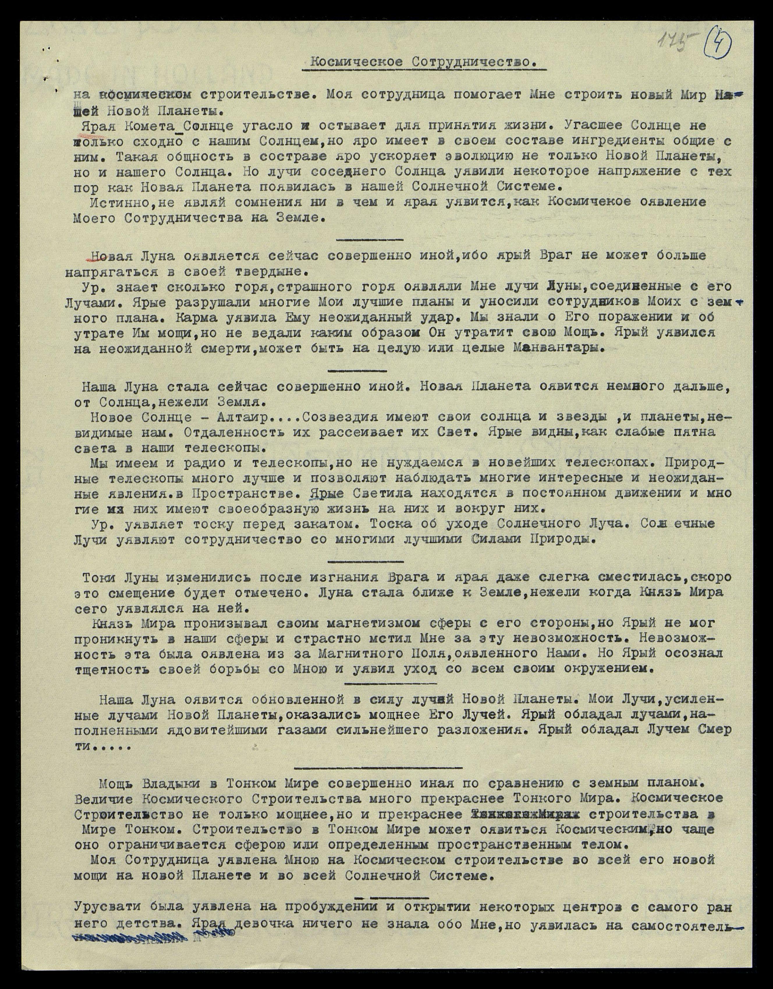Солнечное сотрудничество оявилось слишком сильного свойства. Близость Солнца сократила ей жизнь, и Планета уявилась на сокращении своего сотрудничества с Нами. Прекрасная сотрудница Наша уявилась как определённо отходящая лучшая Помощница Наша. Теперь она уже уявляется, скорей, как нежелательная сотрудница, ибо уявилась как сотрудница Солнечного Луча на распаде. Но такой Луч оявлен на большой силе, и его надо пресечь, уявить отклонение его от нашей Земли.