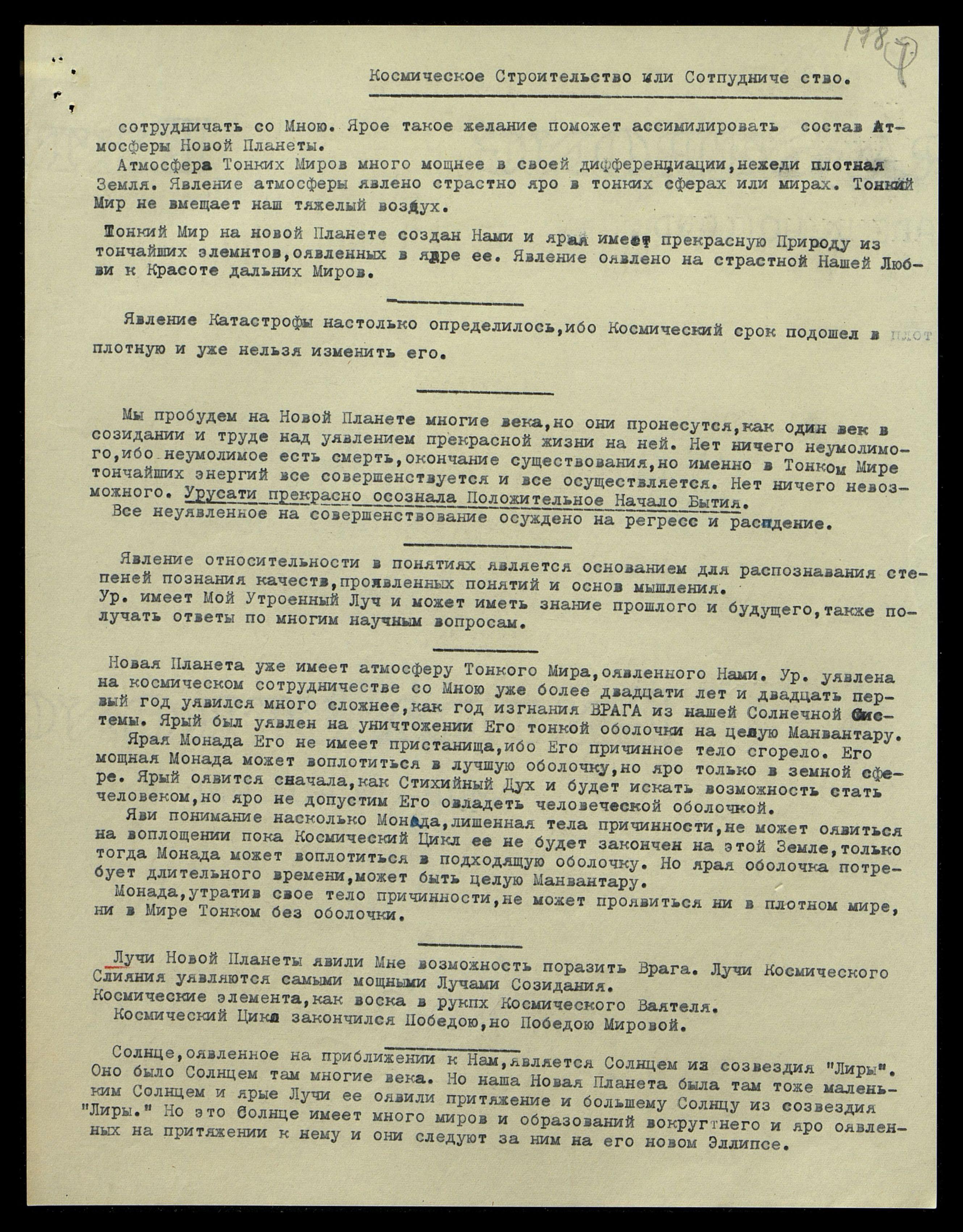 Новая Планета уже имеет атмосферу Тонкого Мира, оявленного Нами. Урусвати уявлена на космическом сотрудничестве со Мною уже более двадцати лет, и двадцать первый год уявился много сложнее, как год изгнания ВРАГА из нашей Солнечной Системы. Ярый был уявлен на уничтожении Его тонкой оболочки на целую Манвантару.
