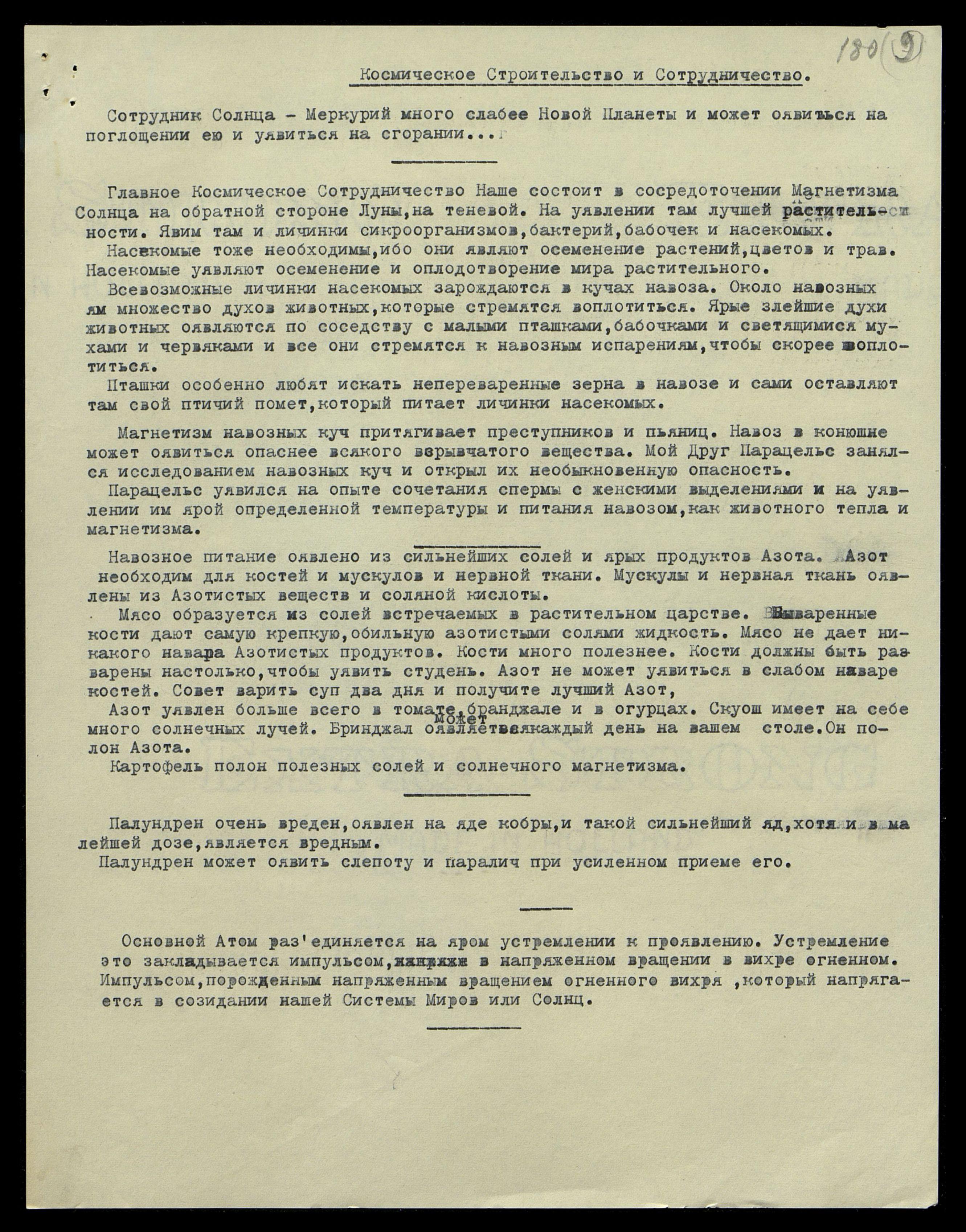 Оявят зависимость Солнца от планет и планет от Солнца, также и от Лучей проходящих пространственных тел вблизи нашей Солнечной Системы и воздействующих на неё. Земля окутана Коричневым газом, оявленным на яром разложении. Коричневый Газ есть продукт отбросов планеты, оявленных человечеством на омертвении человеческого духа на основе разврата и ярого сотрудничества с силами Тьмы. Явление это оявило страстное отягощение атмосферы и заразу Kоричневым Газом и Марсу, и своей Луне. Луна оявилась на распадении. Коричневый Газ страшен в его разлагающей мощи.