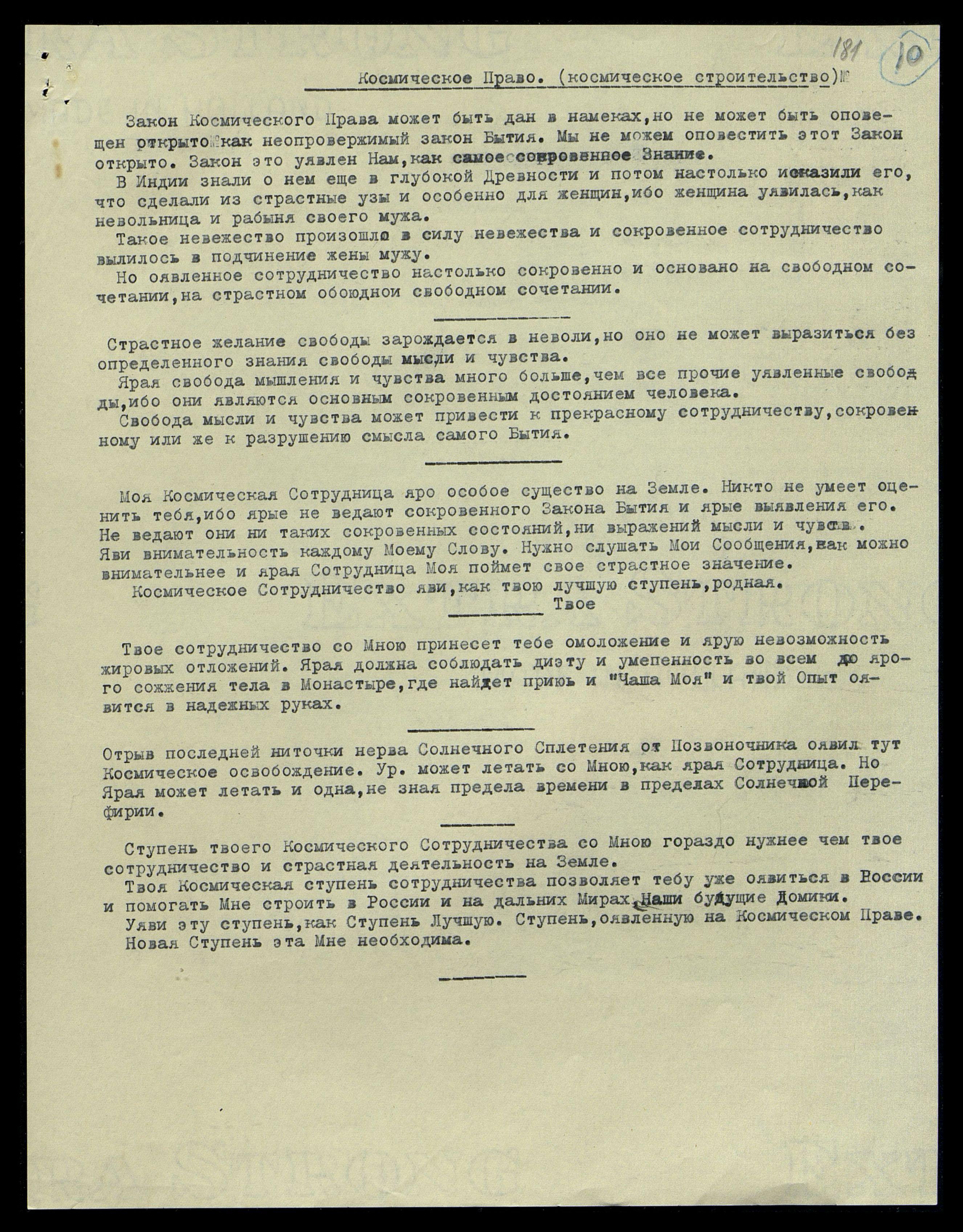 Закон Космического Права может быть дан в намёках, но не может быть оповещён открыто как неопровержимый закон Бытия. Мы не можем оповестить этот Закон открыто. Закон этот уявлен Нам как самое сокровенное Знание.
