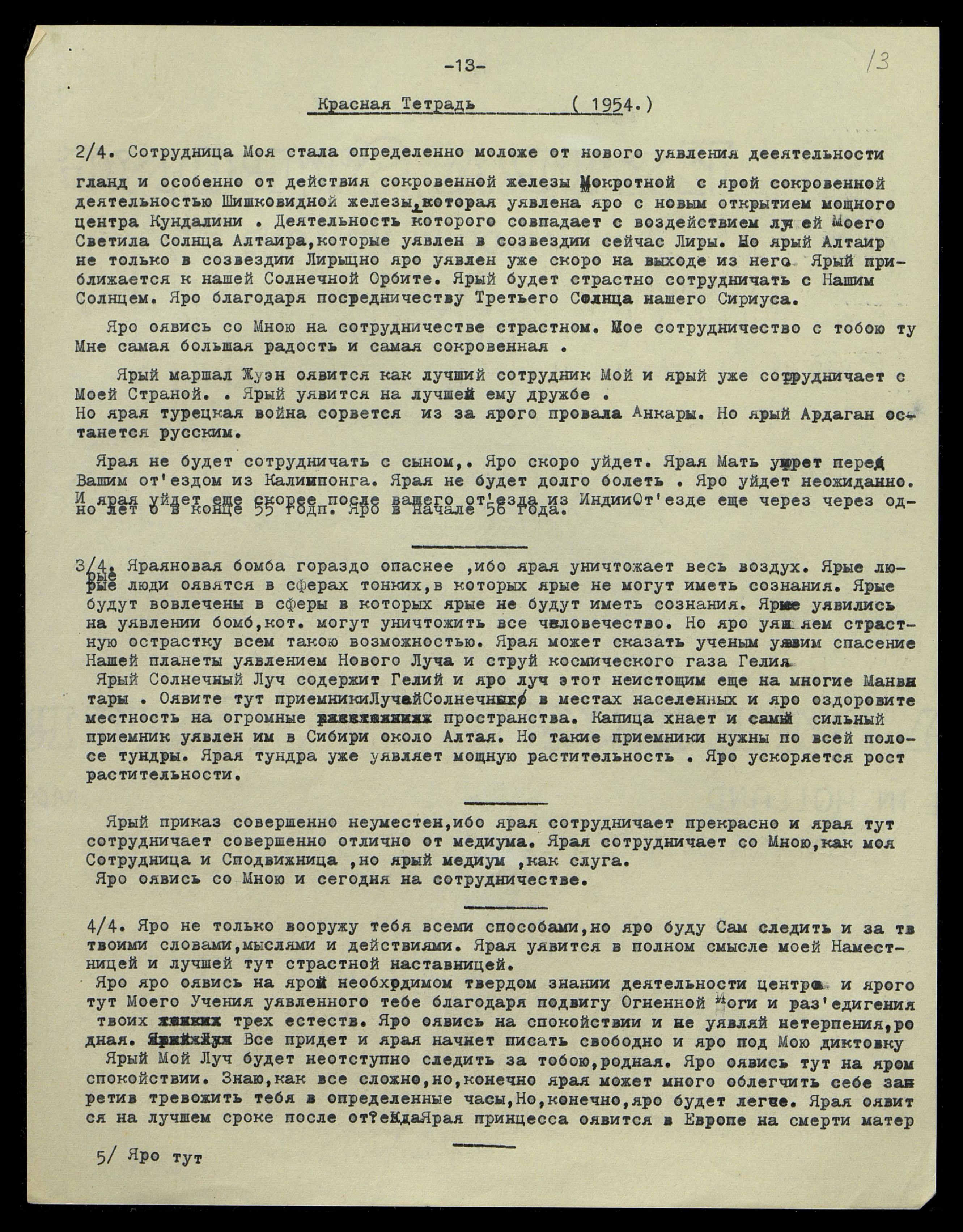 4/4. Яро не только вооружу тебя всеми способами, но яро буду Сам следить и за твоими словами, мыслями и действиями. Ярая уявится в полном смысле моей Наместницей и лучшей тут страстной наставницей. Яро, яро оявись на яром необходимом твердом знании деятельности центра и ярого тут Моего Учения, уявленного тебе благодаря подвигу Огненной Йоги и разъединения твоих трех естеств. Яро оявись на спокойствии и не уявляй нетерпения, родная. Все придет и ярая начнет писать свободно и яро под Мою диктовку.