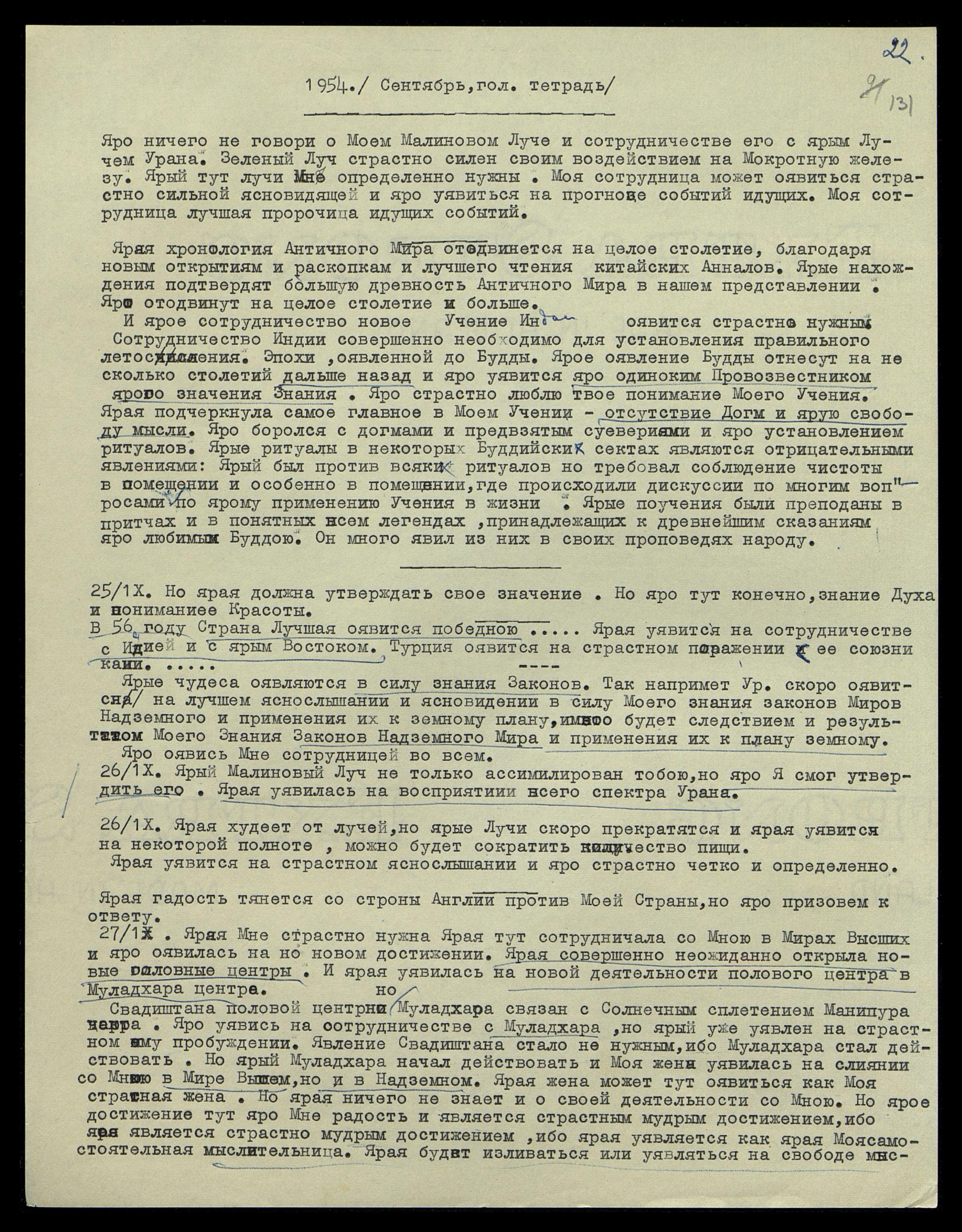 26/IX. Ярая худеет от лучей, но ярые Лучи скоро прекратятся и ярая уявится на некоторой полноте, можно будет сократить количество пищи. Ярая уявится на страстном яснослышании и яро страстно четко и определенно.