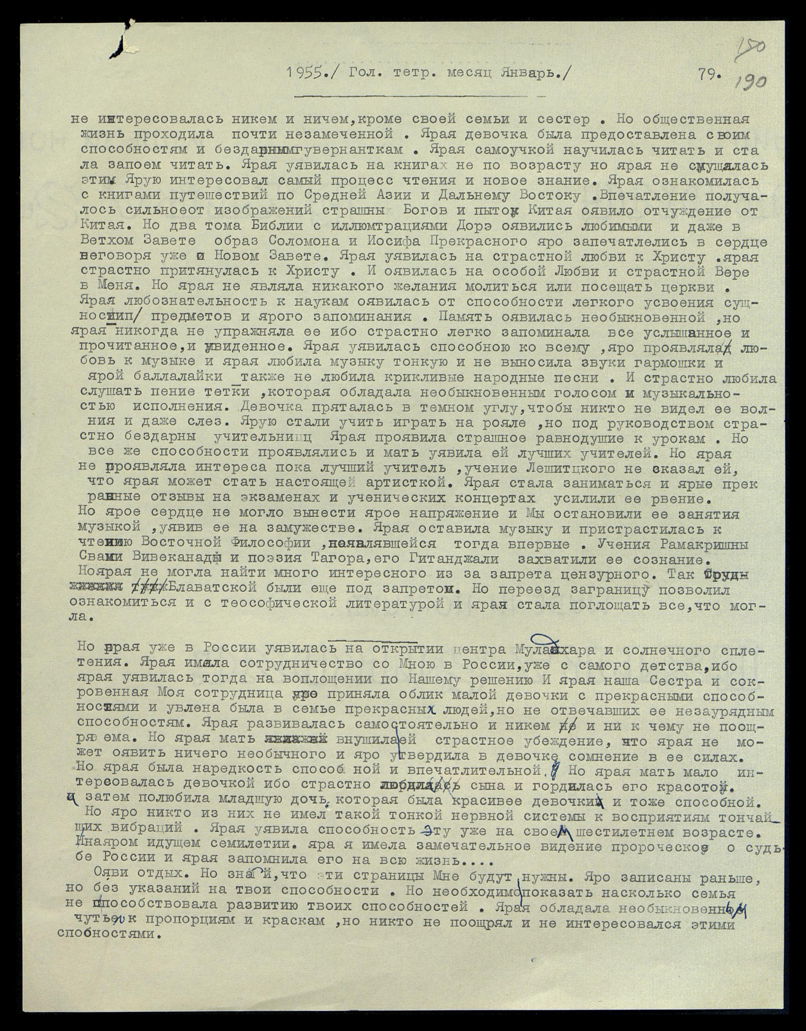 Ярая уявилась на новой ступени осознания Долга превыше всего. Ярая права, что Вл[ады]ка оявлен, прежде всего, на осознании Долга. Ярый не только принесет жертву, но примет ее, если ярая тут необходима. Ярая жертва − твое сожжение тонкой оболочки до ярого срока − помогло Мне, но уявило Мне страстное горе. Ярое опалилось в Тибете и сгорело в Наггаре (в [19]43-ем г.) Сотрудничество со Мною оявилось страстно трудным на яром сожжении тонкого тела (оболочки).