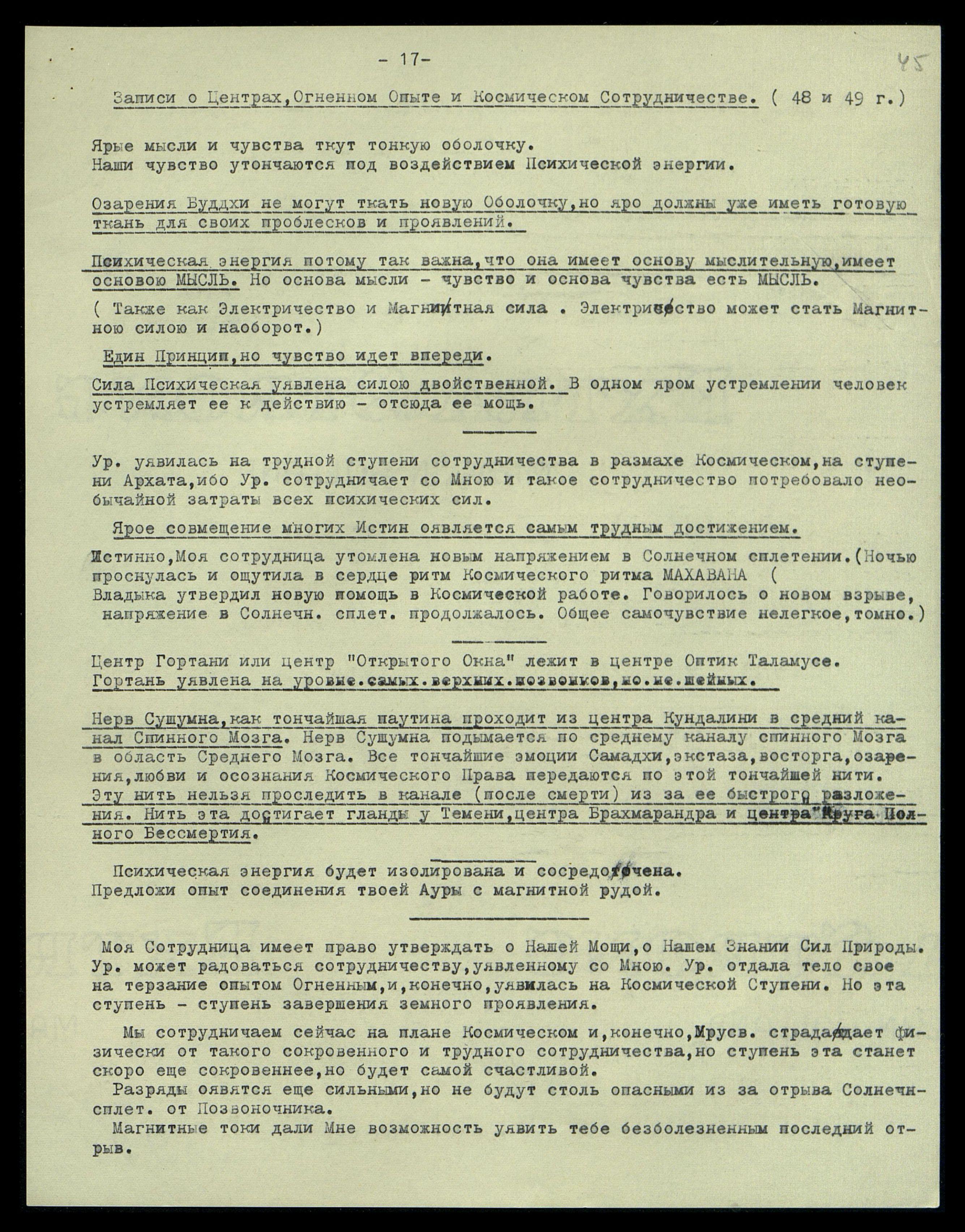 Записи о Центрах, Огненном Опыте и Космическом Сотрудничестве) (1948 и 1949 гг.)