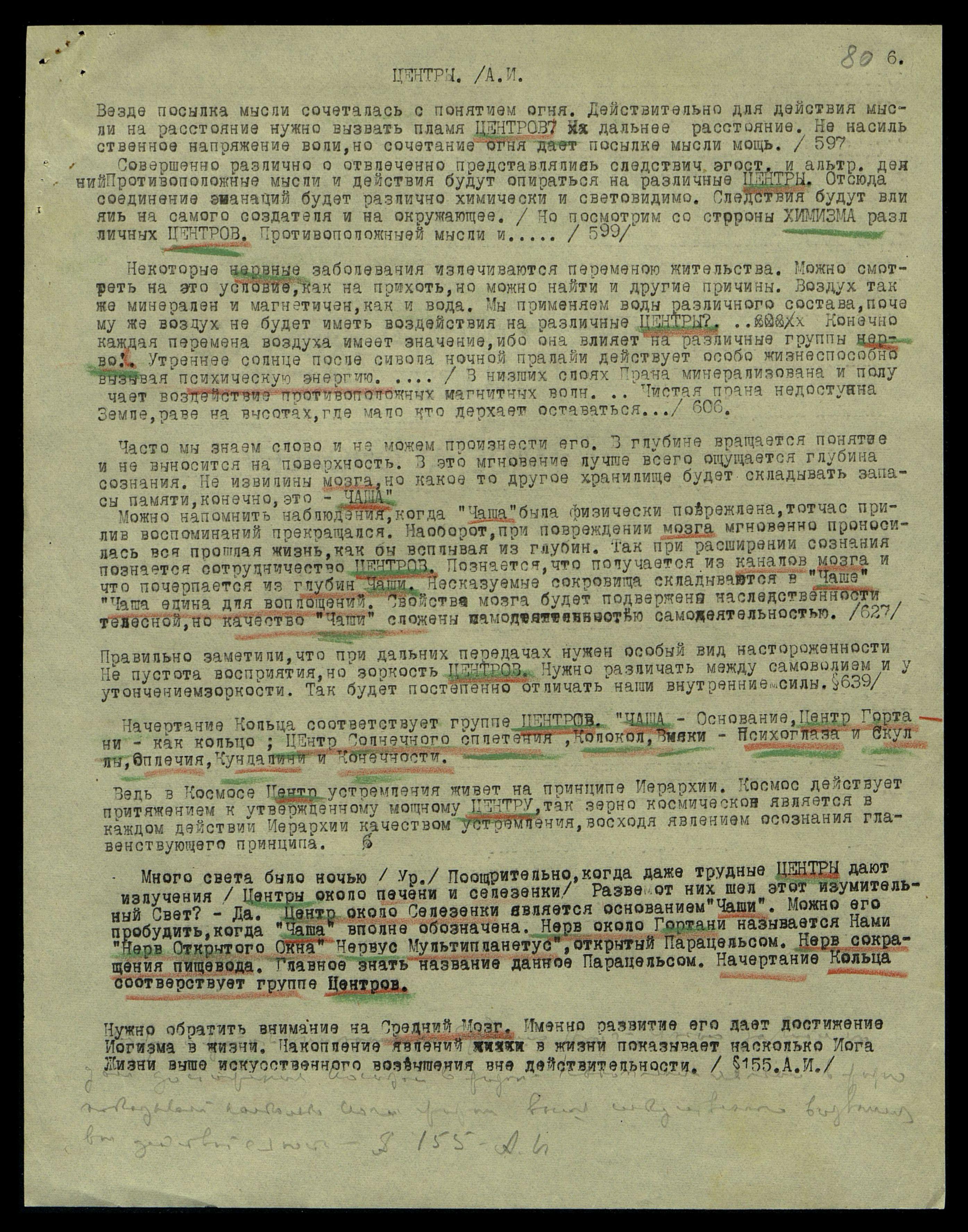 Везде посылка мысли сочеталась с понятием огня. Действительно, для действия мысли на расстояние нужно вызвать пламя ЦЕНТРОВ [на] дальнее расстояние. Не насильственное напряжение воли, но сочетание огня даёт посылке мысли мощь. (§ 597).