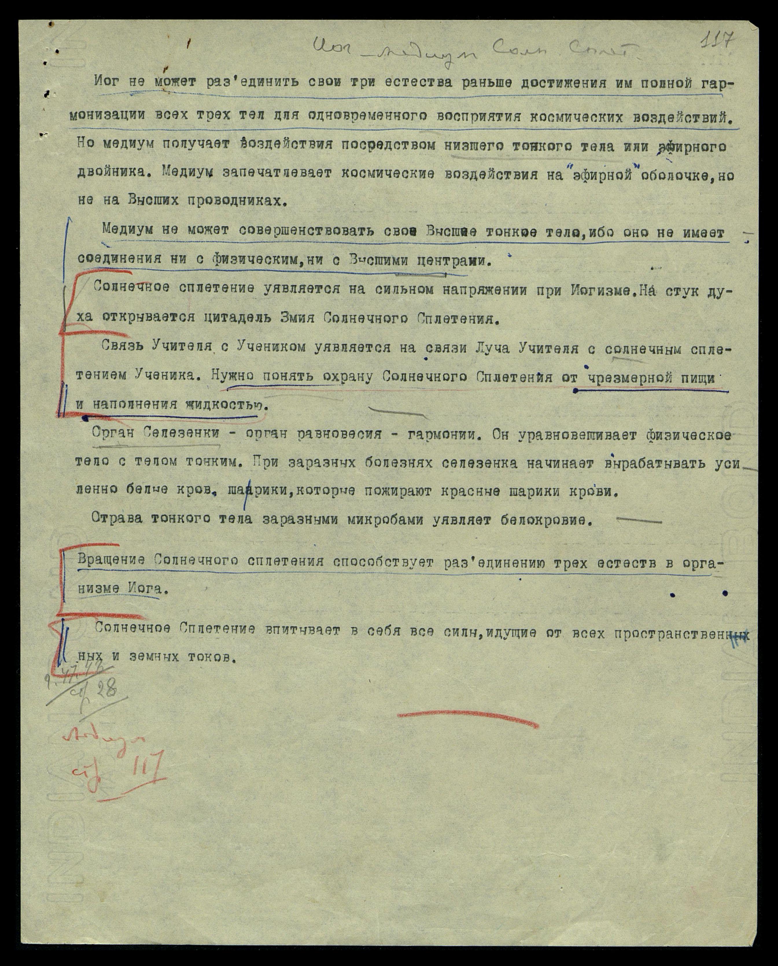 Солнечное Сплетение Йога наполнено самой высокой энергией и самого высокого ее качества. Но медиум не может иметь многих отложений в Солн[ечном] Сплетении из-за отрыва Солнечн[ого] Сплет[ения] от высших проводников еще при рождении.
