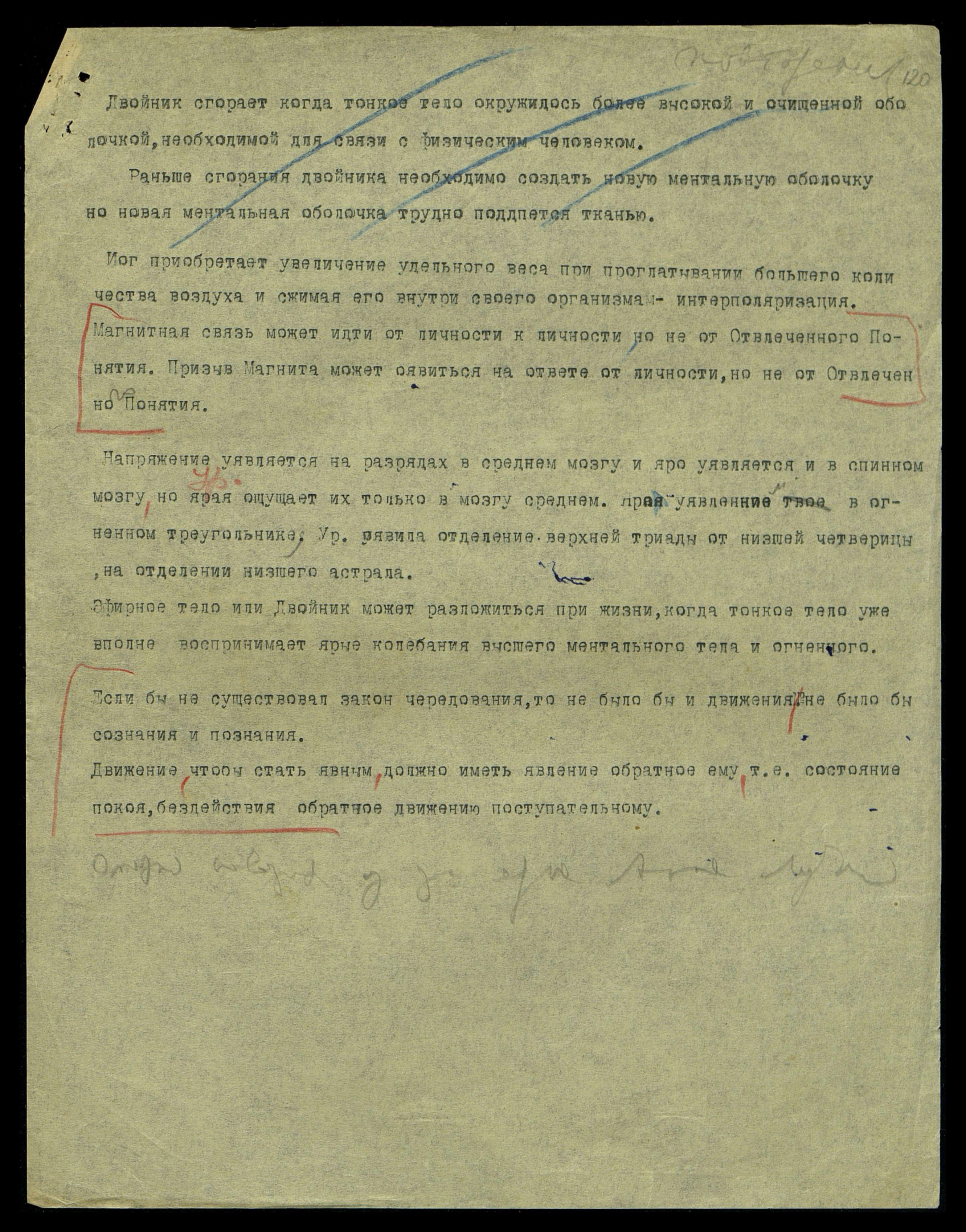 При двойнике можно ощущать сильное воздействие на некоторые органы, Солнечное Сплетение и ярые центры половые*… Центры имеют основание свое в тонком теле, но ярый Двойник может несколько способствовать воздействию Лучей и усилять ощущения от воздействия Луча на некоторые центры и органы.