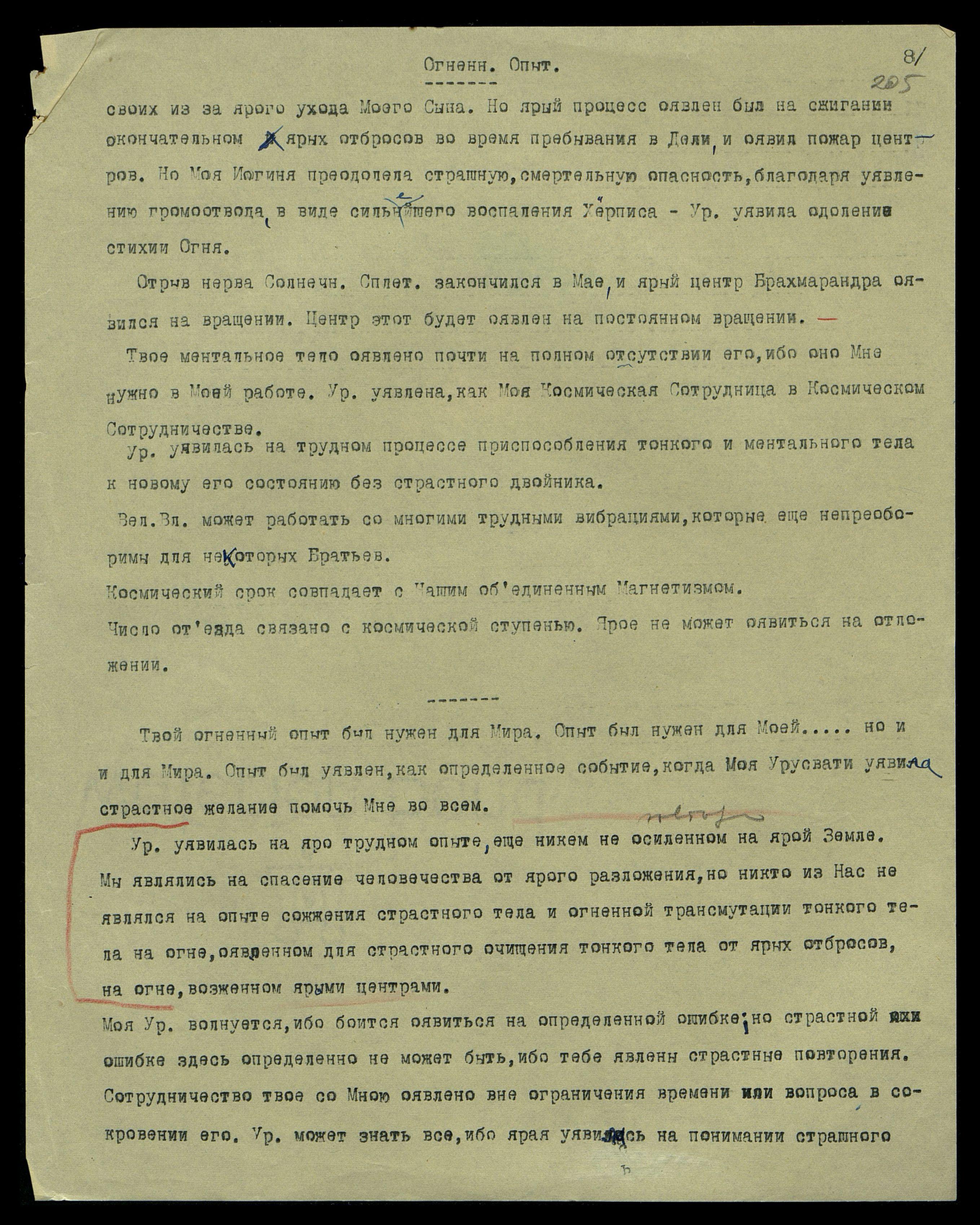 Урусвати уявилась на яро трудном опыте, еще никем не осиленном на ярой Земле. Мы являлись на спасение человечества от ярого разложения, но никто из Нас не являлся на опыте сожжения страстного тела и огненной трансмутации тонкого тела на огне, оявленном для страстного очищения тонкого тела от ярых отбросов, на огне, возжженном ярыми центрами.