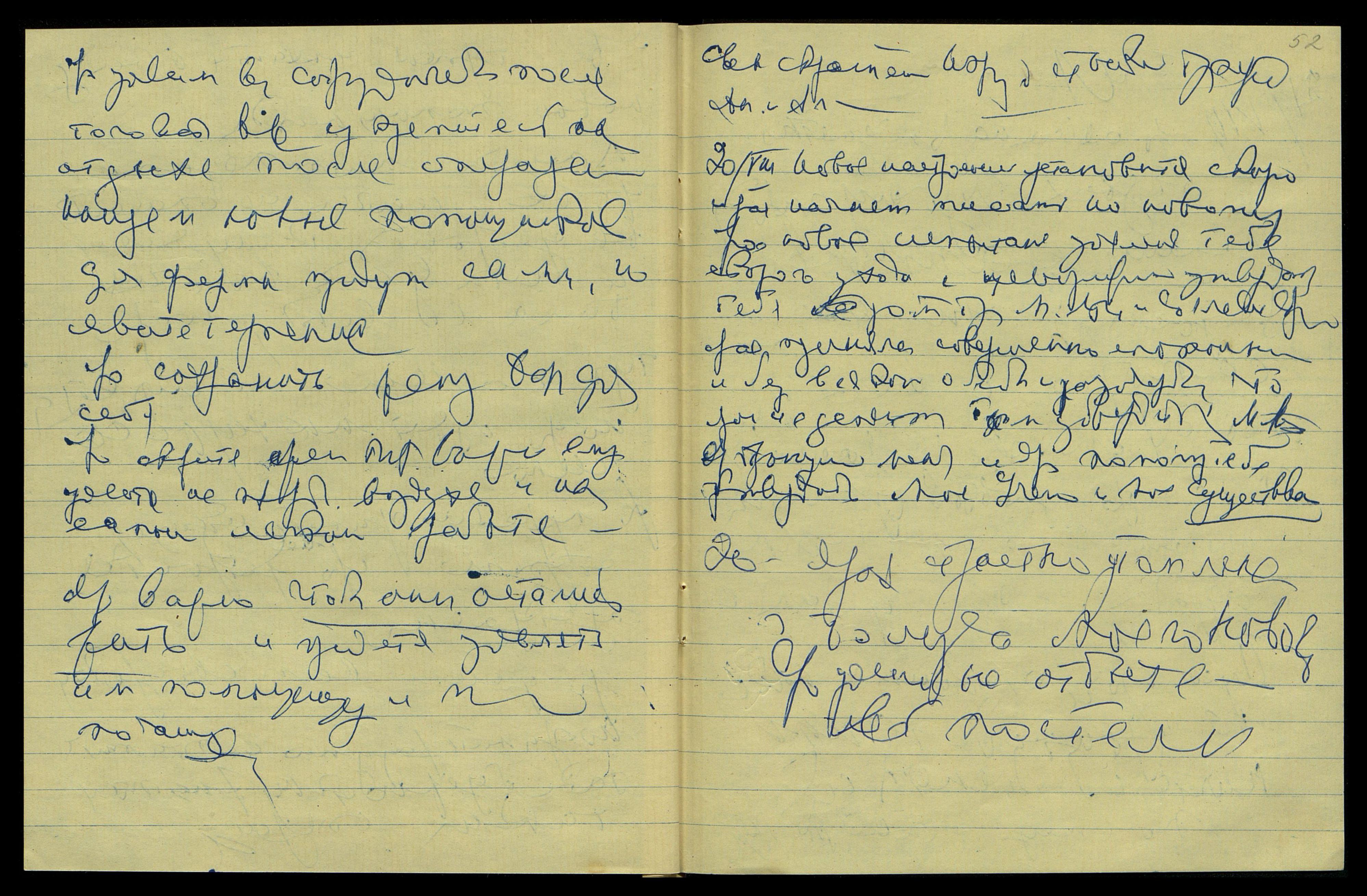Ярое новое испытание — уявление тебе скорого ухода и невозможн[ости] утвердиться тебе ярой тут М[атерью] М[ира] и во главе Стр[аны] ярая приняла совершенно спокойно и без всякой обиды и разочаров[ания], что ярая не успеет там утвердиться М[атерью] М[ира]. Яр[ая] тронула Меня, и яро помогу тебе утвердить Моё Учение и Моё Существование.