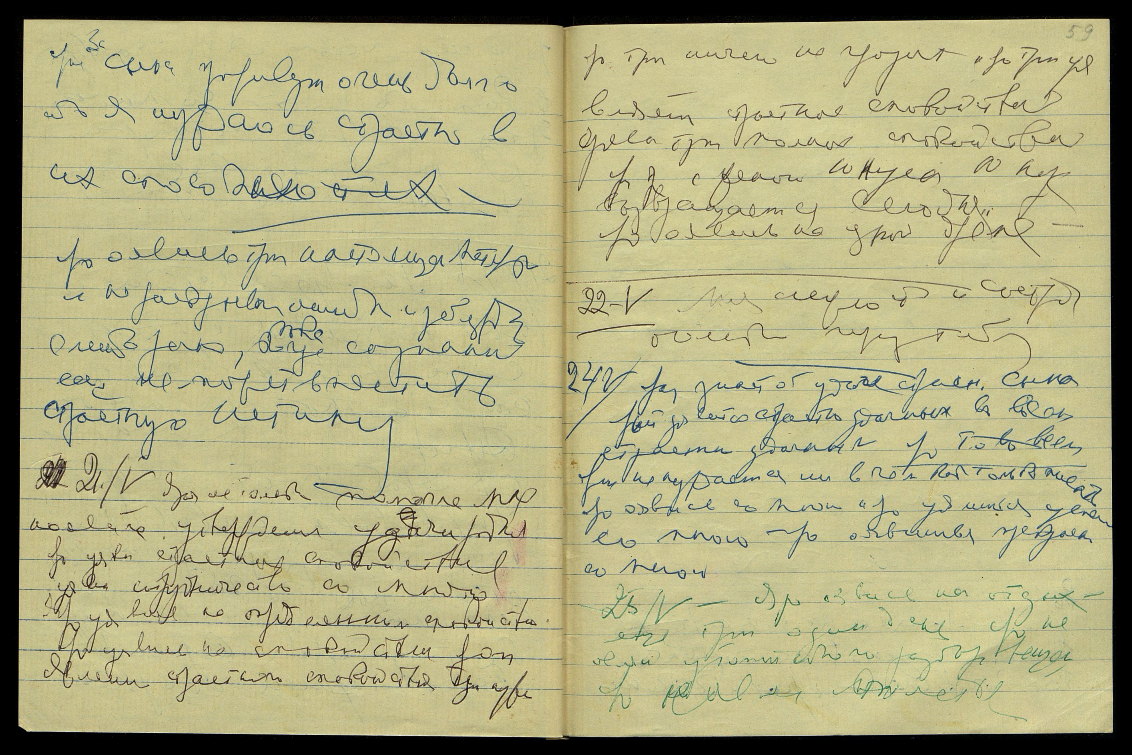 24/V. Ярая знает об удаче страст[ной] Сына. Ярый уявится страстно удачным, во всем страстно удачным. Ярый не нуждается ни в чем, как только писать. Яро оявись со Мною — и яро уявишься успеш[ным] со Мною, яро оявишься прекрасно со Мною.