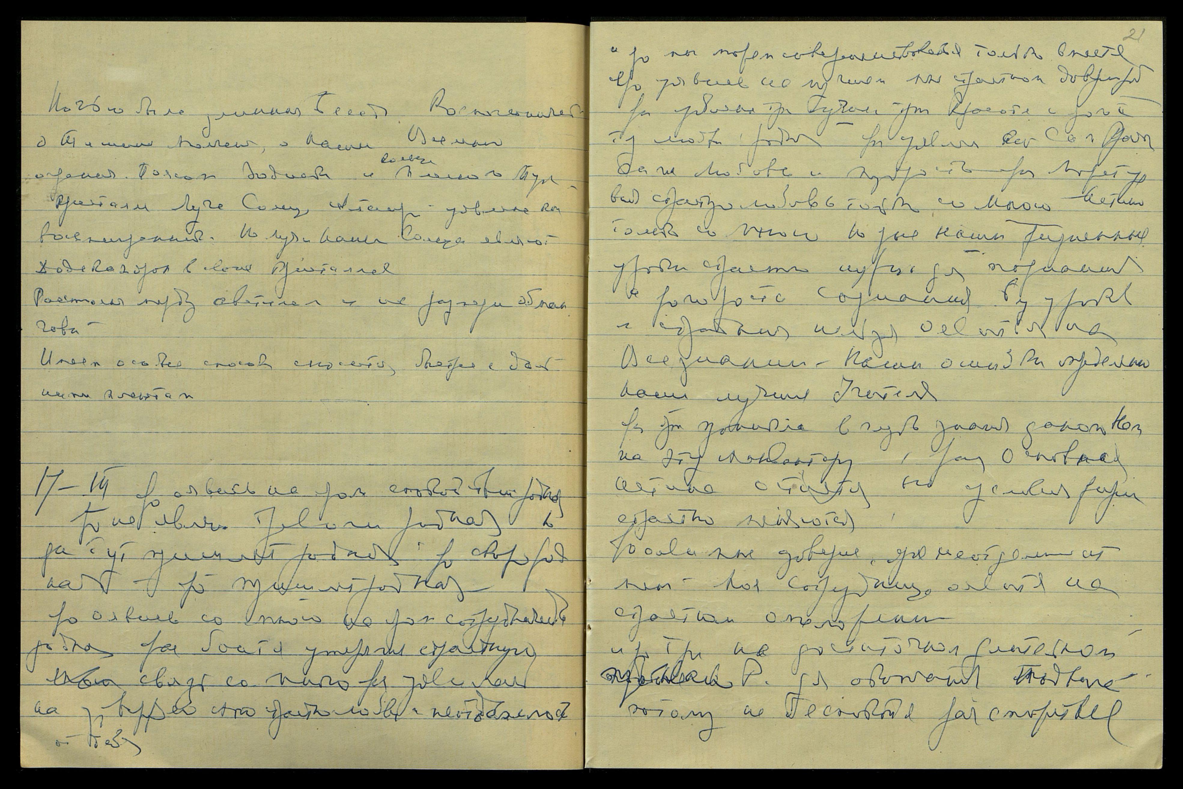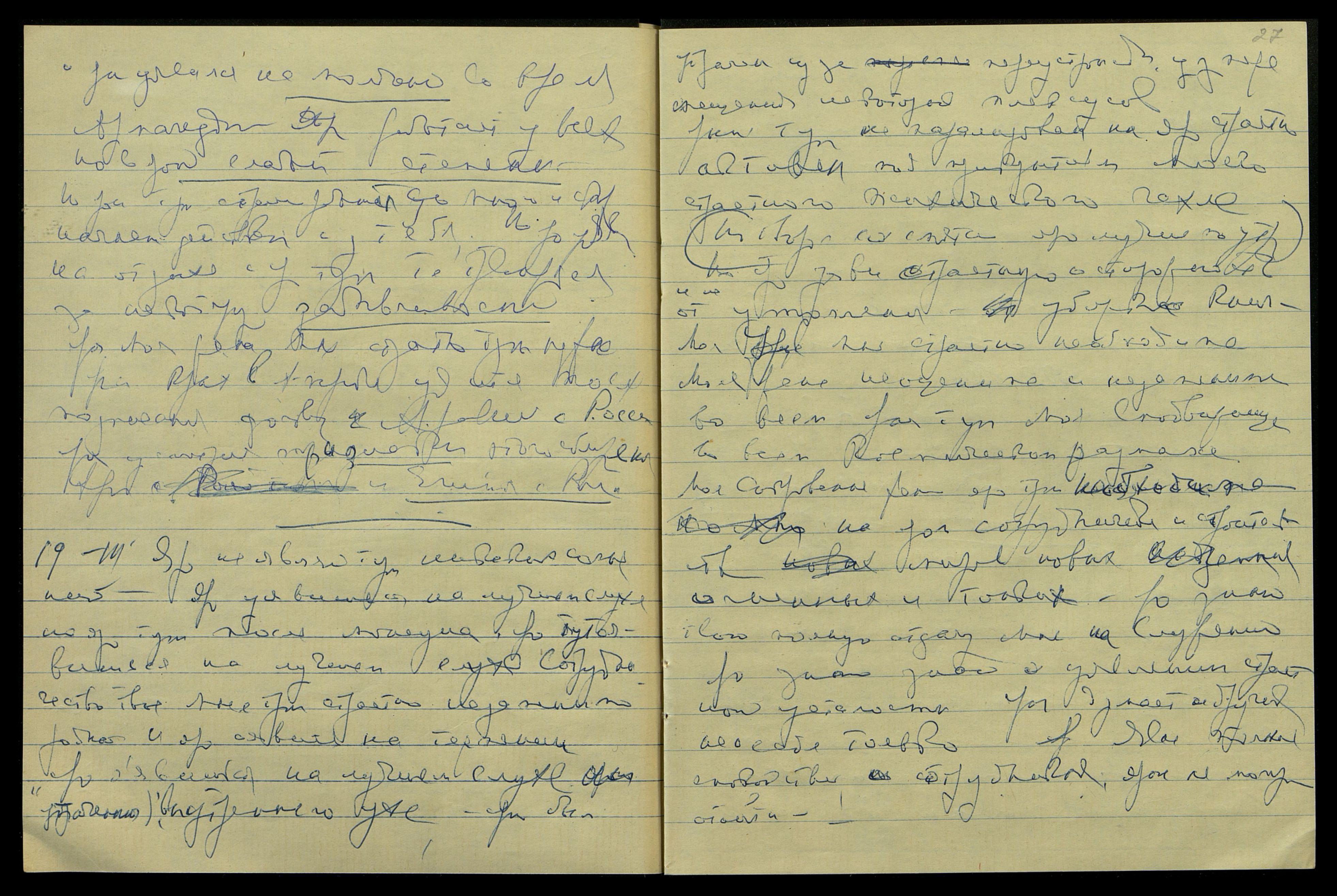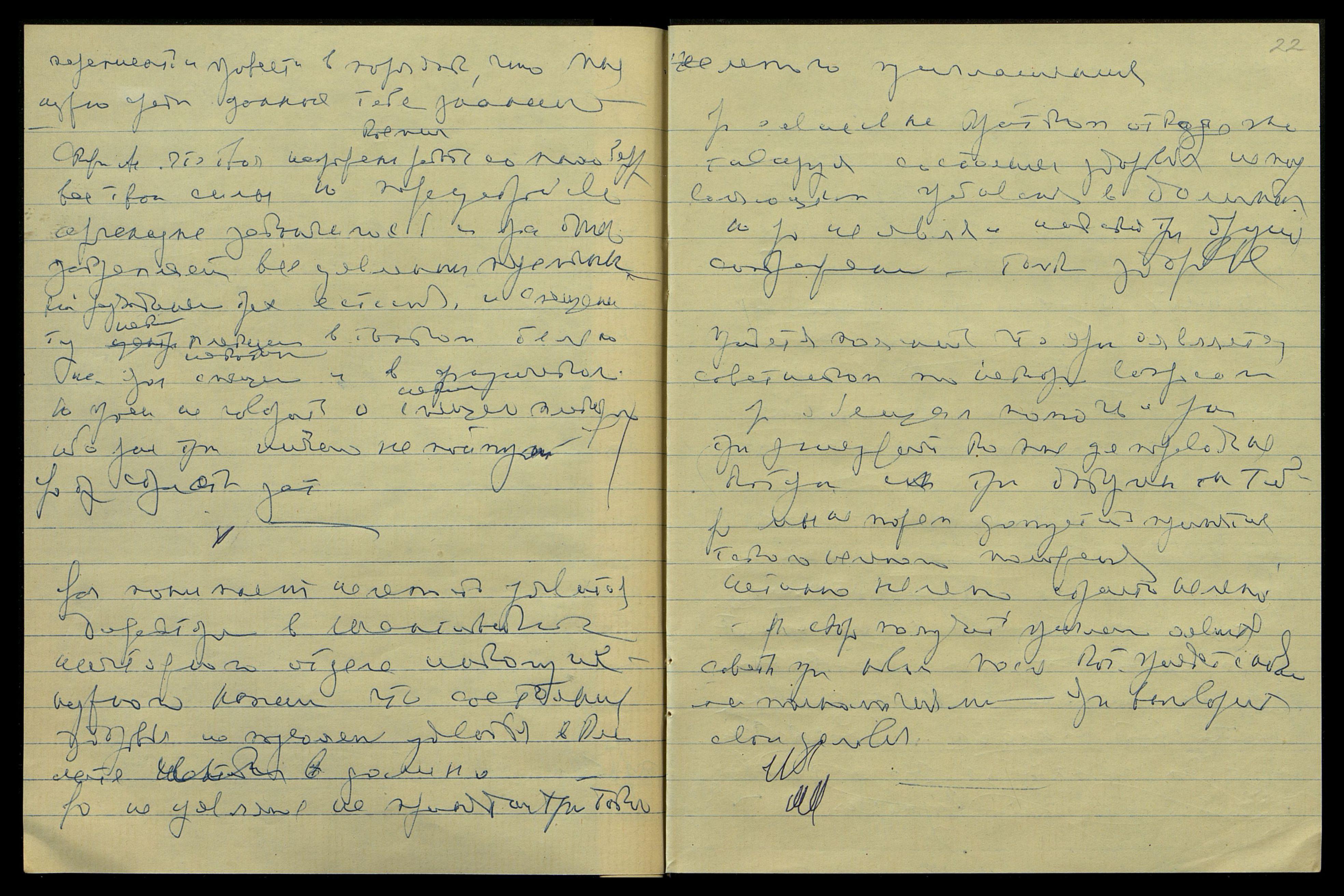 Скажи Ас[сееву], что твоя напряжен[ная] Космич[еская] работа со Мною берет все твои силы, но переустройство организма закончилось, и ярая теперь закрепляет все уявленные перемены на разъединен[ии] трех естеств и смещении тут нек[отором] плексуса в тонком теле, но на яром некотором смещении и в физическом. Но проси не говорить о некот[ором] смещении плексуса, ибо ярые тут ничего не поймут. Яро тут страстн [слово неразборчиво].