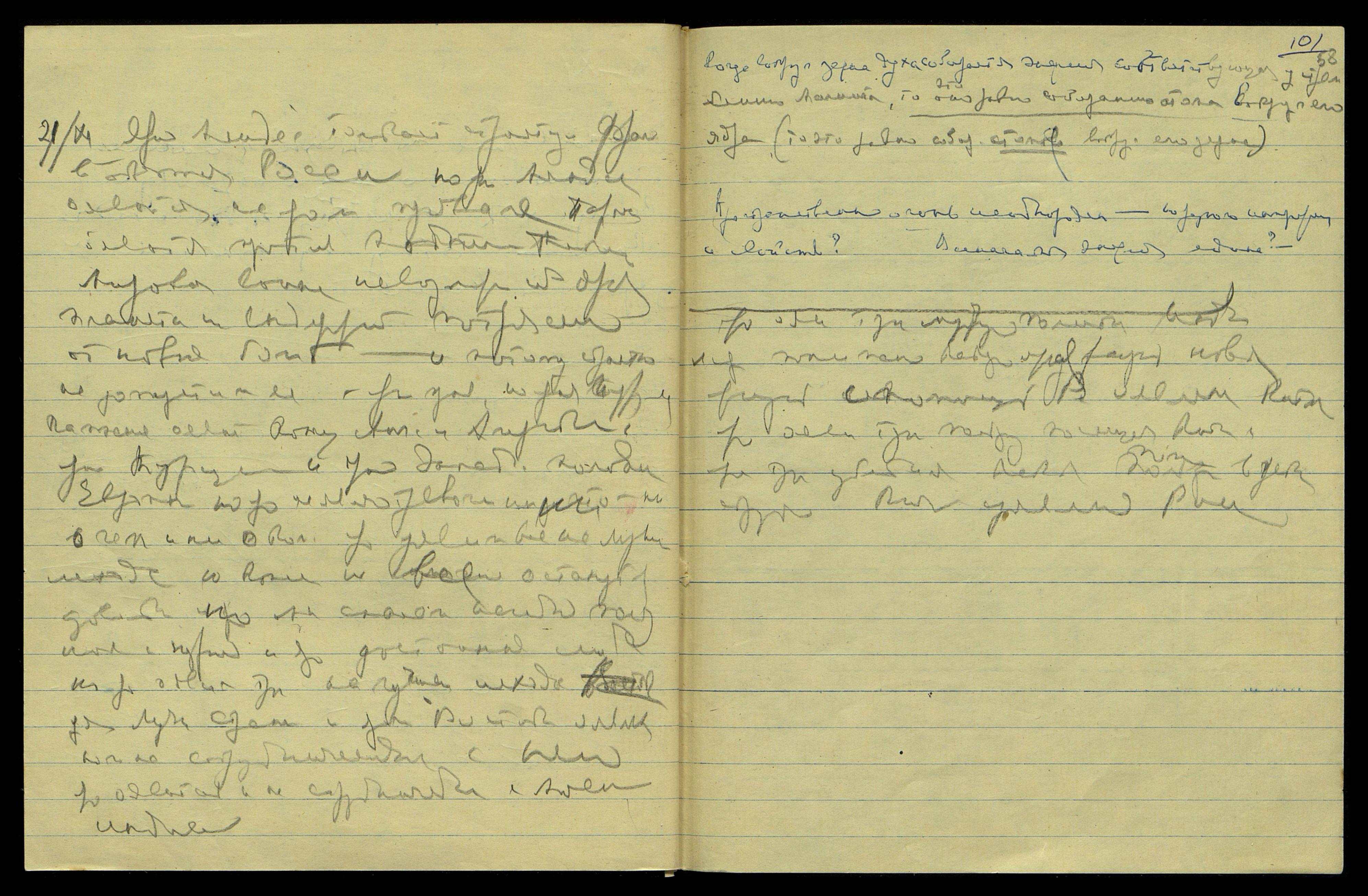 21/ХI. Ярый Мендес толкает страстную Фран[цию] в объятия России, но ярый Мендес оявится на яром провале. [Слово неразборчиво] оявится против подписания Пакта. Мировая война невозможна, ибо ярая планета не выдержит потрясений от новых бомб — и потому страстно не допустим ее. Ярый прав, но ярая Тур[ецкая] кампания оявит конец Англии и Америке, и ярой Турции, и ярой Запад[ной] половине Европы, но яро не являй тревоги ни о чем и ни о ком. Яро уявим все на лучшем исходе но, конечно, не все останутся довольны, но Мы спасем наиболее полезных и нужных и яро достойных людей, но яро оявим тут на лучшем исходе для Лучшей Страны и ярого Востока, оявленного на сотрудничестве с ней. Яро оявитесь и на сотрудничестве с Моей Индией.