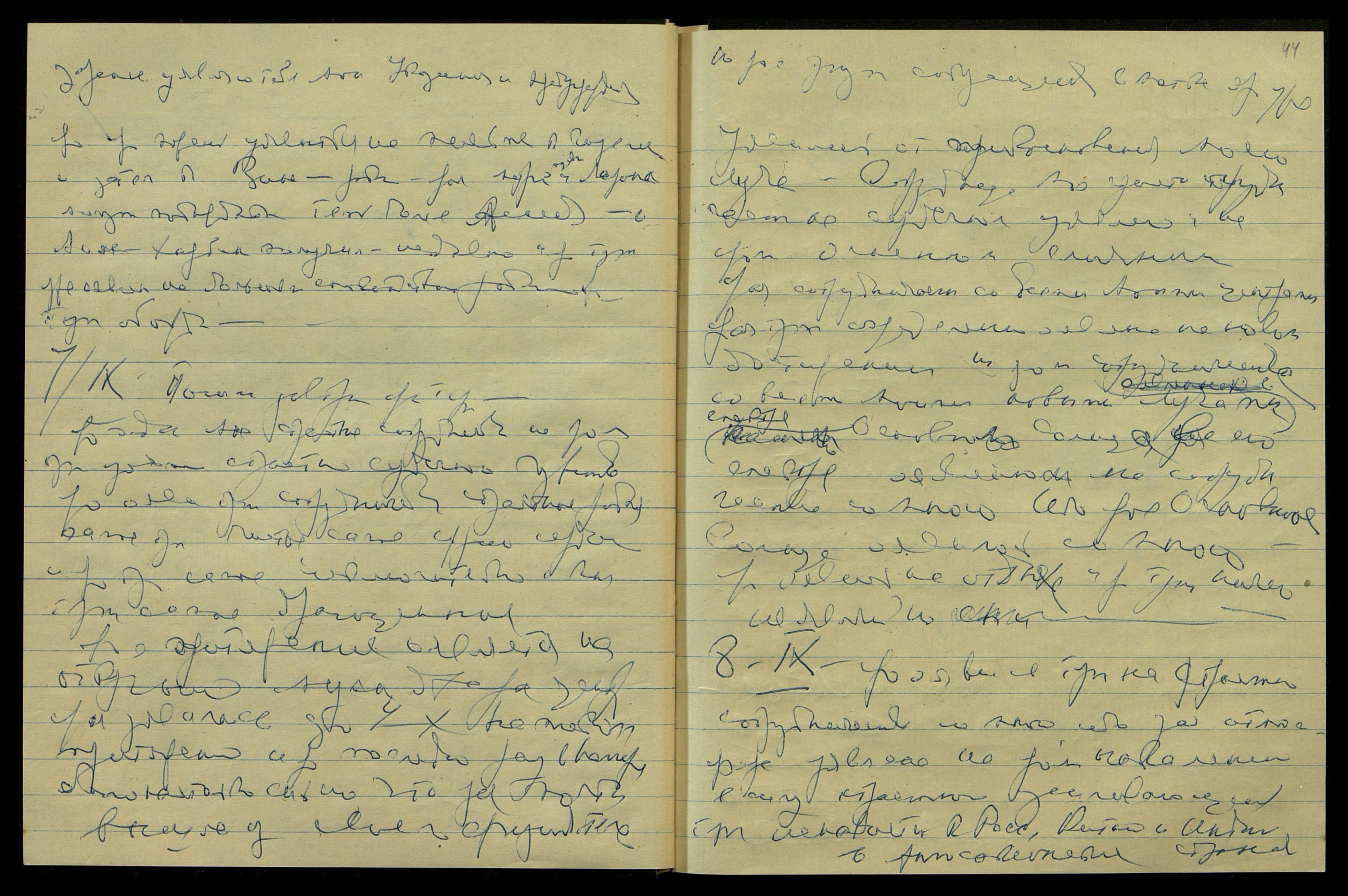 8/IX. Ярая сотрудница Мне не только страстно тут нужна, но и необходима на плане Космическом и в страстном мире Земном, и на Земле, родная. Ярое сокрушение [одно слово неразборчиво] — ярый определенный ответ на ярый Пакт, подписанный в Маниле против Кр[асного] Китая и России. Но ярые союзники не могут выступить, ибо ярая Россия связана с Красным Китаем. Ярые союзники не могут помочь Ч[ан] Кай Шеку (союзники Пакта), но ярые будут уявлены в страстно глупом им положении, ибо ярые тут оявляются между сочувствующими тут странами — сочувствующ[ими] Кр[асному] Кит[аю] и Индии, и Р[оссии]. Яро оявись на спокойном наблюдении за рушением политики союзников. Ярая тут новая война яро вызывает тут страстное негодование среди всего Востока, не исключая Японии.