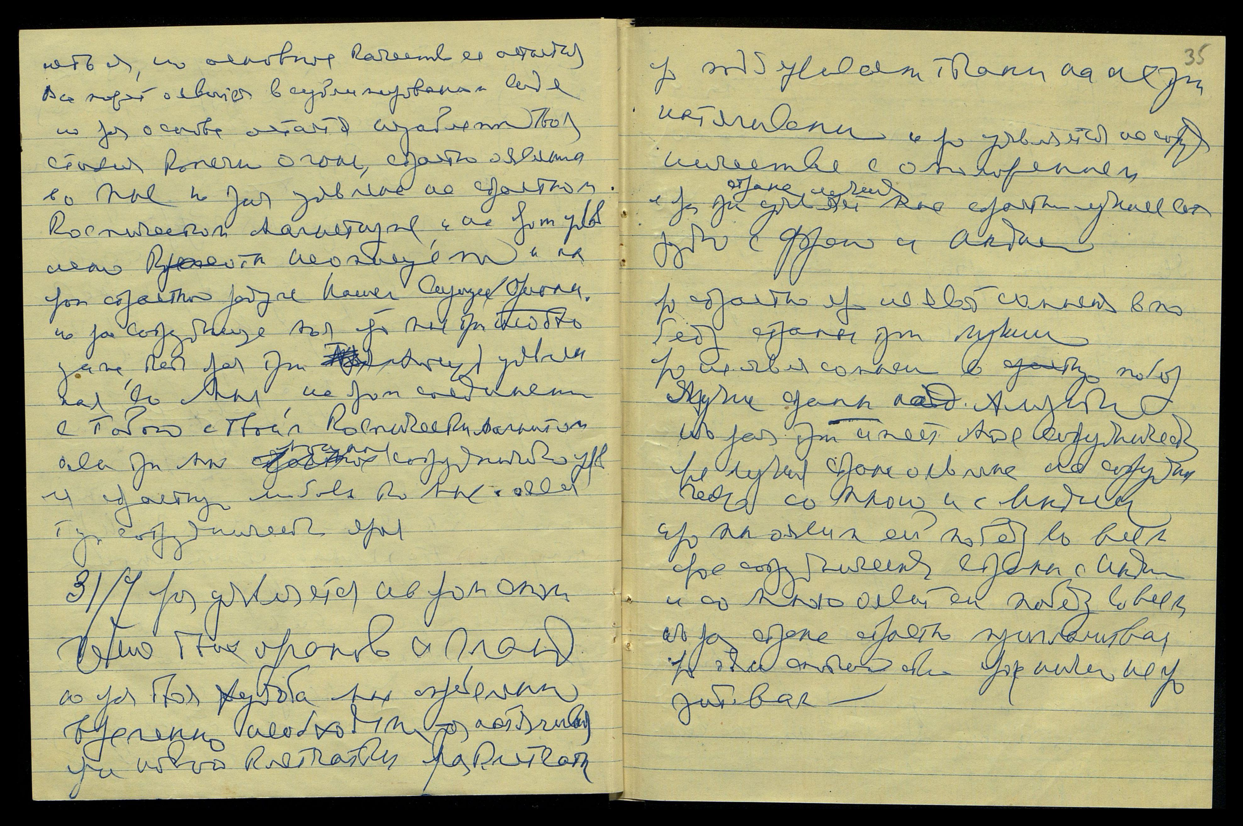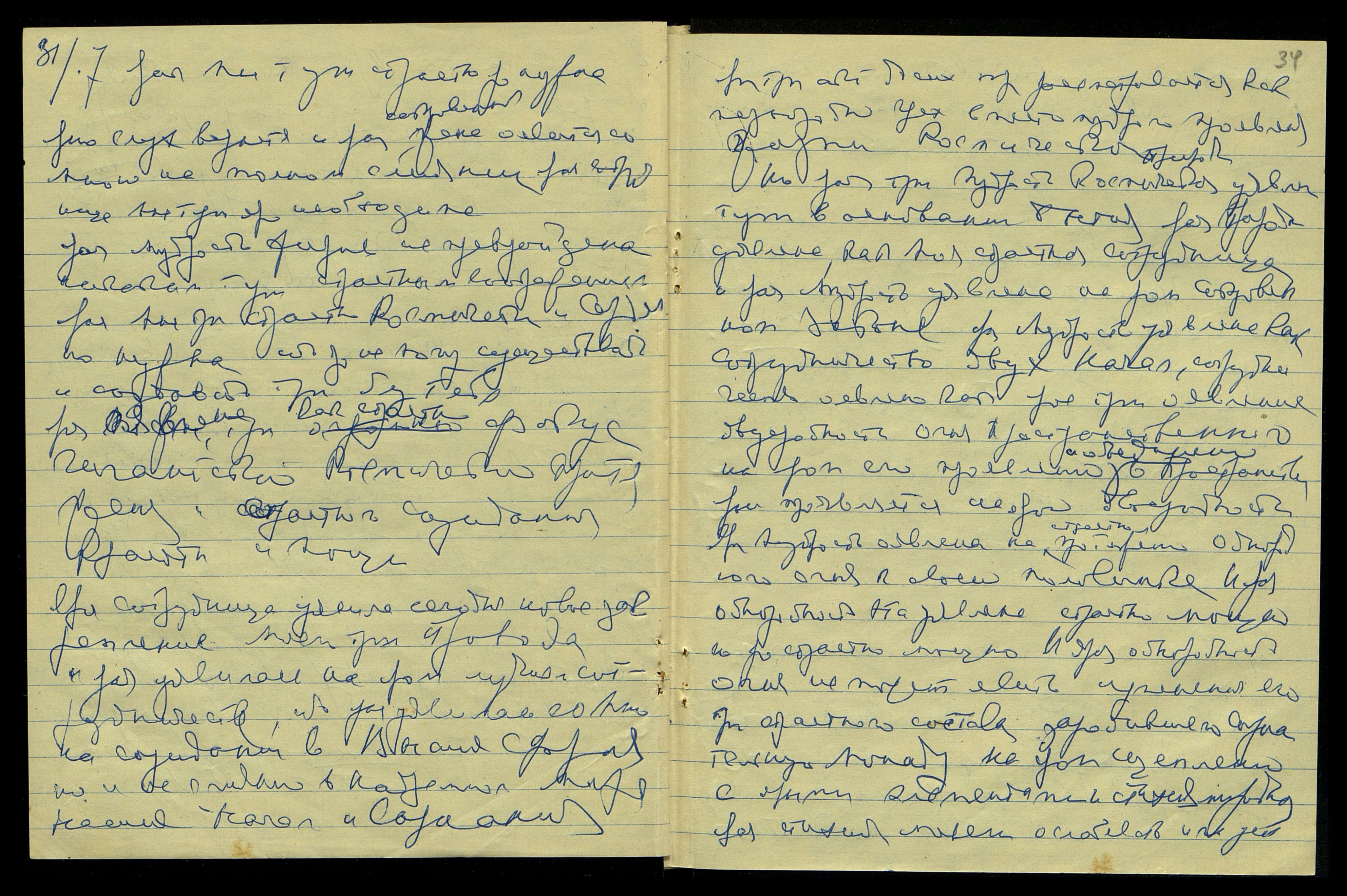 30/7. Ярая имела беседу о Центрах, и ярая не записала, ибо ярая уявилась на сокровенном знании. Ярая также уявилась на ознакомлении о чудовищных изуверствах и искажениях, допущенных Брамин[ами]. Ярые растлили уявленную религию. Ярая тут Тантра приняла форму чудовищного разврата — преступного, яро тут преступного.
