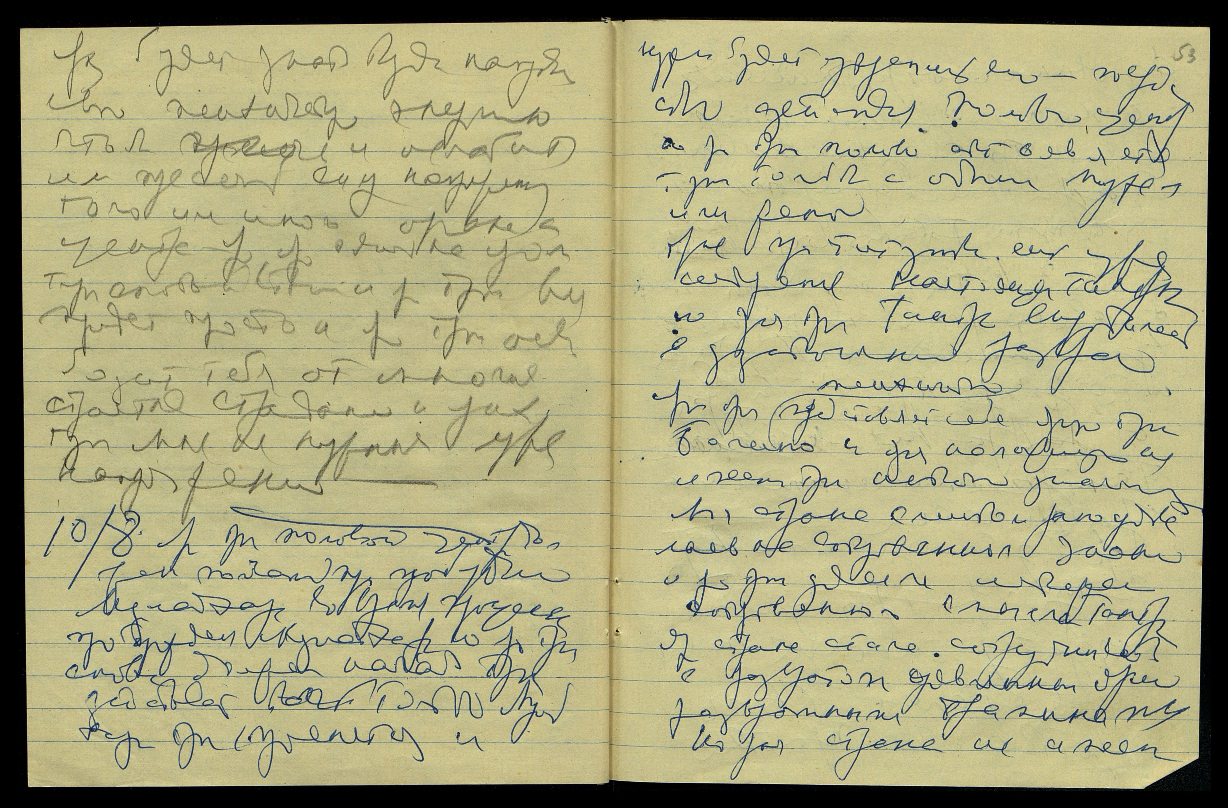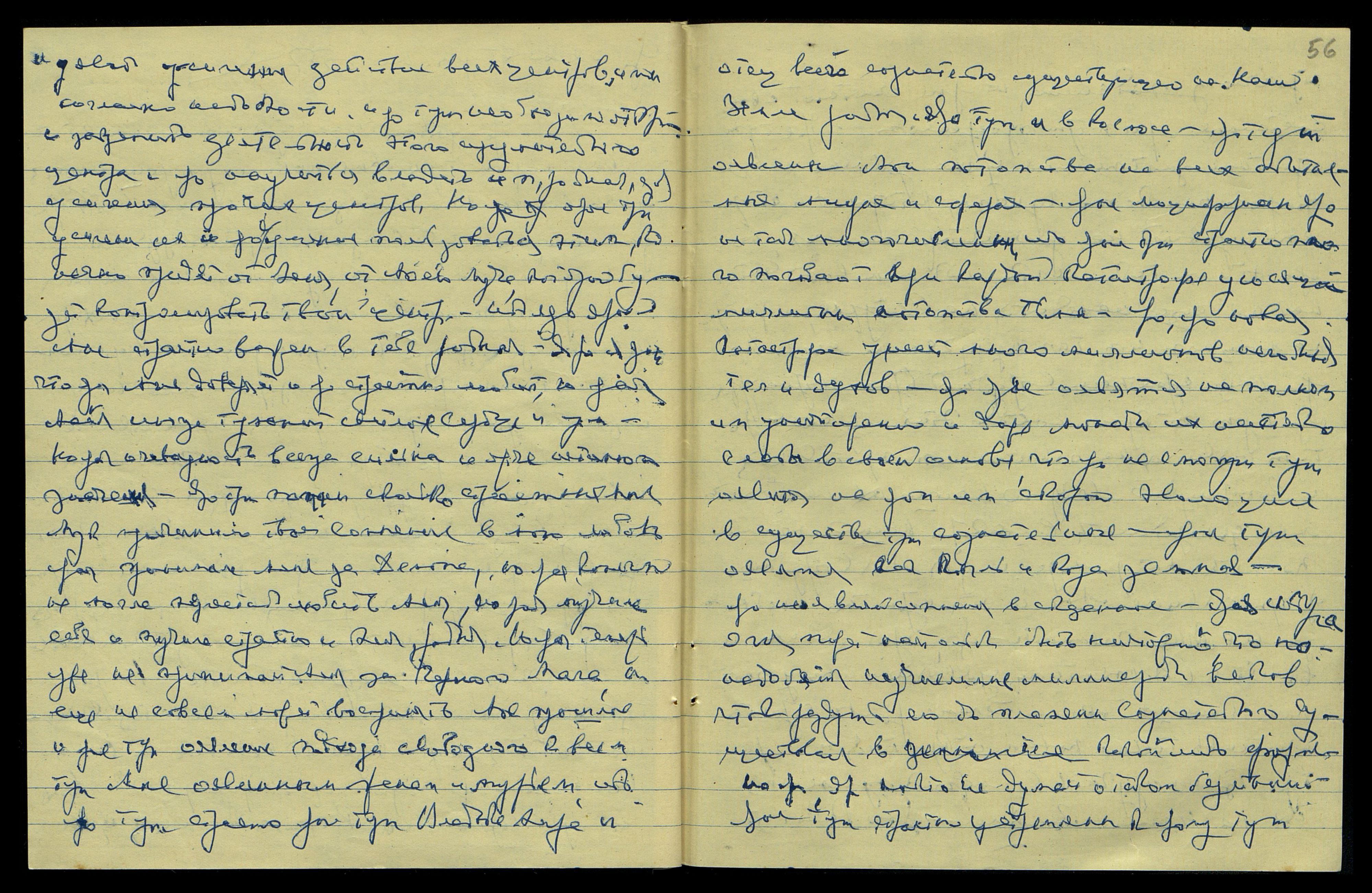 Ярый получит приглашение от Инд[ийского] Прави[тельства] оявиться на совете нов[ого] Вост[очного] Института, и затем Нов[ый] Посол оявит ем[у] пригл[ашение] советником, и яр[ый] примет и яро тут получит приглашение в Москву, и в [слово неразборчиво] 56 г. поедет в Страну Мою. Но яро не говори Сыну о приглашении из Дели, пока ярое не будет оявлено ему.