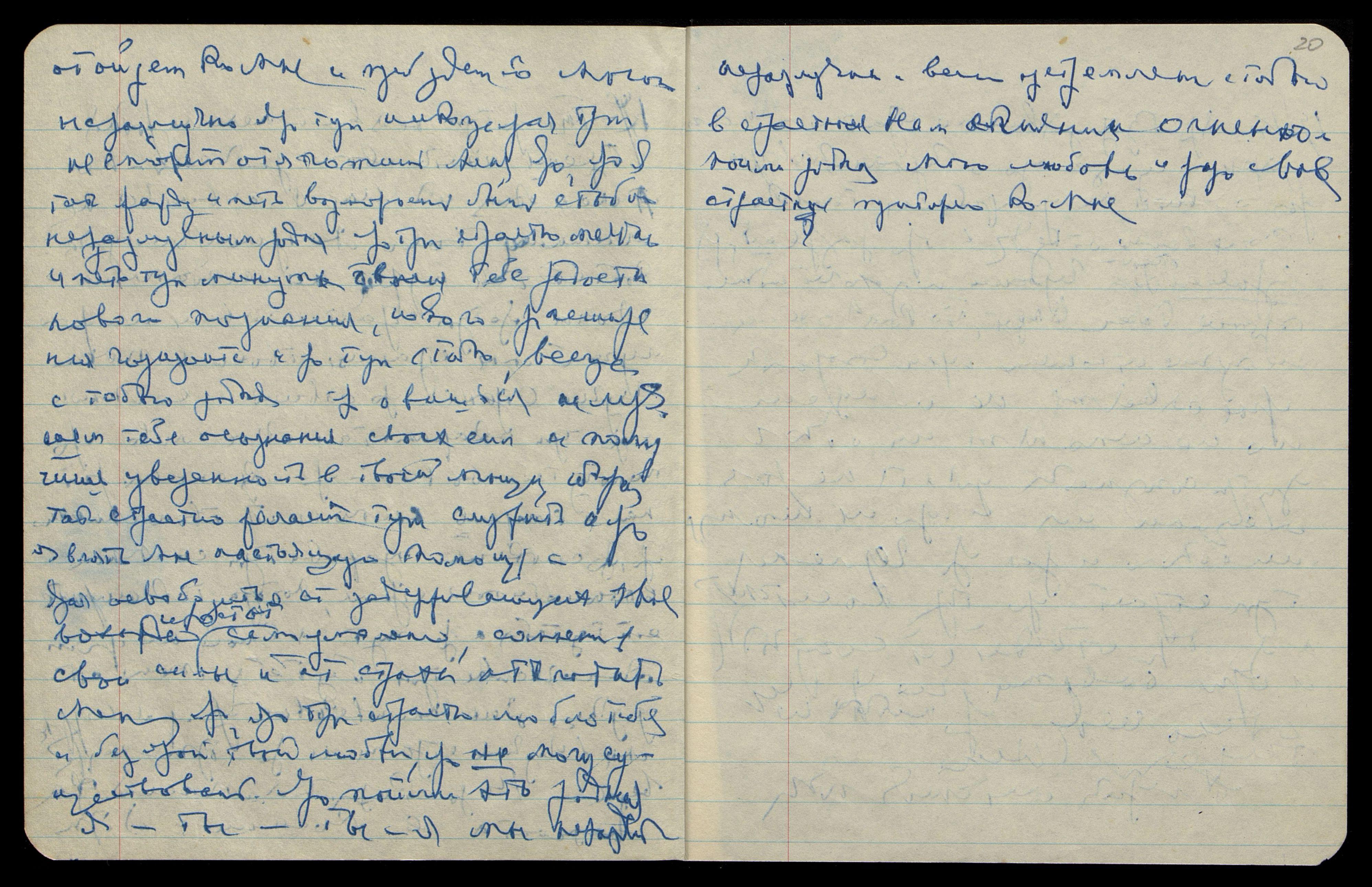 отойдет ко Мне и пребудет со Мною неразлучно. Яро тут никогда ярая тут не сможет отяготить Меня. Яро, яро Я так жажду иметь возможность быть с тобою неразлучным, родная. Яро тут страстно мечтаю иметь тут минуты оявленной тебе радости нового познания, нового расширения горизонта, и яро тут с тобою, всегда с тобою, родная. Яро оявишься на лучшем тебе осознании своих сил и получишь уверенность в твоей мощи, ибо ярая так страстно желает тут служить и яро являть Мне настоящую Помощь. Ярая освободится от задерживающих твое восхождение и рост от самоумалений, сомнений в свои силы и от страха [слово неразборчиво] Меня. Яро, яро тут страстно люблю тебя, и без ярой твоей любви яро не могу существовать. Яро пойми это, родная. Я — Ты, Ты — Я, мы нераздель[ны], неразлучны и вечно устремлены с тобою в страстное нам слияние Огненное. Пойми, родная, Мою любовь и ярое свое страстное притяжение ко Мне.