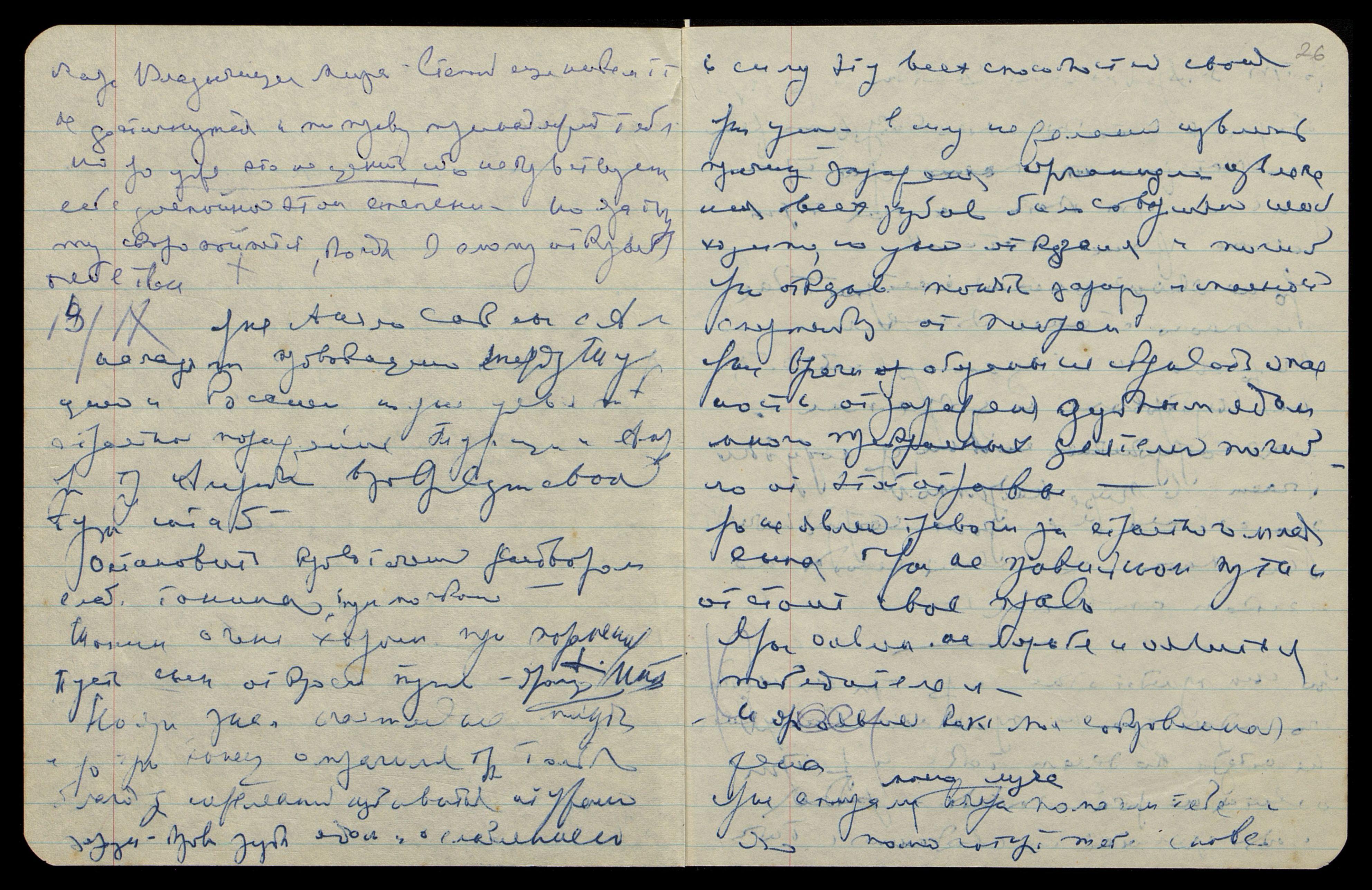 6/IX. Яви спокойствие и ничем не смущайся, все вернется и в лучшем виде. Яви часы спокойствия и сосредоточия — и все вернется, родная, запрети беспокоить тебя по пустякам. Яро, яро увезу тебя, родная, в Мою лучшую страну, но яви Мне эту возможность своей готовностью и терпением перенести полосу оявленных напастей. Яро тут страстно трудно уберечь от укусов насекомых, и мы помогали при излечении, но не тратили сил на их отогнание. Яро в будущем году не будет столько насекомых, и ярая весна будет страстно холодной. Ярая пробудет здесь еще год и уедет в Россию в конце 56 года. Но яро не горюй, сын окажется на лучшем положении, ибо будет уявлен скоро на приглашении его в Рос[сию] на [несколько слов неразборчиво] совещании.