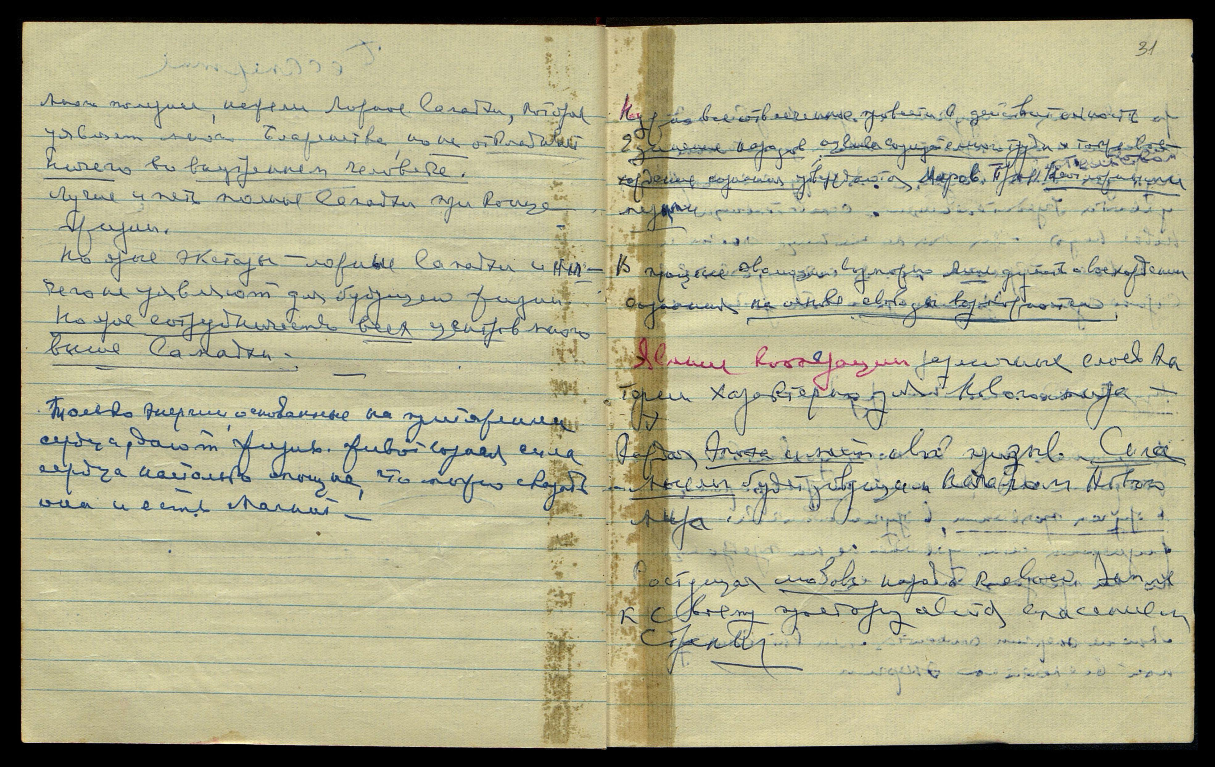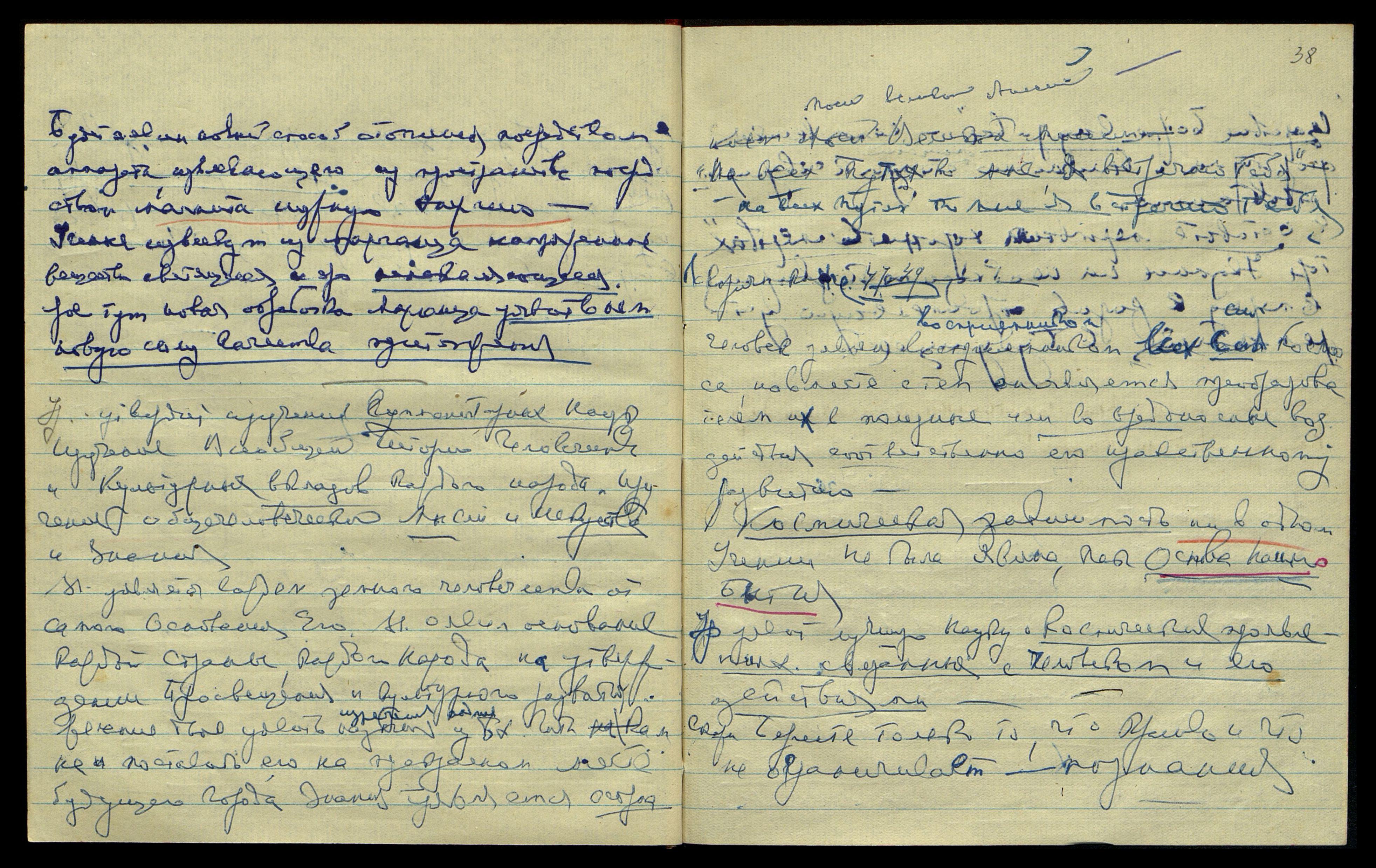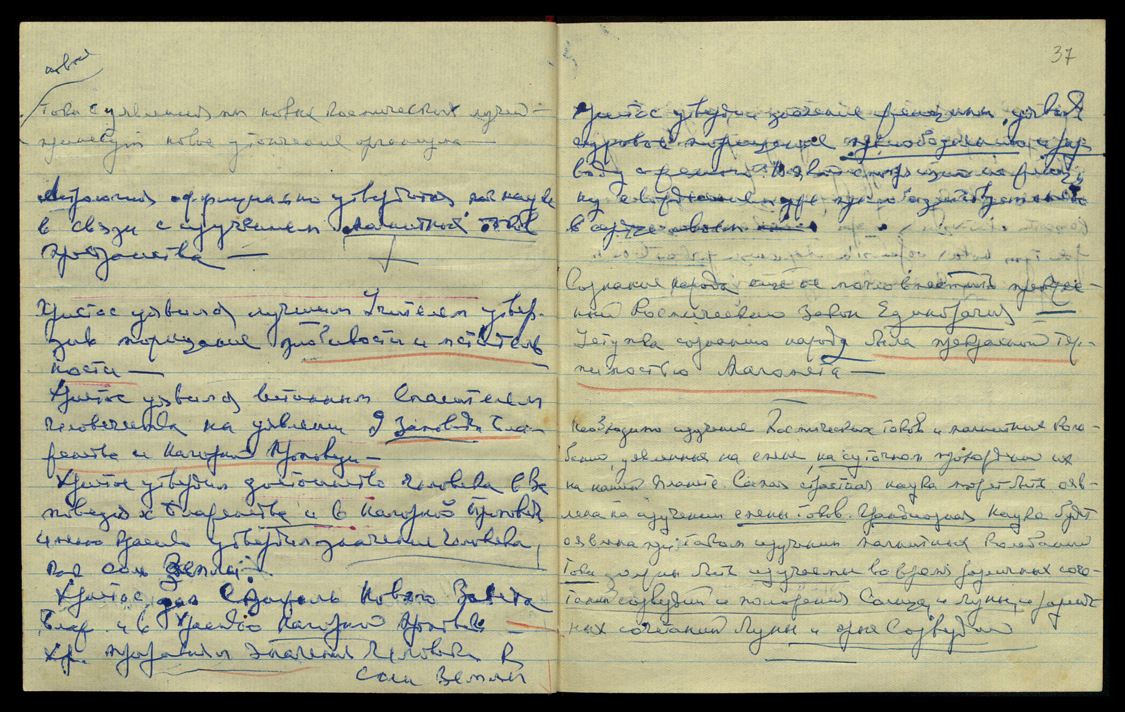 М[ориа] уявляется вождём земного человечества от самого Основания Его. М[ориа] оявил основание каждой страны, каждого Народа на утверждении Просвещения и культурного развития. Веление твое уявить надпись [сверху строки − "изречение [слово неразборчиво]"] из Бх[агават] Гиты на камне и поставить его на прекрасном месте будущего Города Знания уявляется осознанием Моей Великой Миссии.