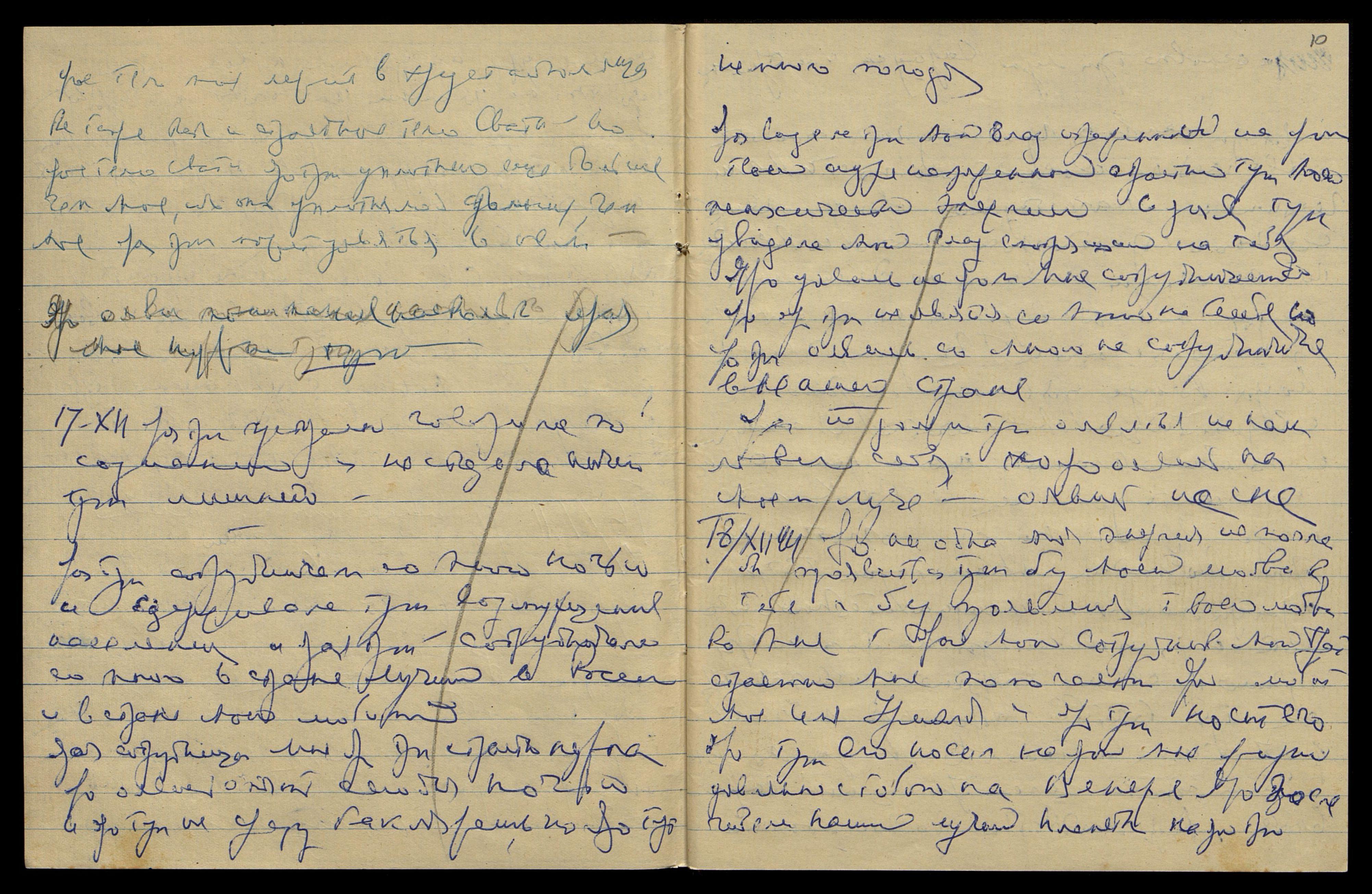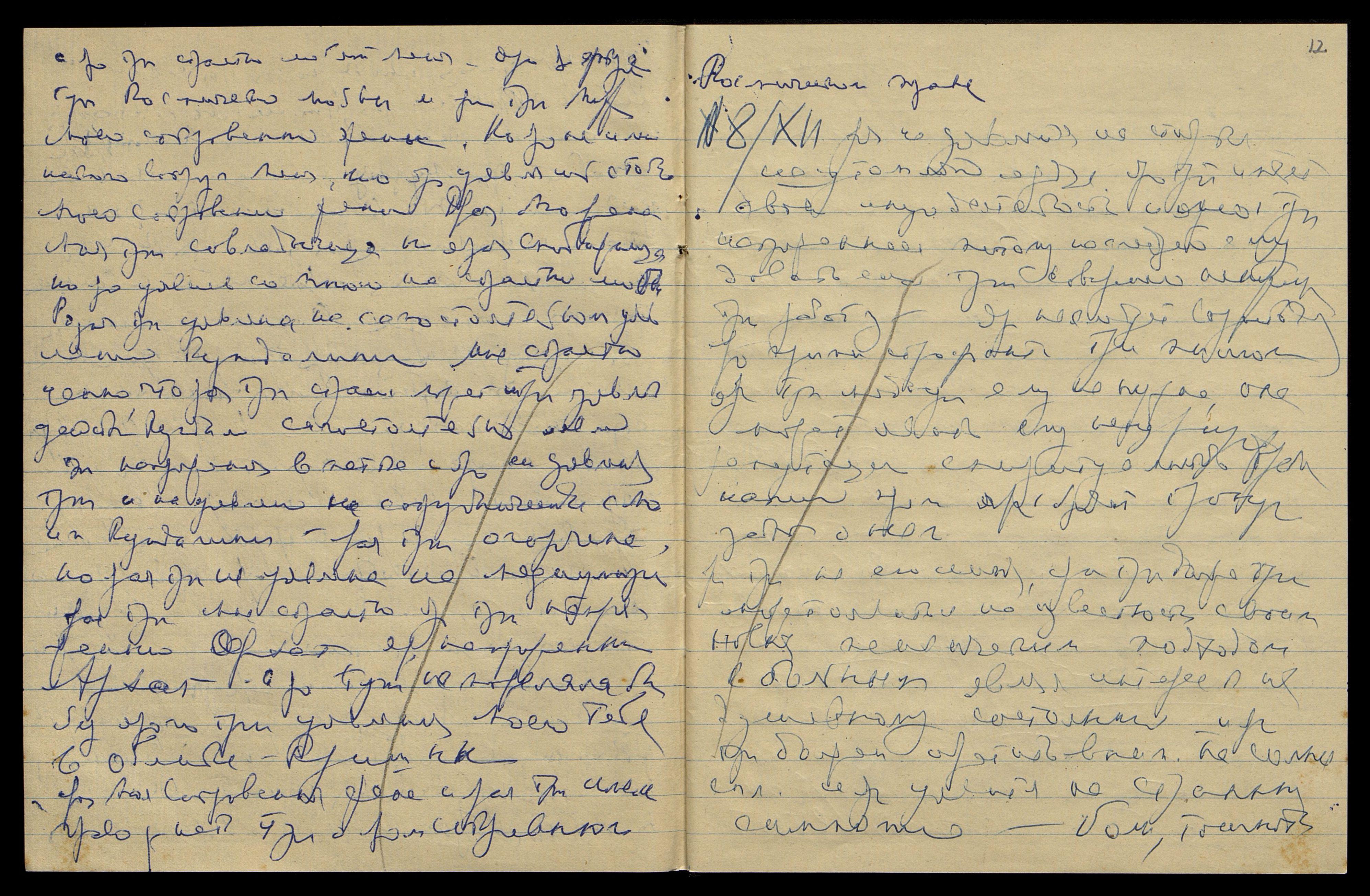 18/XII. Ярая, не уявляйся на стирке, не утомляй сердце. Ярое тут имеет свою иную деятельность и много тут напряженнее, потому не следует ему давать еще тут совершенно ненужную тут работу. Яро не следует возиться. Яро прими строфант, три пилюли.