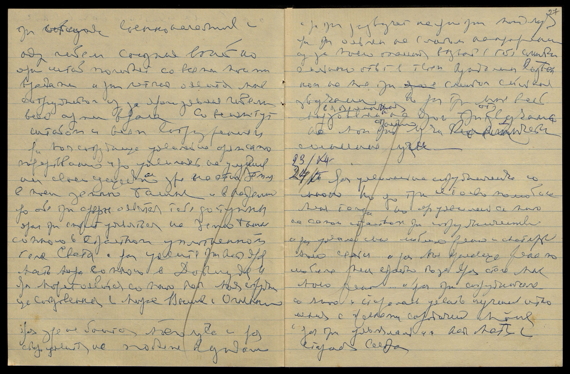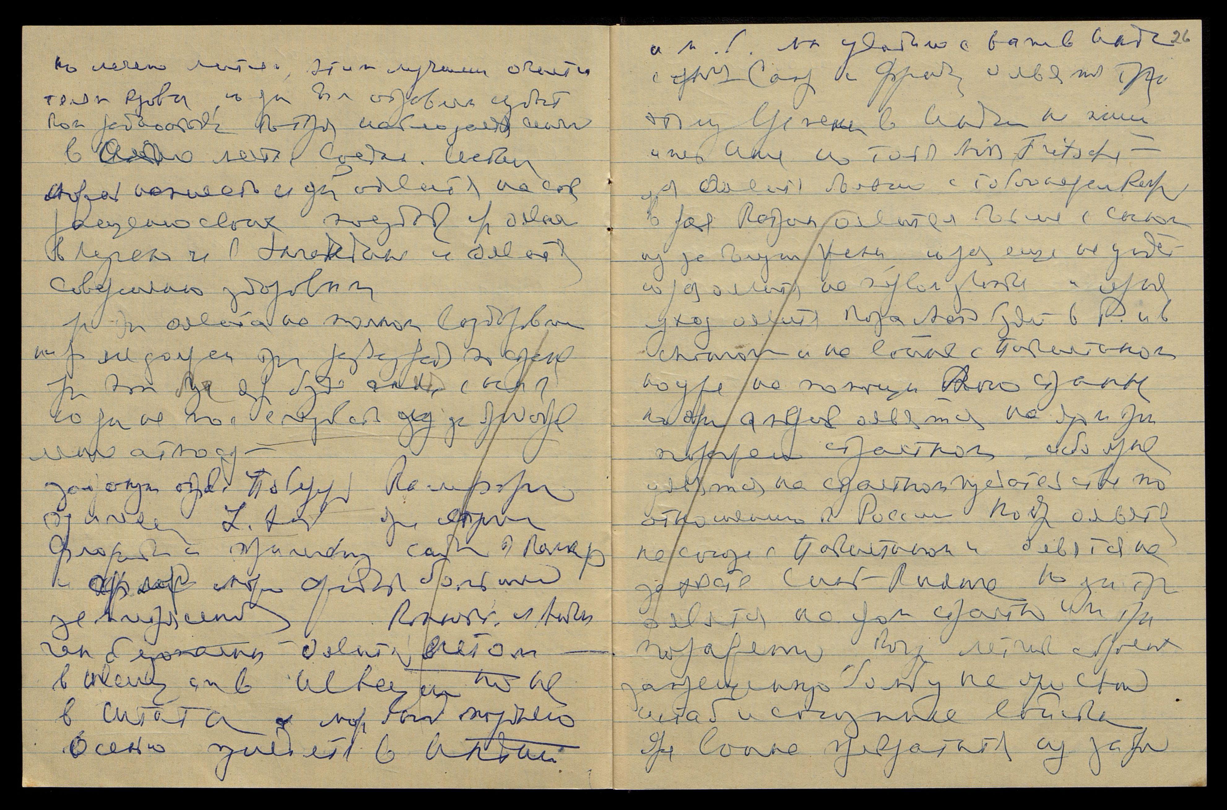 Получил[а] письмо от Давида и ярый тут пишет, насколько Вы тут поправились от отравления атмосферы избытком радиоактив[ности] в атмосфере С[оединенных] Штатов. Ярый тут сам не знал, но яро лечил вас от отравления крови избытком радиоактивности литием, яро тут лучшим очистителем крови, и ярый хорошо поступил, оявивши[сь]