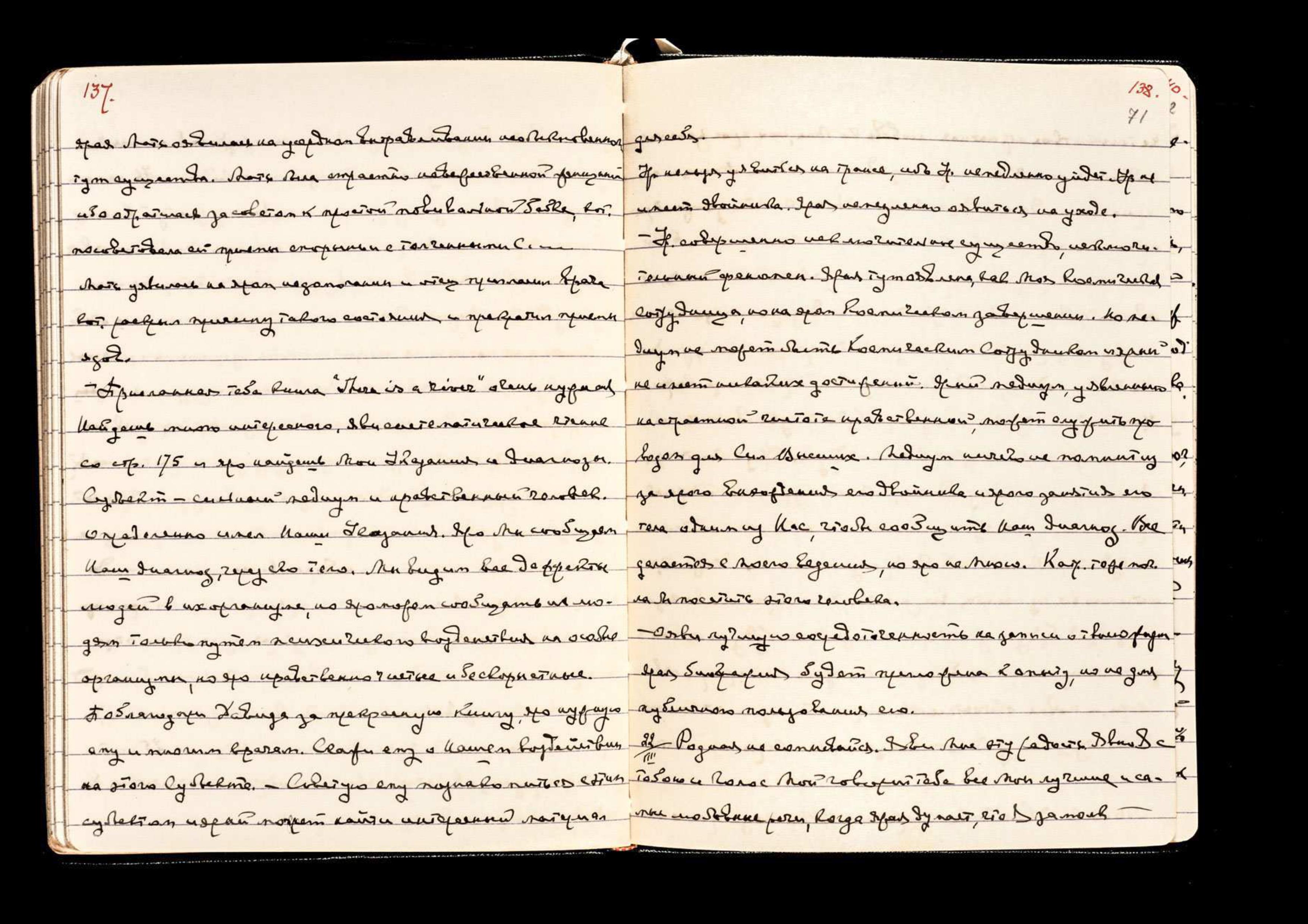 Присланная тебе книга "There is a river"* очень нужная. Найдёшь много интересного. Яви систематическое чтение со стр. 175 и яро найдешь Мои Указания и диагнозы. Субъект − сильный медиум и нравственный человек, определённо имел Наши Указания. Яро Мы сообщаем Наш диагноз через его тело. Мы видим все дефекты людей в их организме, но яро можем сообщать их людям только путем психического воздействия на особые организмы, но яро нравственно чистые и бескорыстные. Поблагодари Давида за прекрасную книгу, яро нужную ему и многим врачам. Скажи ему о Нашем воздействии на этого Субъекта.