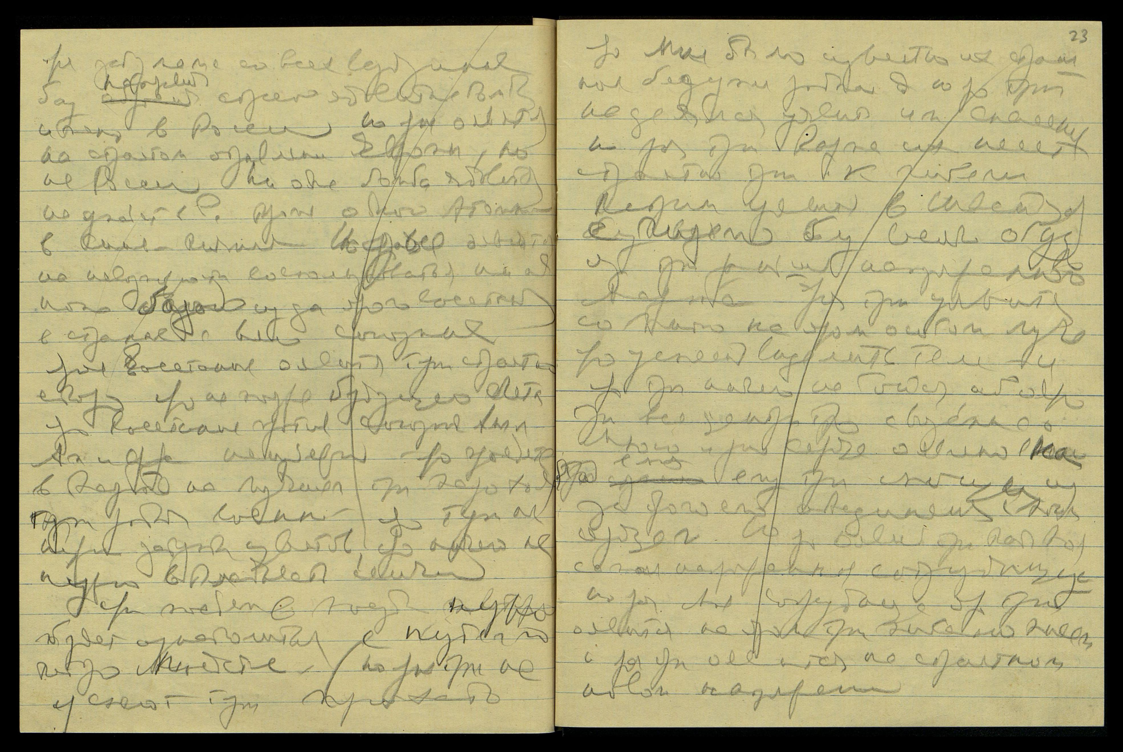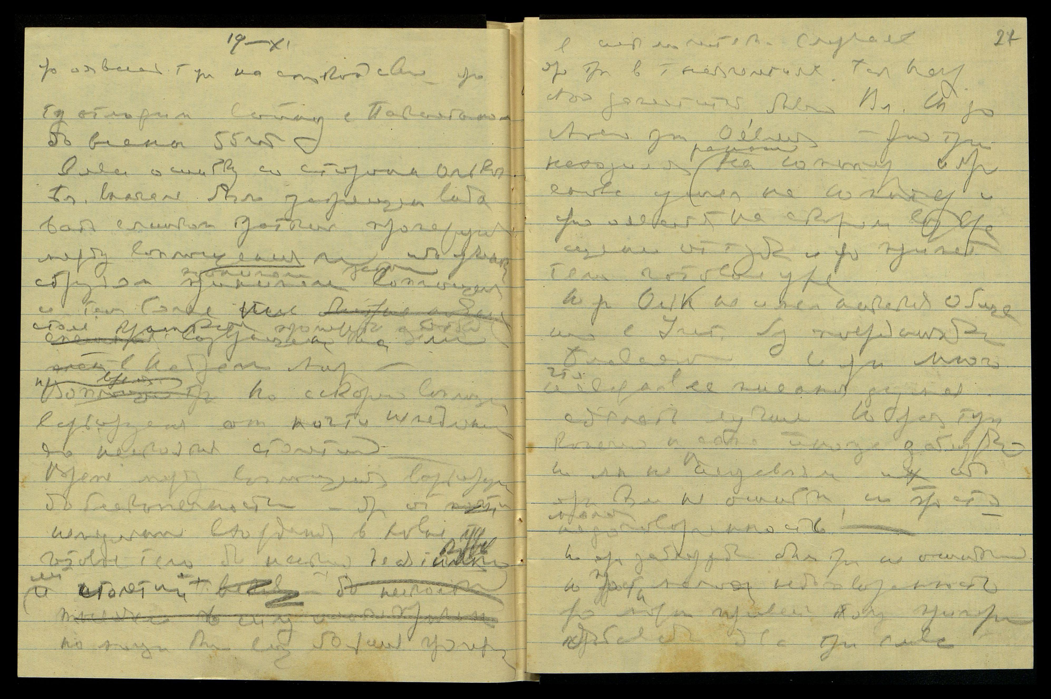 16/XI. [Слово неразборчиво] космическое сотрудничество оявлено Мне с тобою. Явление страстное было Мне тут явлено. Ярая тут напряженно Мне была оявлена сейчас на писании письма Мне очень важного, которое останется и будет издано после твоего ухода, как доказательство, что ярая писала Учение сама, не только муж. Ярое тут слагается прекрасно — сотрудничество между матерью и сыном. Ярая мать сотрудничает с сыновьями много лучше, нежели отец.