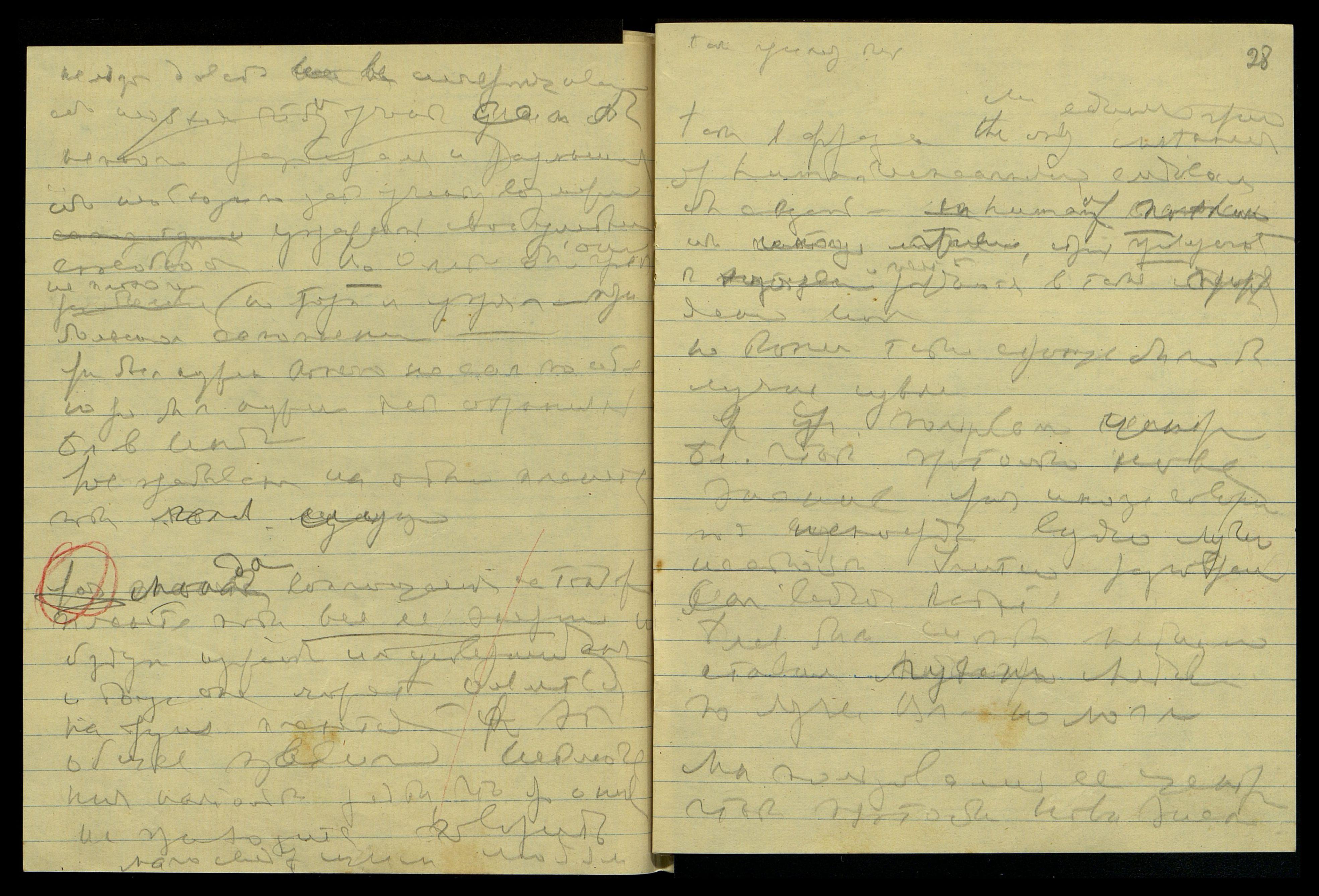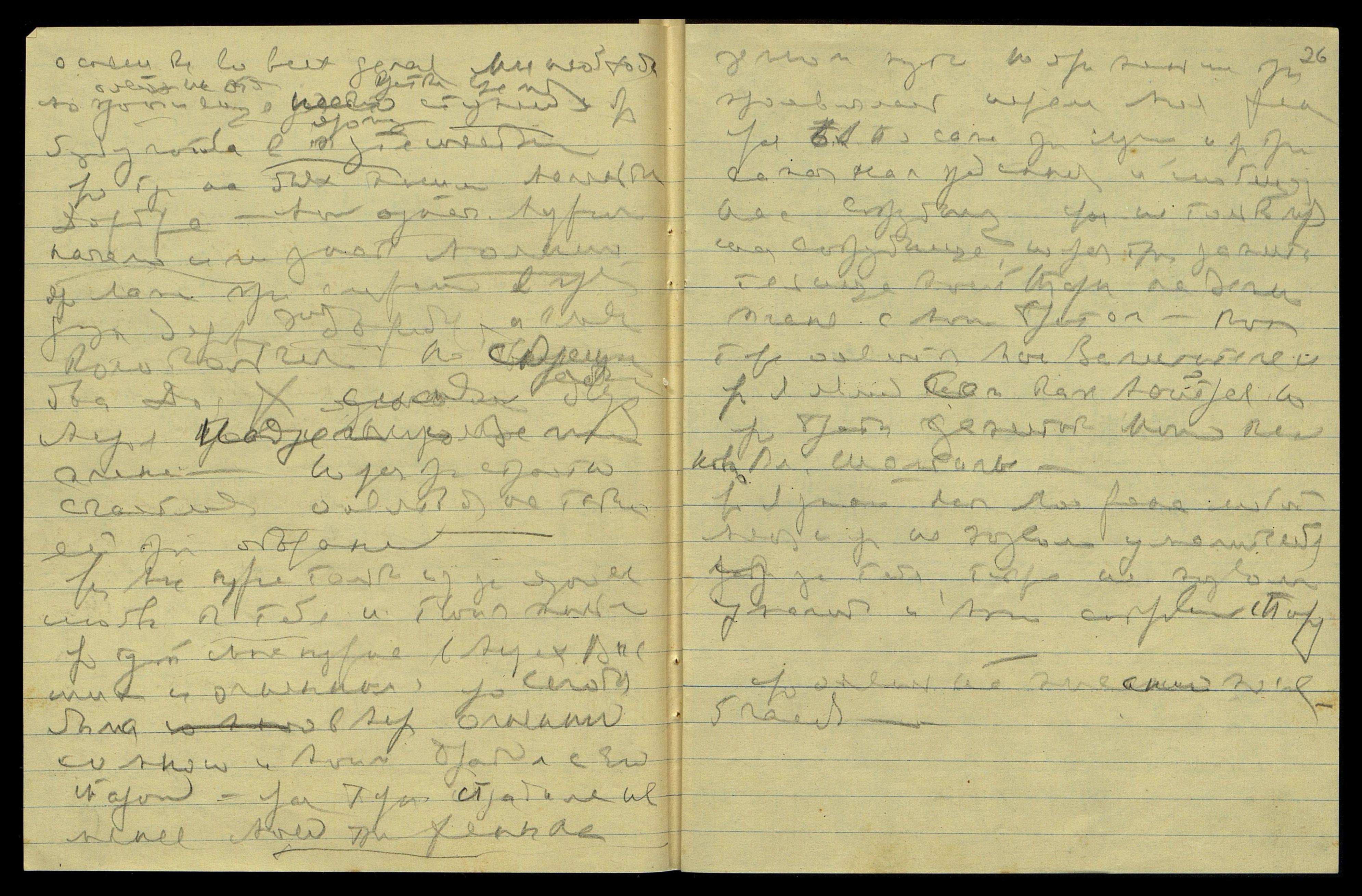 Ярые тут оявились на яром сотрудничестве с Матерью своей и Моей сокровенной женой. Ярая мать оявила им тут лучшее сотрудничество и страстно нежное отношение, определенно страстно лучшее отношение. Но лучшая страница о Матери оявится сыном Моим Борисом. Ярый тут оявит тут Мою [сверху строки — "страстную"] напряженную любовь к тебе и твою [сверху строки — "страст[ную]"] напряженную, нежную и самоотверженную любовь ко Мне. Яро уявлю тебе определенно Мою любовь страстную, но и самоотверженную тоже.