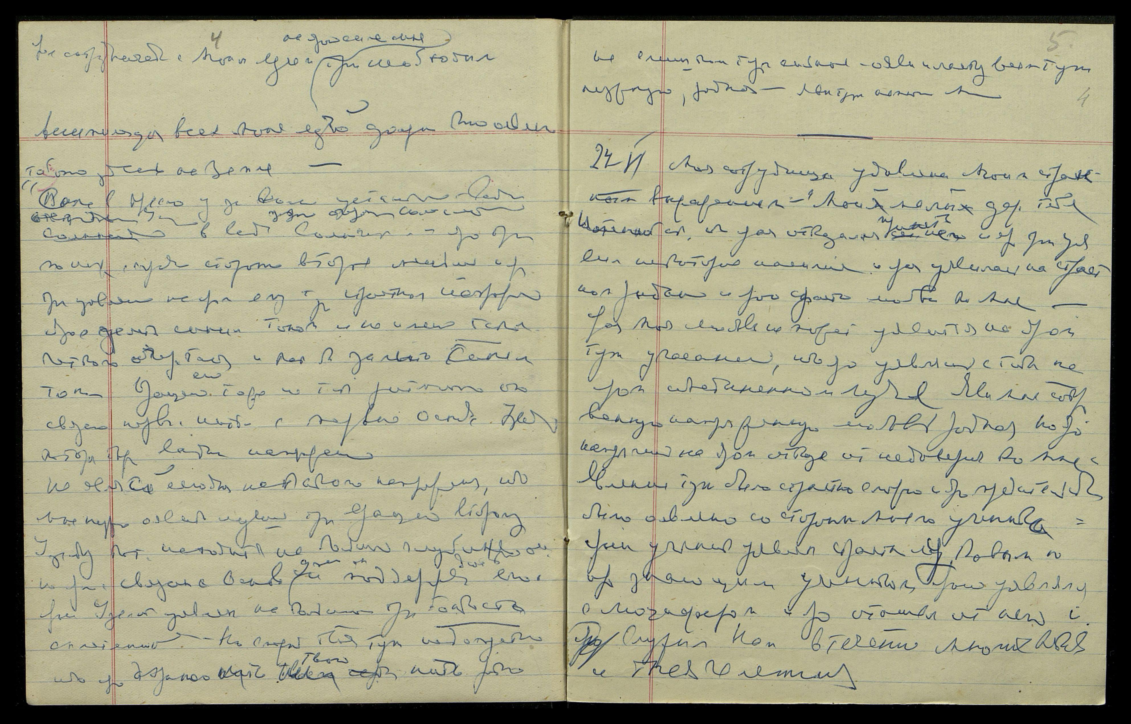 Не являй сегодня никакого напряжения, ибо Мне нужно оявить лучшее тут вращение второму Узелку, кот[орый] находится на больш[ей] глубине, но ярый связан с Основ[ным] Узел[ком] и он поддерживает деятельность его. Ярый Узелок уявлен на большой тут тонкости сплетен[ий]. Но смерть твоя тут недопустима, ибо яро охраняю твою нить, родная.