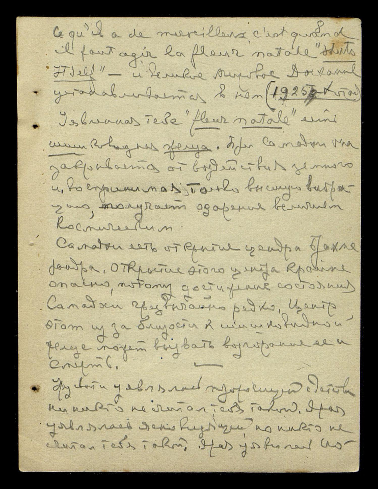 "Ce qu'il a de merveilleux c'est quand il faut agir, la fleur natale shuts itself" [фр., англ.: "Чудесно, когда нужно действовать, рождающийся цветок распускается, закрывается сам собой"] и великое Мировое Дыхание устанавливается в нём. (1925 г. Хотан.)