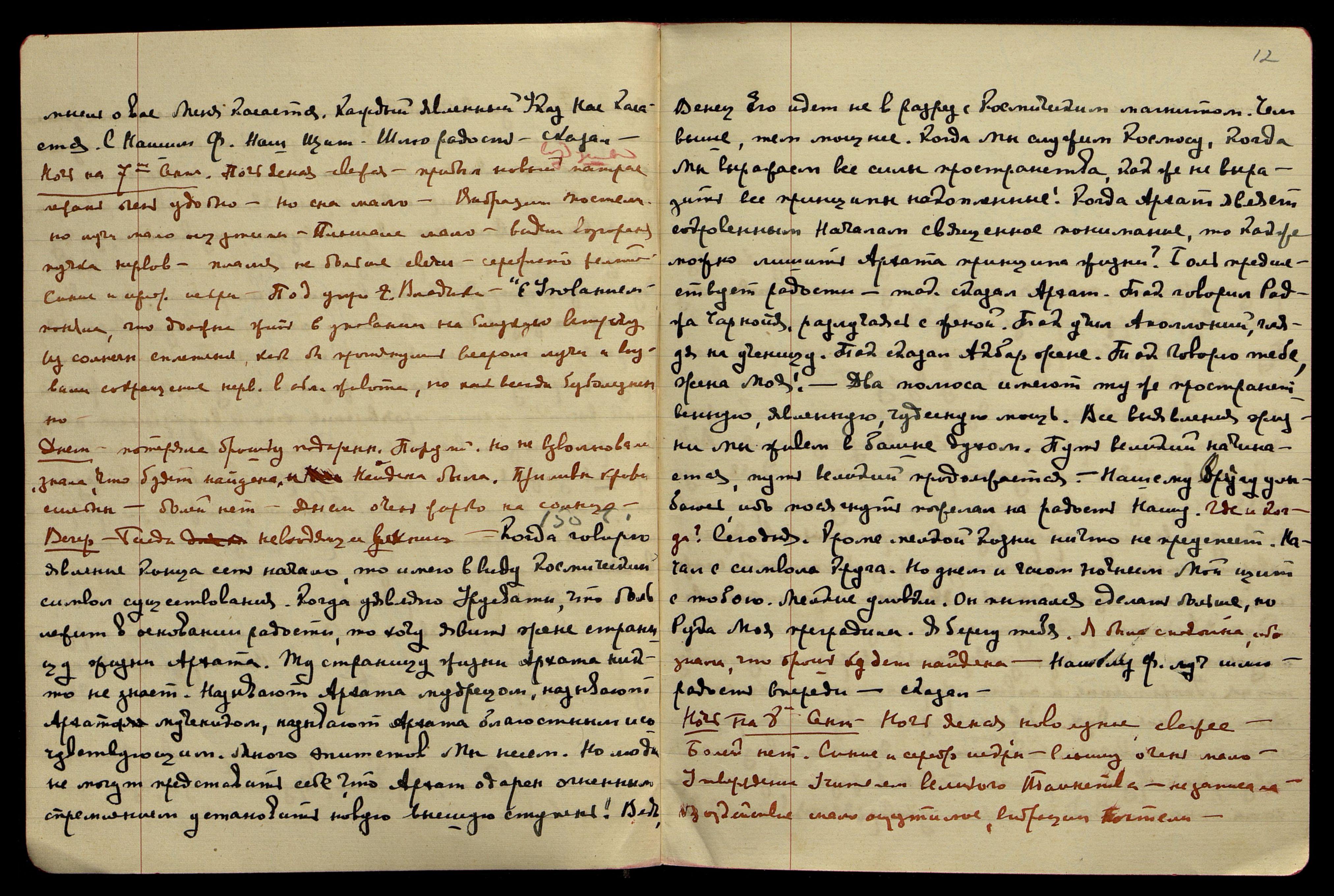 Ночь на 10-ое сентября. Ночь ясная, зарницы, свежо. Как всегда не очень удобно лежать из-за напр[яжения] в позвоночнике около лопаток, но острых болей нет. Спала. С вечера ничего не слышала. Утром около 7 часов: "Явилась жажда тебя удовлетворить". "Принцесса от духа"... "Абсолютно... Это ужас — стоячая вода!.."