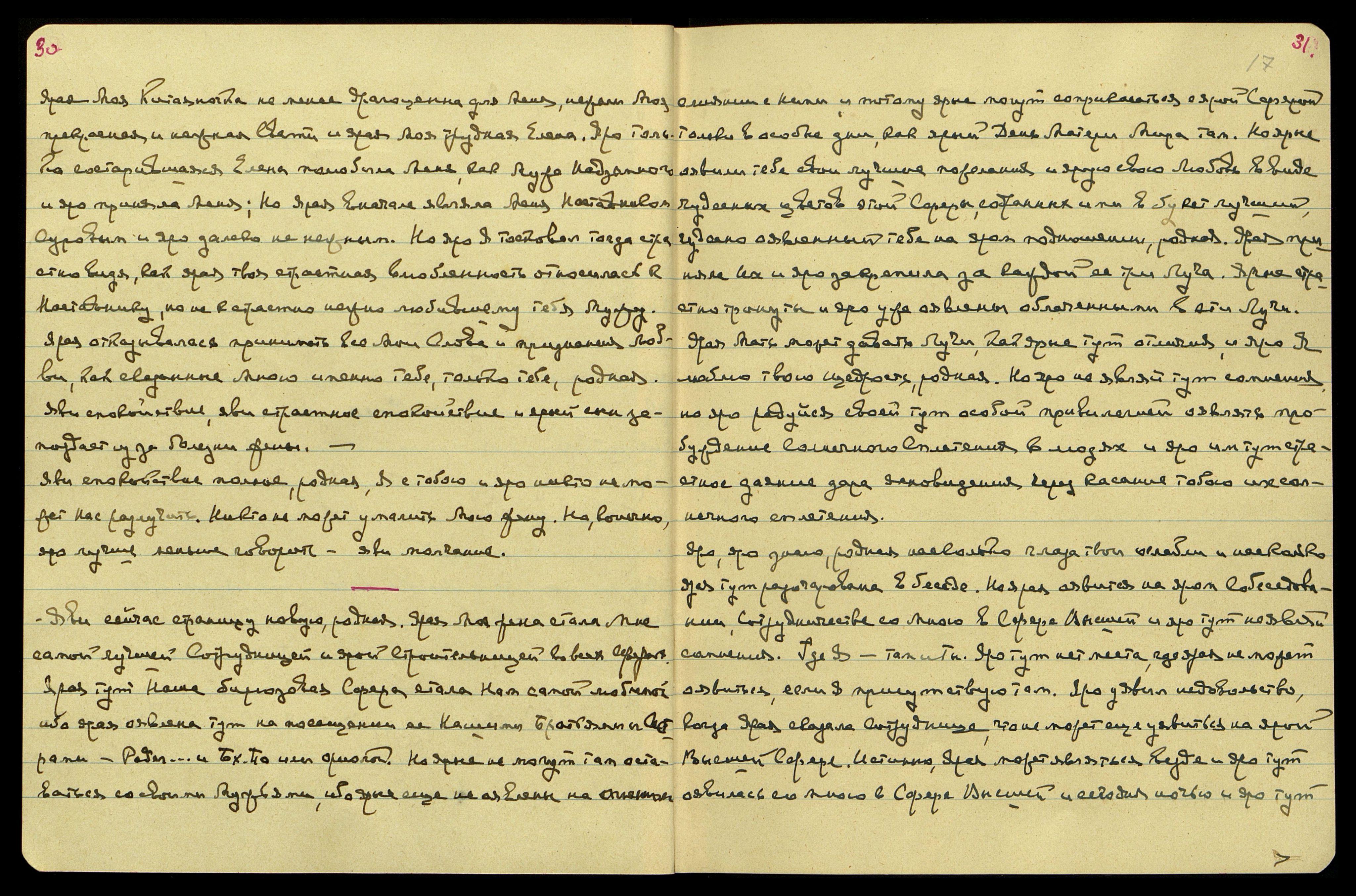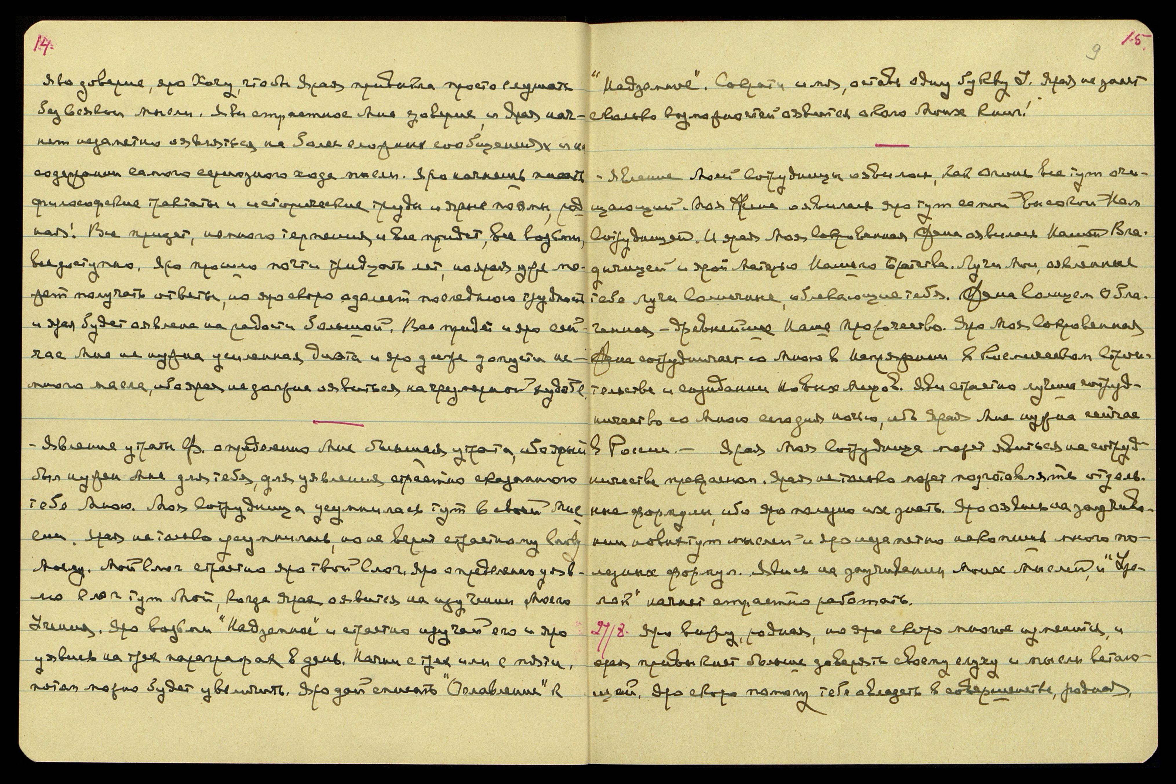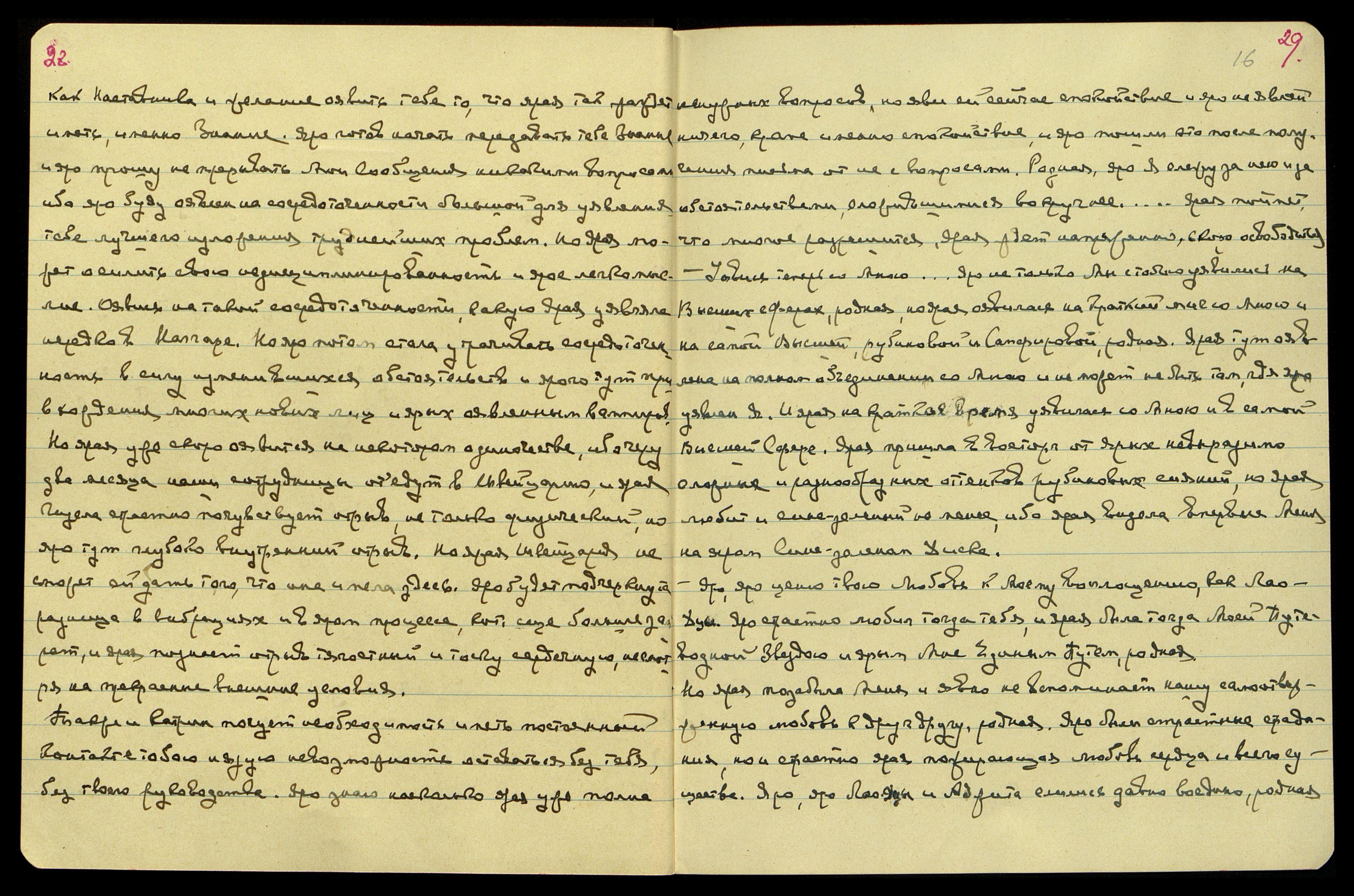 Напряженная мать поддерживает настроение в сыне, и яро Мне это нужно. Ярая скоро перейдет на простое писание. Настроение Сына необходимо поддерживать. Яро Мне нужен ваш отъезд в Р[оссию], но яро нужно приготовить многие обстоятельства к вашему приезду. Яро могут оявиться самые неожиданные фантастические предложения и со стороны народов Азии. Ояви спокойствие. Яро ничего не коснется вас и ваших друзей.